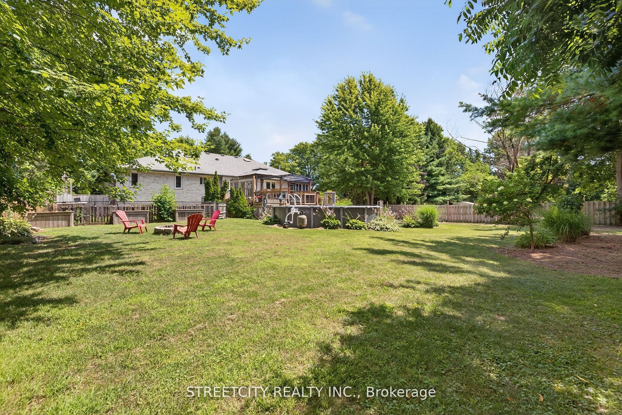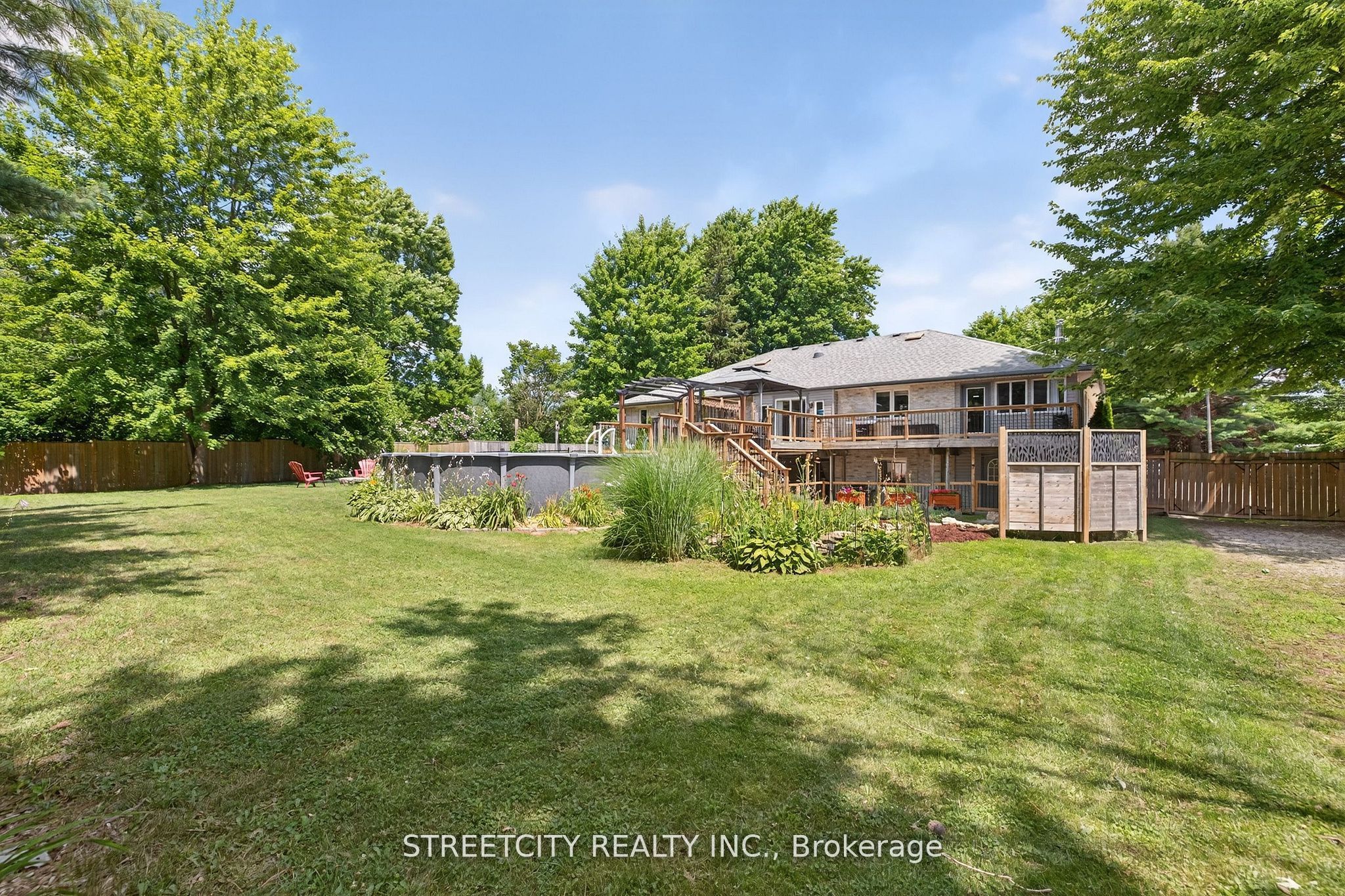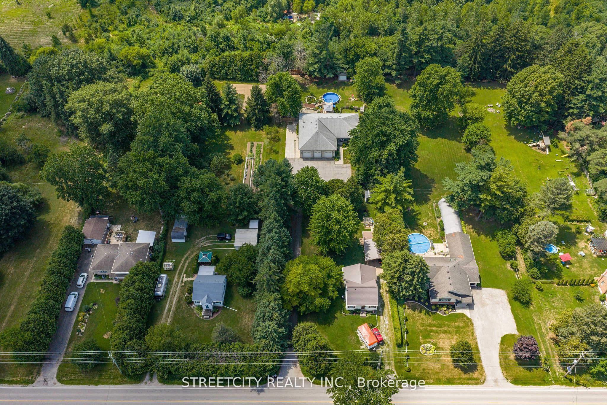 Where urban sophistication meets secluded country prestige. Tucked within a private, tree-lined setting just minutes from highway 401 and the airport, this exceptional estate offers a rare blend of convenience and tranquility-ideal for those who value both privacy and accessibility. A true standout is the extraordinary three-car garage, thoughtfully designed for automotive enthusiasts or skilled craftsmen. Featuring oversized doors, soaring ceilings suitable for a hoist, a mezzanine for added storage, and a private staircase to the fully finished lower level, it's far more than a garage-it's a rare, purpose-built workspace. The outdoor living experience is equally refined, with lush landscaping, multiple decks, a sparkling pool, serene koi pond, and intimate patios that create a private oasis for relaxation and entertaining. Inside, over 3,500 sq. Ft. Of finished living space showcases warm, elegant design. Highlights include custom wood beam fireplace mantels, stylish accent walls, and a barn-style door opening to a chef-inspired kitchen with premium appliances and generous workspace. The primary suite offers a luxurious retreat with a cozy fireplace and spacious layout. Three full bathrooms and a powder room provide both comfort and function. The fully finished lower level features a versatile in-law suite with in-floor heating, accessible from the main level, garage, or a private entrance-ideal for multi-generational living or income potential. This is a rare offering-where refined living, exceptional functionality, and peaceful surroundings come together seamlessly.