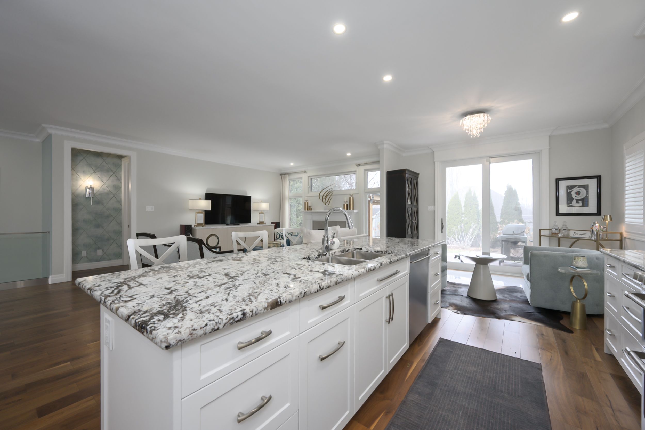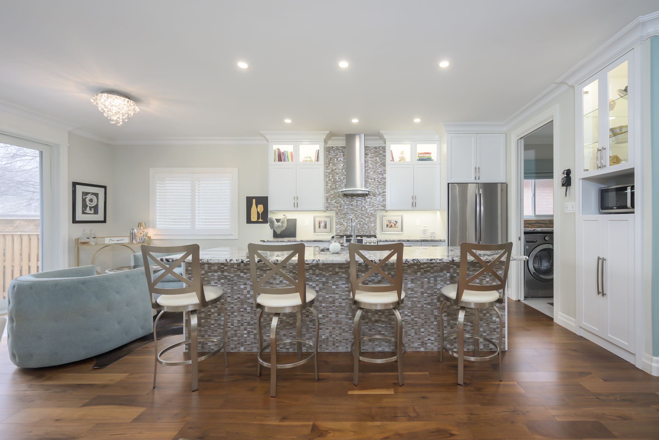 Welcome to prestigious hunt club, one of london's most sought-after, executive neighbourhoods, known for its mature trees, private lots, golf courses, proximity to western university and university hospital, scenic parks/trails and access to highly regarded schools. This move-in ready one-floor home offers exceptional curb appeal with a concrete driveway, charming front porch, and updated door system that immediately sets it apart. A welcoming foyer with inset tile detailing opens to a stunning, open-concept interior where rich hardwood floors and thoughtful design create a refined yet comfortable atmosphere. The expansive living room features a fireplace and elegant glass railing overlooking the staircase, adding architectural interest and a modern touch. The living and dining spaces flow seamlessly together, ideal for entertaining. The beautifully updated kitchen is the heart of the home, showcasing granite countertops, a large island, newer stainless appliances (included), abundant cabinetry and drawers, and a spacious eat-in area with updated patio door leading to a secluded outdoor living space. The primary suite offers a large window, walk-in closet, and on trend ensuite complete with tub and oversized tiled shower. Two additional versatile rooms function beautifully as guest rooms, office space or den, serviced by a fully renovated bath with granite vanity and a large tiled shower. Main-floor laundry with granite counters, extensive built-ins with pull-outs, and direct access to the double garage. The lower level provides additional living with a family room, three-piece bath and exceptional storage. Extensively updated including the shingles and central air. Outdoors, the private backyard is perfectly scaled for downsizing, surrounded by greenery and mature trees, with a maintenance-free deck, pergola and shed offering peaceful, low-maintenance living.