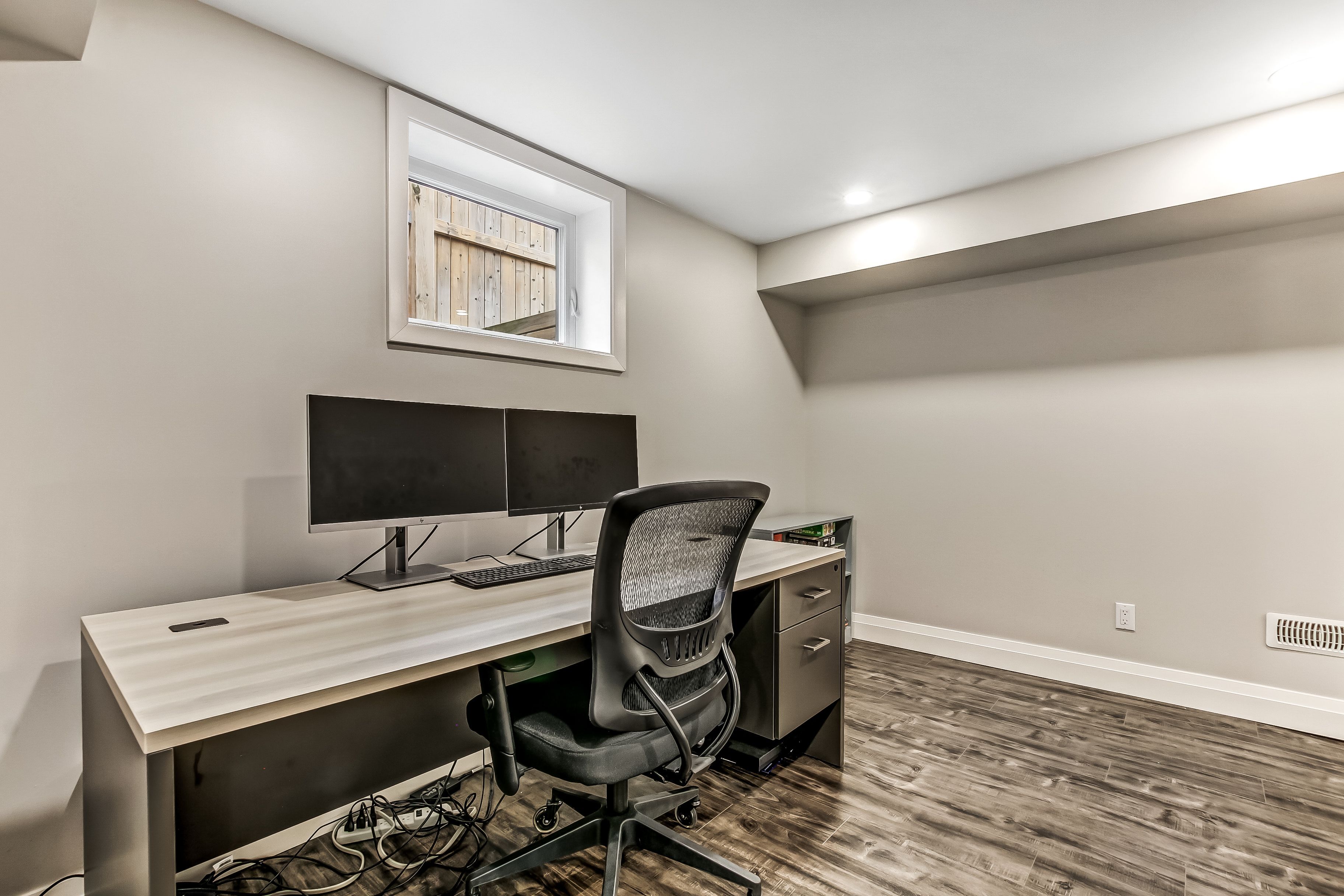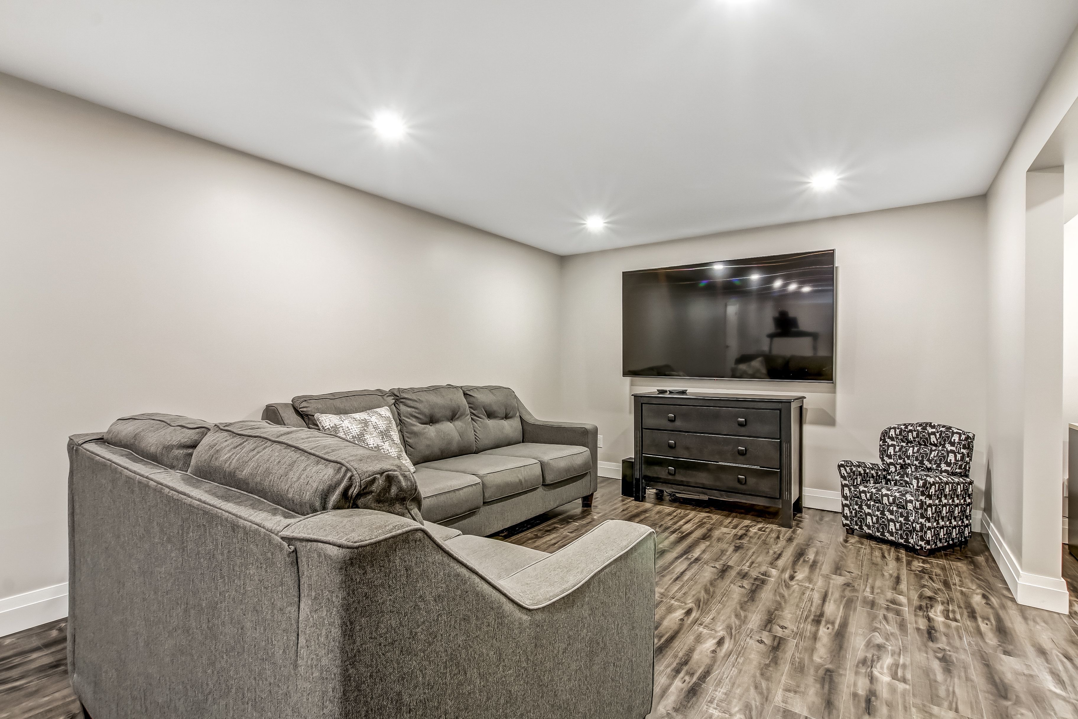 • Finished lower level with a family room, extra bedroom, and bathroom.