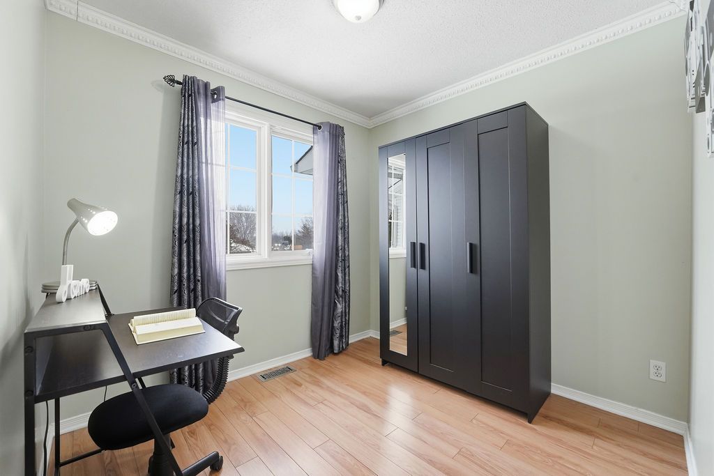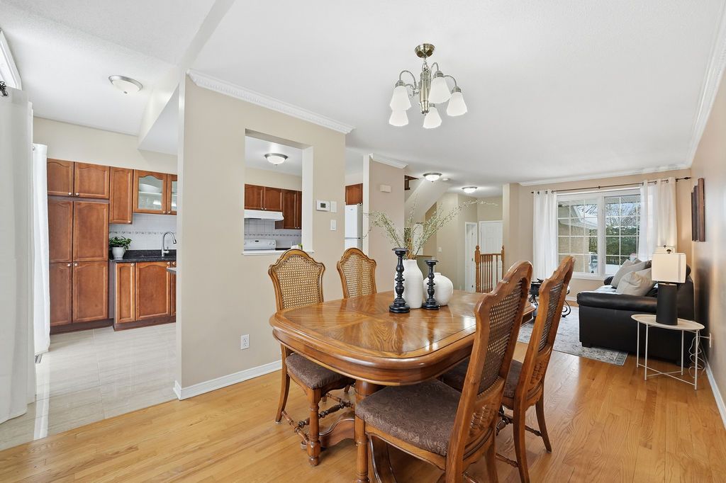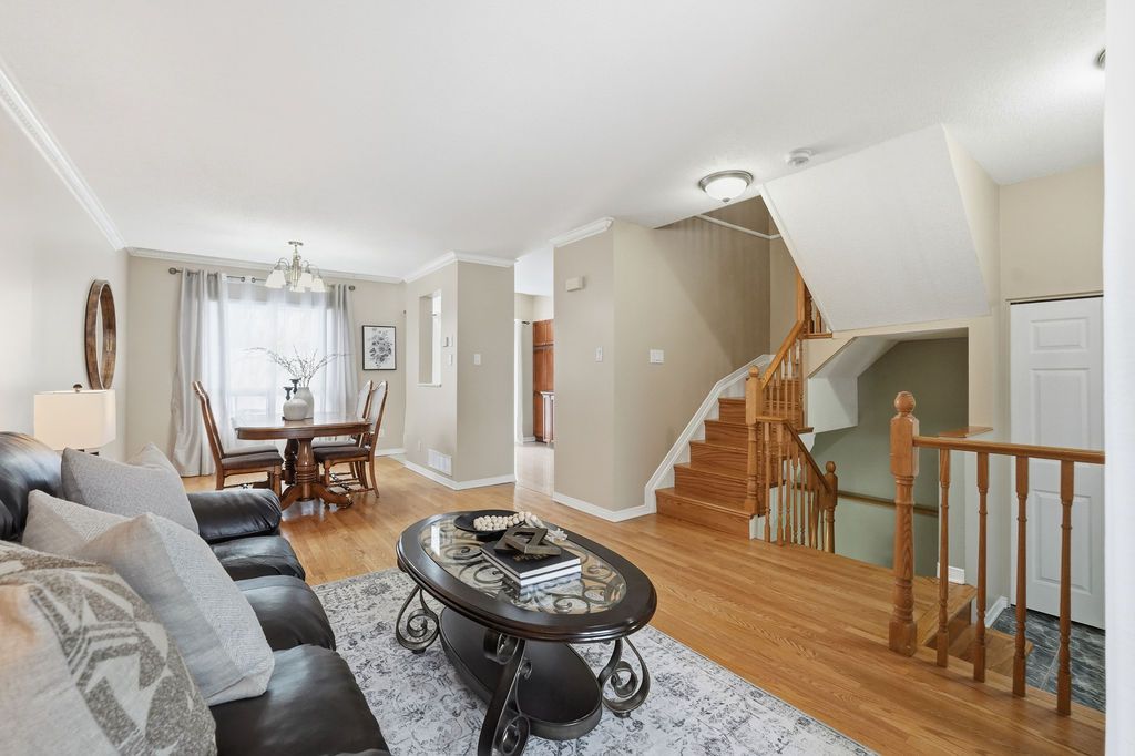Welcome to 1165 falconcrest court! A beautifully maintained, carpet-free freehold townhome tucked away on a quiet cul-de-sac and backing onto a tranquil wooded area with no rear neighbours and views of rossignol park. This bright and inviting home offers 3 bedrooms and 1. 5 bathrooms, with a finished lower-level family room featuring a cozy natural gas fireplace, ideal for relaxing or entertaining. The spacious open-concept living and dining area is filled with natural light and showcases natural hardwood flooring throughout. The updated kitchen is both stylish and functional, featuring granite countertops, ample cabinetry, a convenient coffee bar, and porcelain tile flooring. A main-floor powder room and inside entry from the garage add everyday convenience. Upstairs, the generous primary bedroom includes wall-to-wall closets, complemented by two additional well-sized bedrooms, a fully upgraded main bathroom, and updated flooring. Lower level laundry and storage rooms for plenty of storage. Enjoy an unbeatable location surrounded by outdoor and recreational amenities, including petrie island's beach, canoeing, scenic riverside trails for walking, biking, and skiing (off jeanne d'arc north between tenth line & trim), bob macquarrie recreation centre, millennium sports park, numerous parks and wonderful schools. Just a short drive to place d'orléans for shopping and everyday essentials. Be our guest and book your private viewing today!