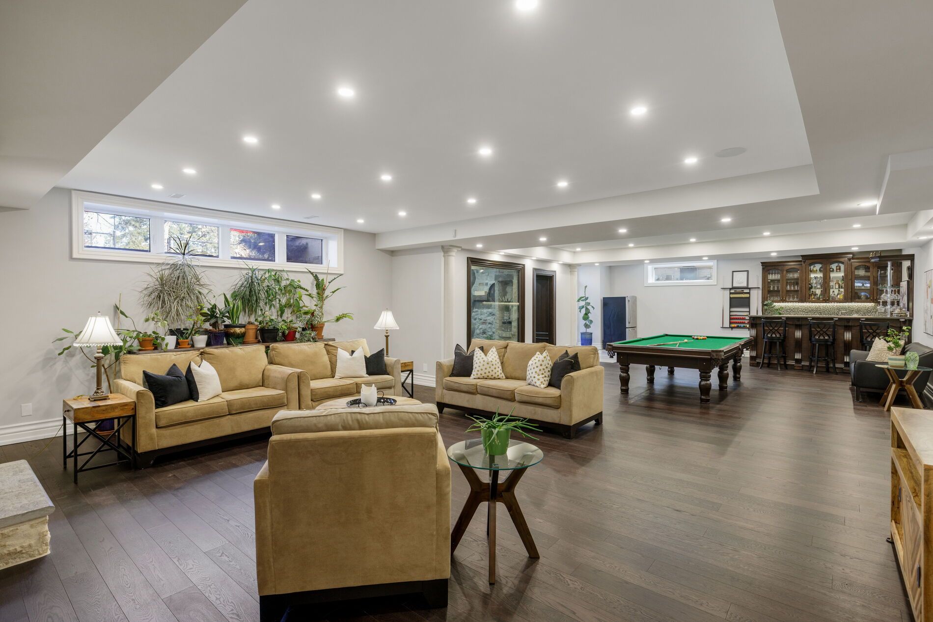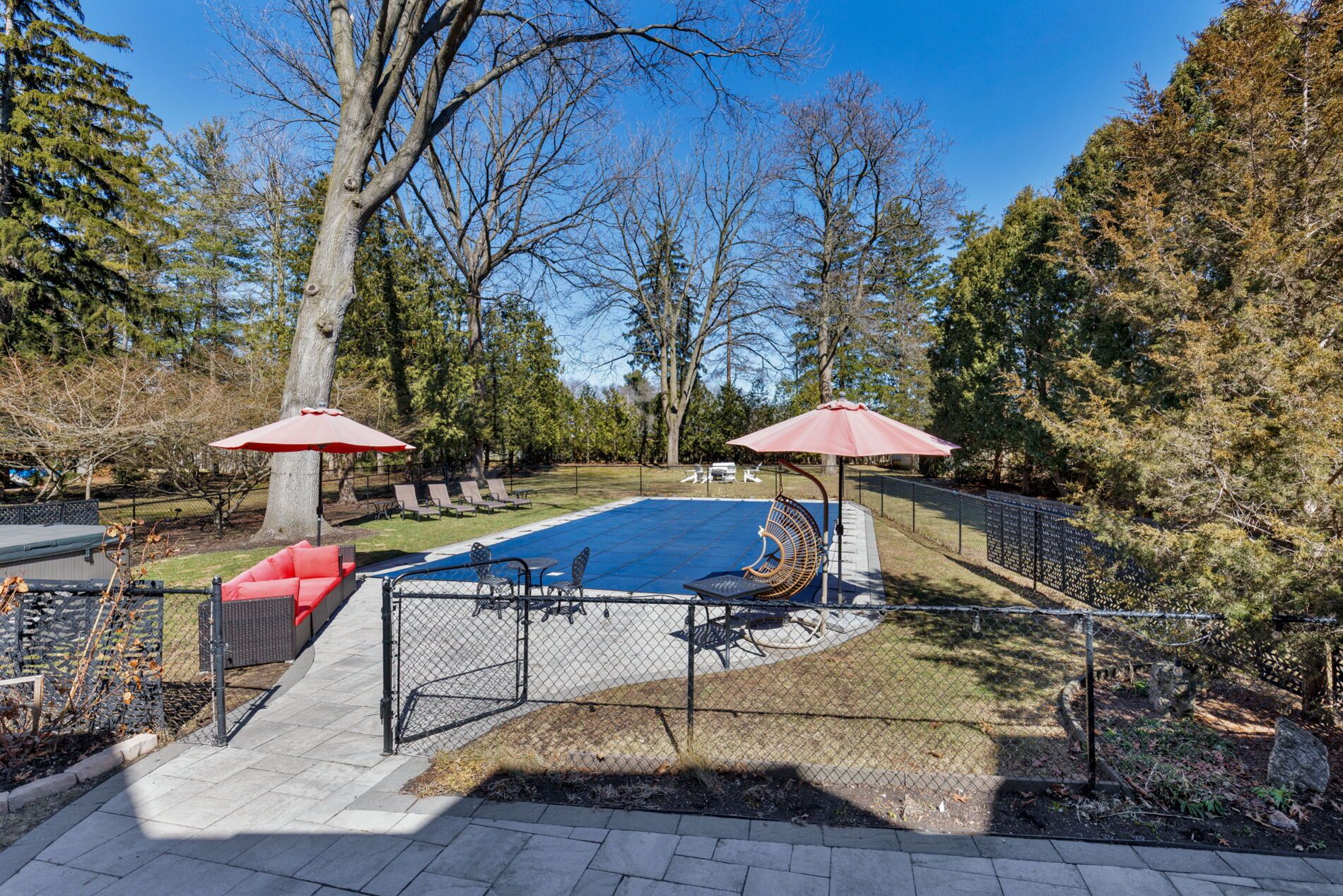 • Resort-style backyard features saltwater pool, hot tub, and a covered terrace.