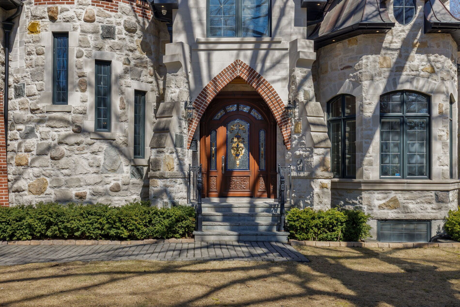 Your castle awaits in lorne park, one of mississauga's most prestigious lakeside communities, celebrated for its mature tree-lined streets, oversized lots, top-rated schools & seamless access to toronto via the qew & clarkson go. This extraordinary medieval-inspired residence offers 4 bedrooms & 6 bathrooms, & an incredibly finished walk-up basement on a rare 79. 25 x 274. 83 ft lot, blending timeless old-world architecture-steep rooflines, a striking stone turret, an arched entry & a stained-glass embellished entrance door-with modern luxury & functionality. The resort-style backyard is a private oasis featuring an in-ground saltwater pool with a new heater (2024), hot tub, mature trees, a covered stone terrace with a built-in natural gas bbq, plus a custom hydro-equipped shed. Inside, artisan-crafted details abound, including stone feature walls, cathedral ceilings, wrought iron chandeliers, arched doorways & wide-plank engineered hardwood, complemented by modern comforts such as heated floors, 3 fireplaces, sonos indoor/outdoor audio, custom hunter douglas blinds & extensive pot lighting. The main level impresses with a grand 2-storey living/dining room with a fireplace, a designer custom kitchen with premium thermador & gaggenau appliances, a breakfast room with a walkout, a family room with coffered ceilings & a fireplace, & a private office with custom cabinetry. Upstairs offers 4 spacious bedrooms, 3 elegant baths & a laundry room, while the walk-up lower level is designed for entertaining, along with wine tasting, fitness & spa/sauna spaces. The home offers a recently added hot tub, 3 upgraded electrical panels, upgraded alarm for heat detectors in garage, kitchen and mechanical room, & the garage has recently been fitted with a rough-in for a car charger & a rough-in for a future generator. Steps to a neighbourhood plaza, & minutes to clarkson village, parks & lake ontario, this one-of-a-kind estate delivers luxury, privacy & an unparalleled lifestyle.