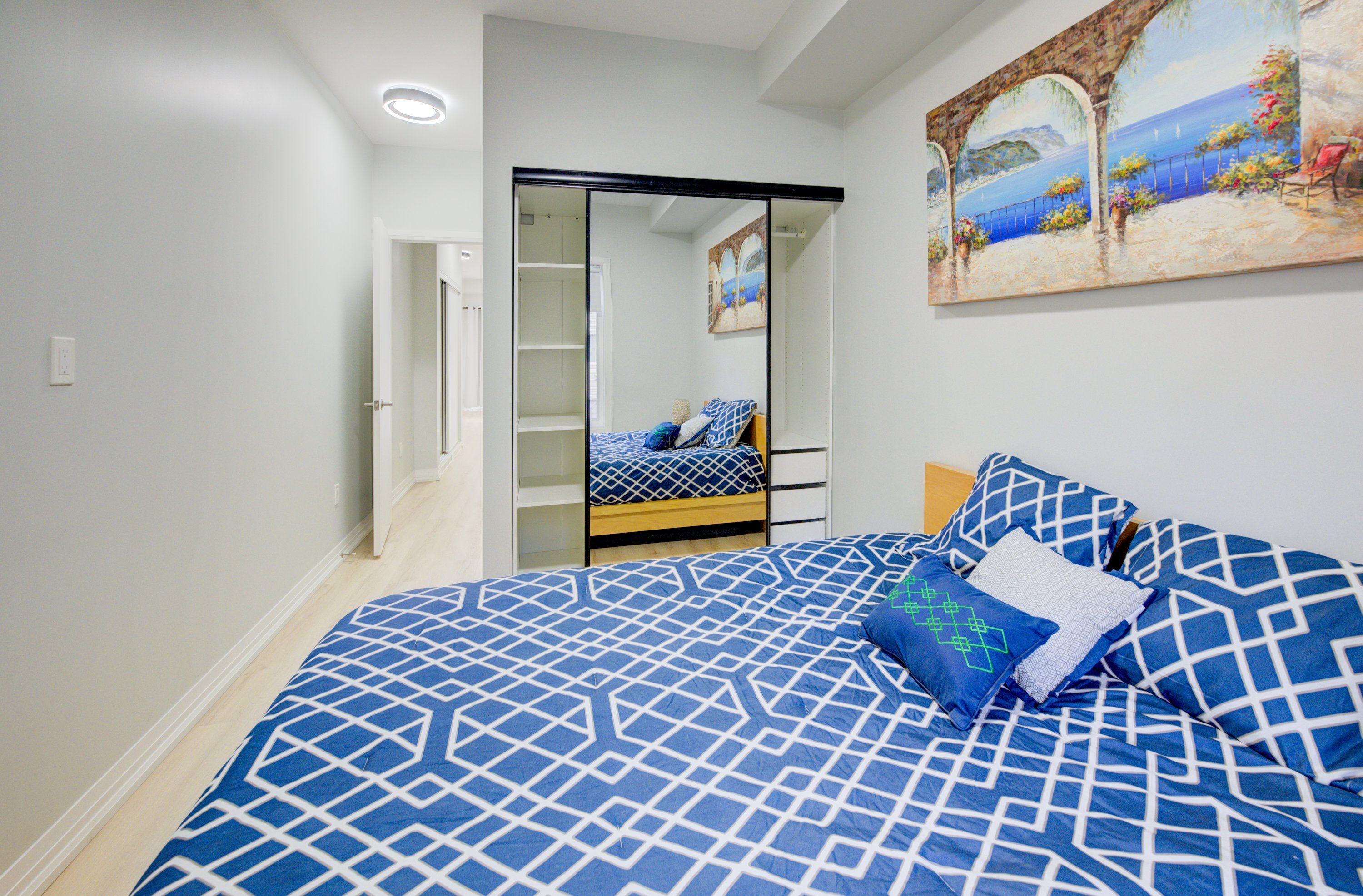 • Spacious bedroom with custom closet for great storage solutions.