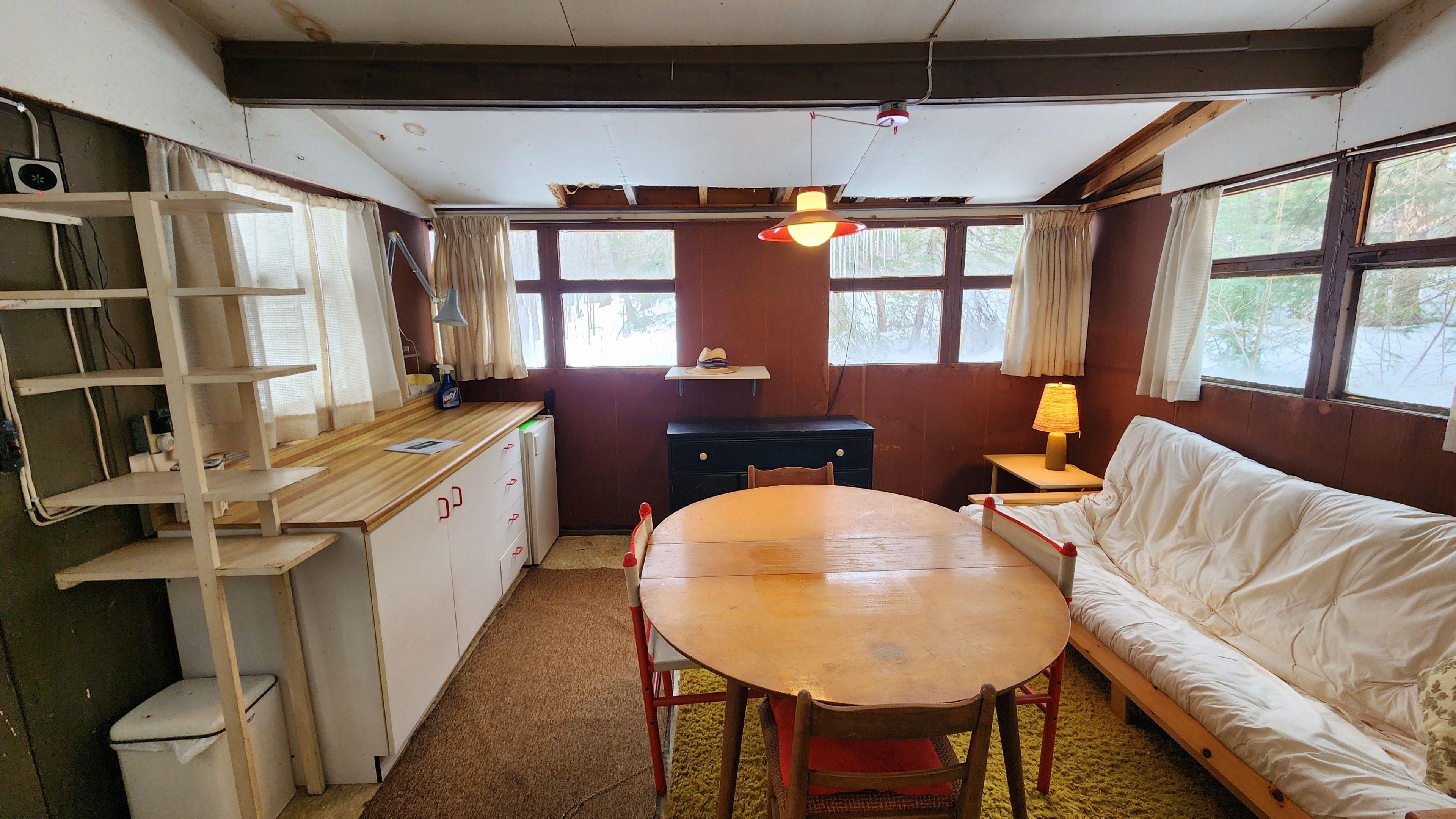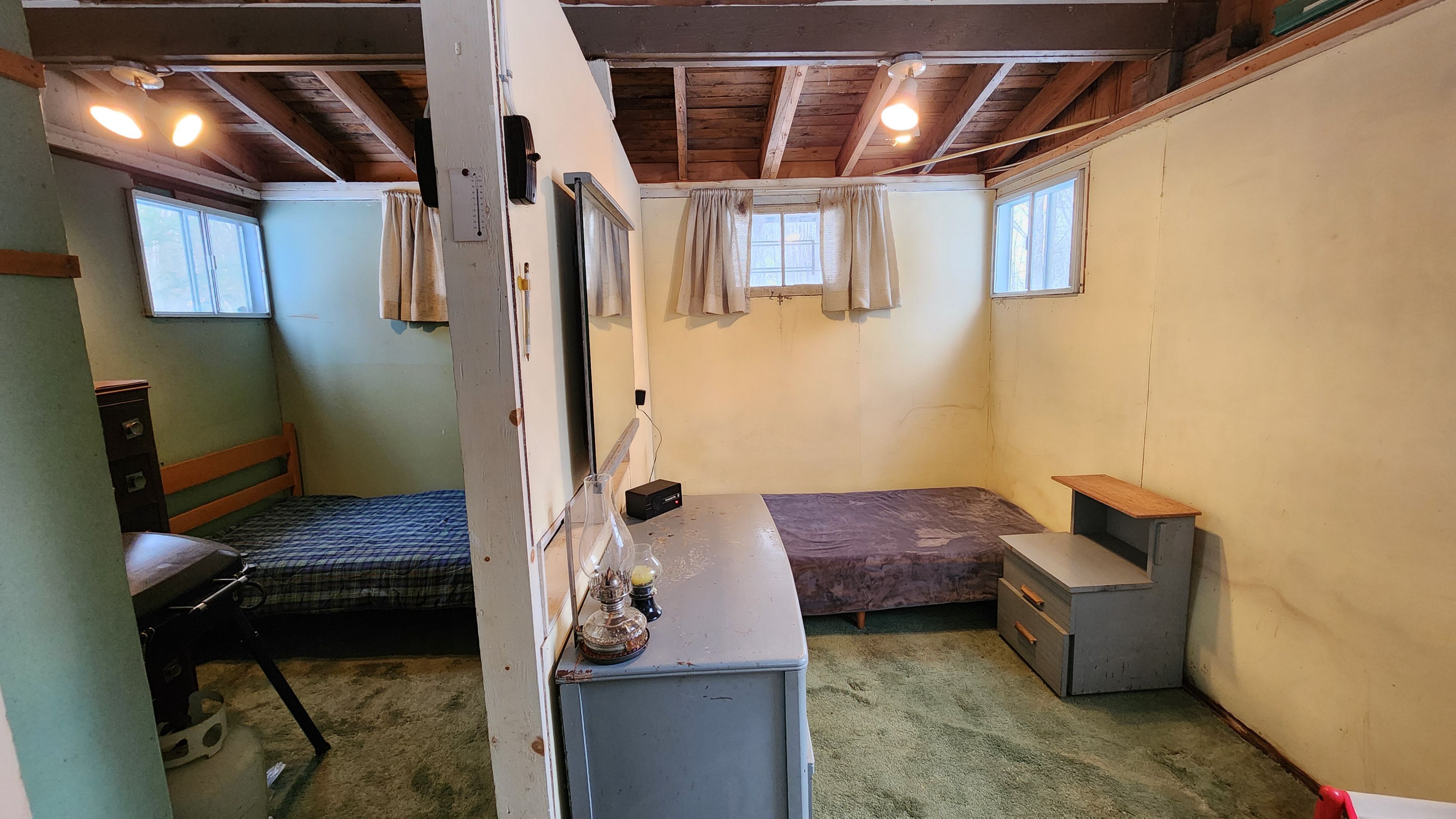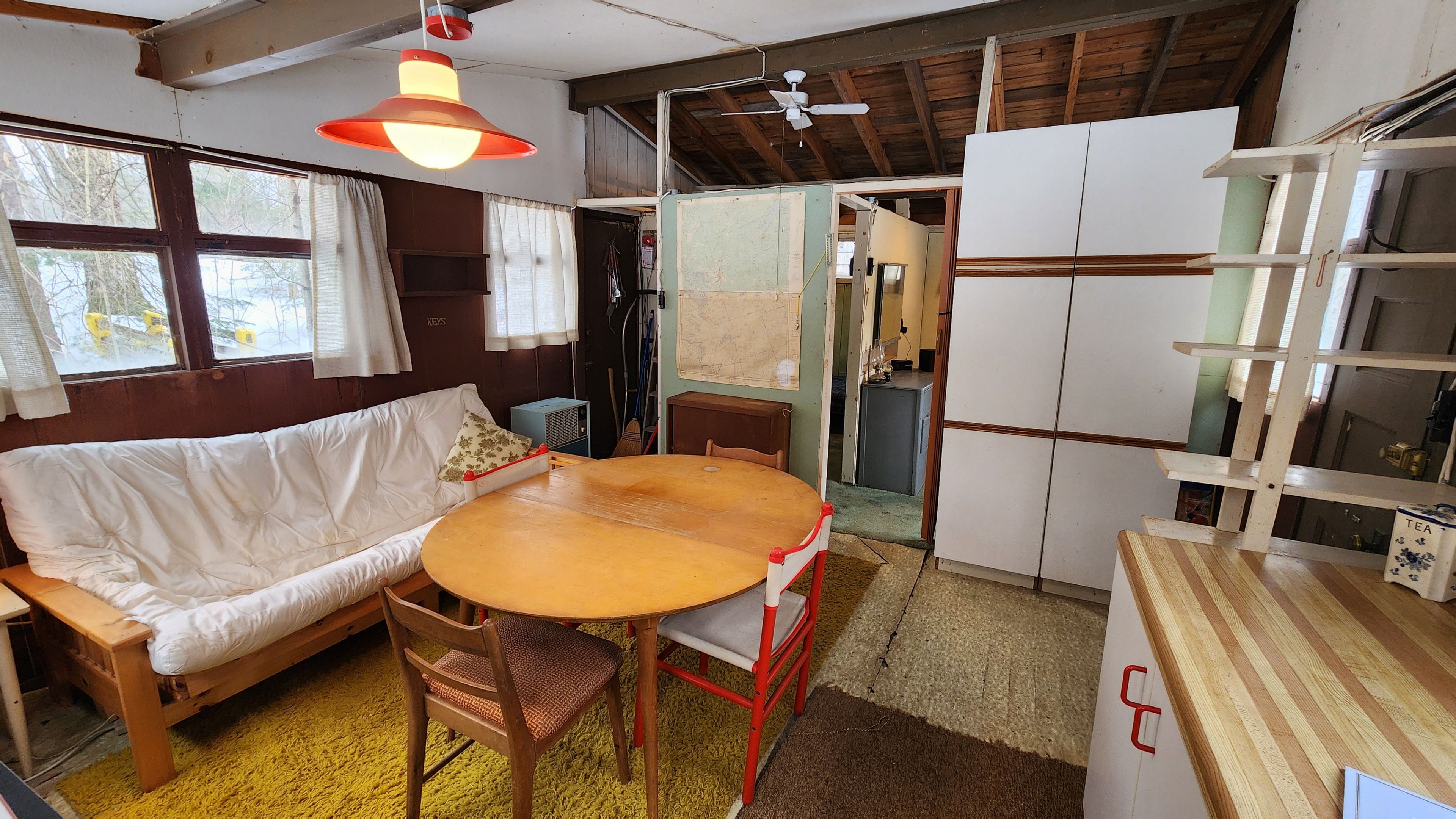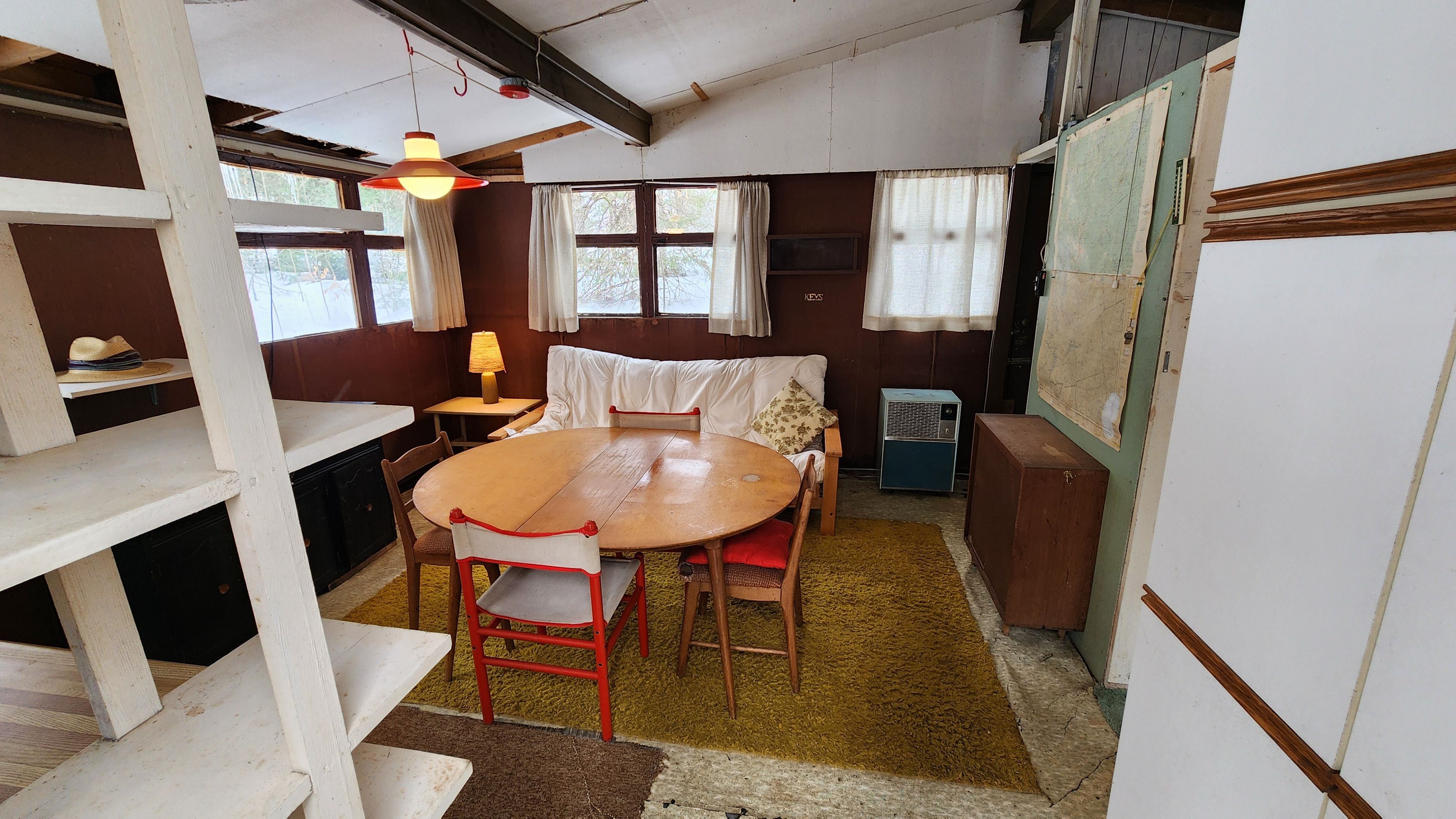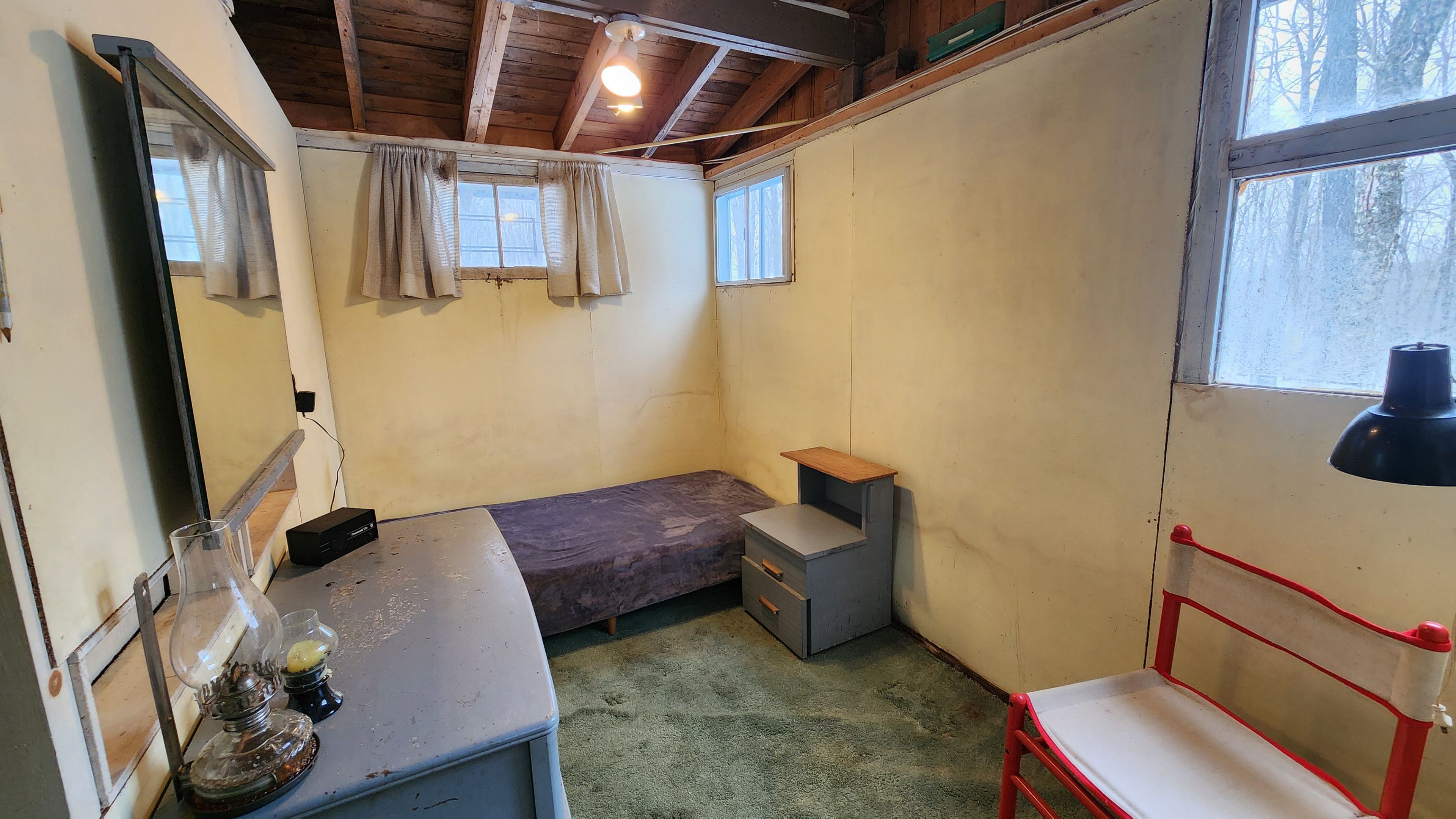 • Rustic cabin with unique reclaimed door construction, rich in character.