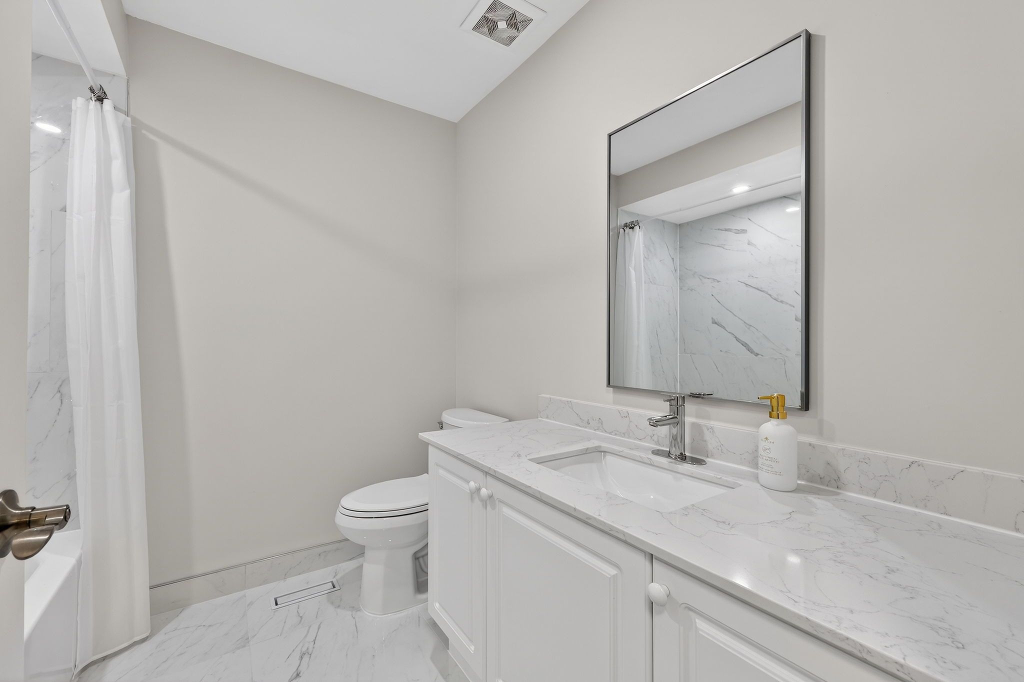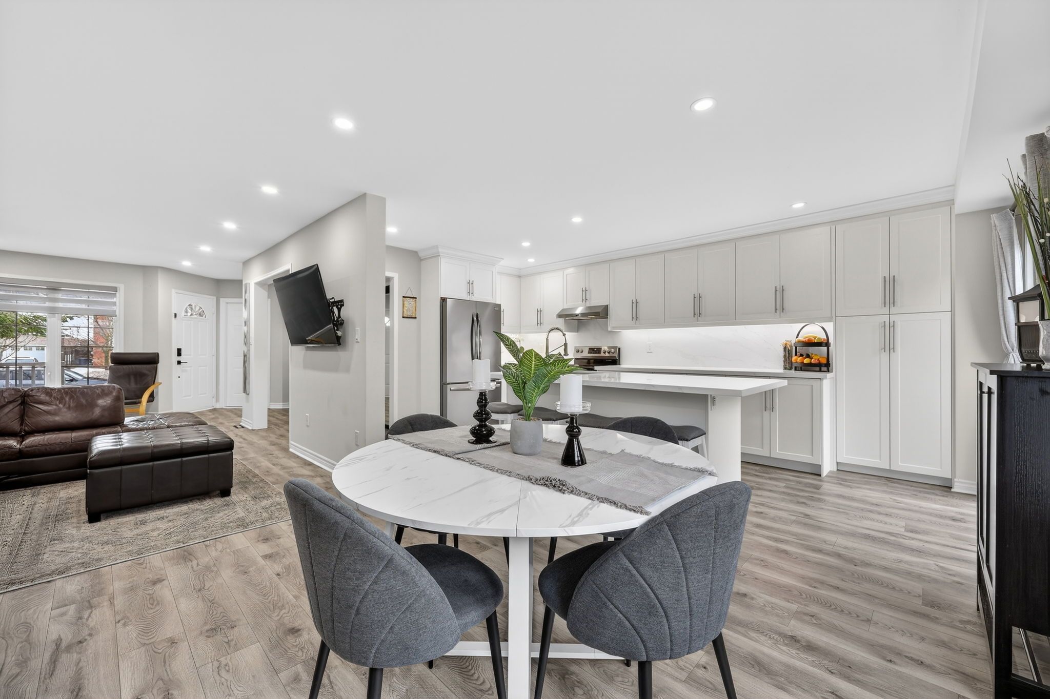 • Open concept layout with a custom eat-in kitchen.