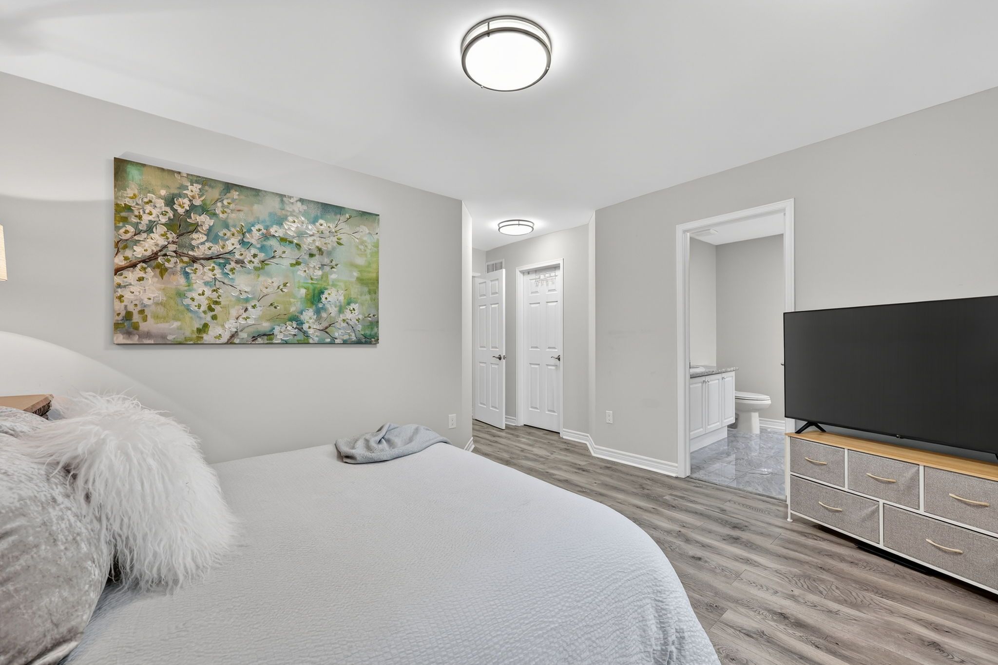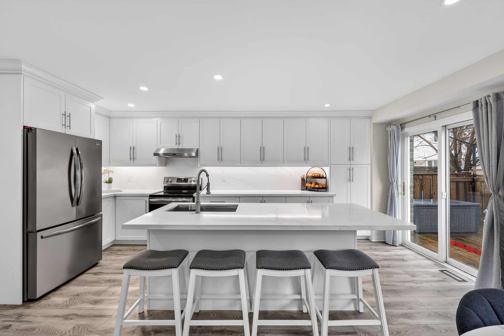 Stunning family home in the desirable & quiet alcona community! Beautifully updated throughout, this fantastic home features an open concept layout & stunning custom eat-in kitchen with an 8 ft centre island, quartz countertops, stainless steel appliances & walk-out to deck & gazebo - great for family gatherings & entertaining! Other finishes include quality laminate floors throughout, newer pot lights, freshly painted & updated bathrooms. The finished basement offers additional living space with a 3-piece bathroom. Convenient direct garage access with a newer garage door (2023). Just a 5 minute drive to innisfil beach park with exclusive resident beach access & free parking, only minutes to highway 400, shops, restaurants, innisfil community centre & much more - move in & enjoy!