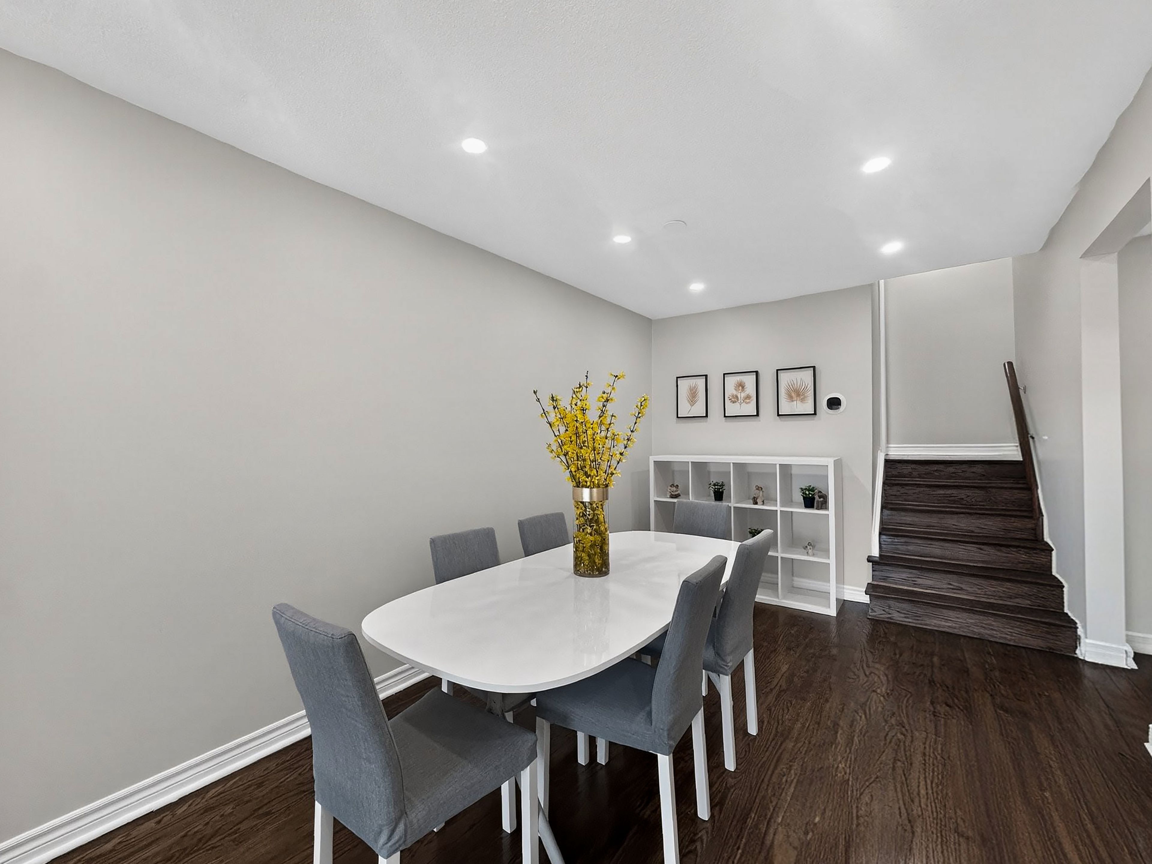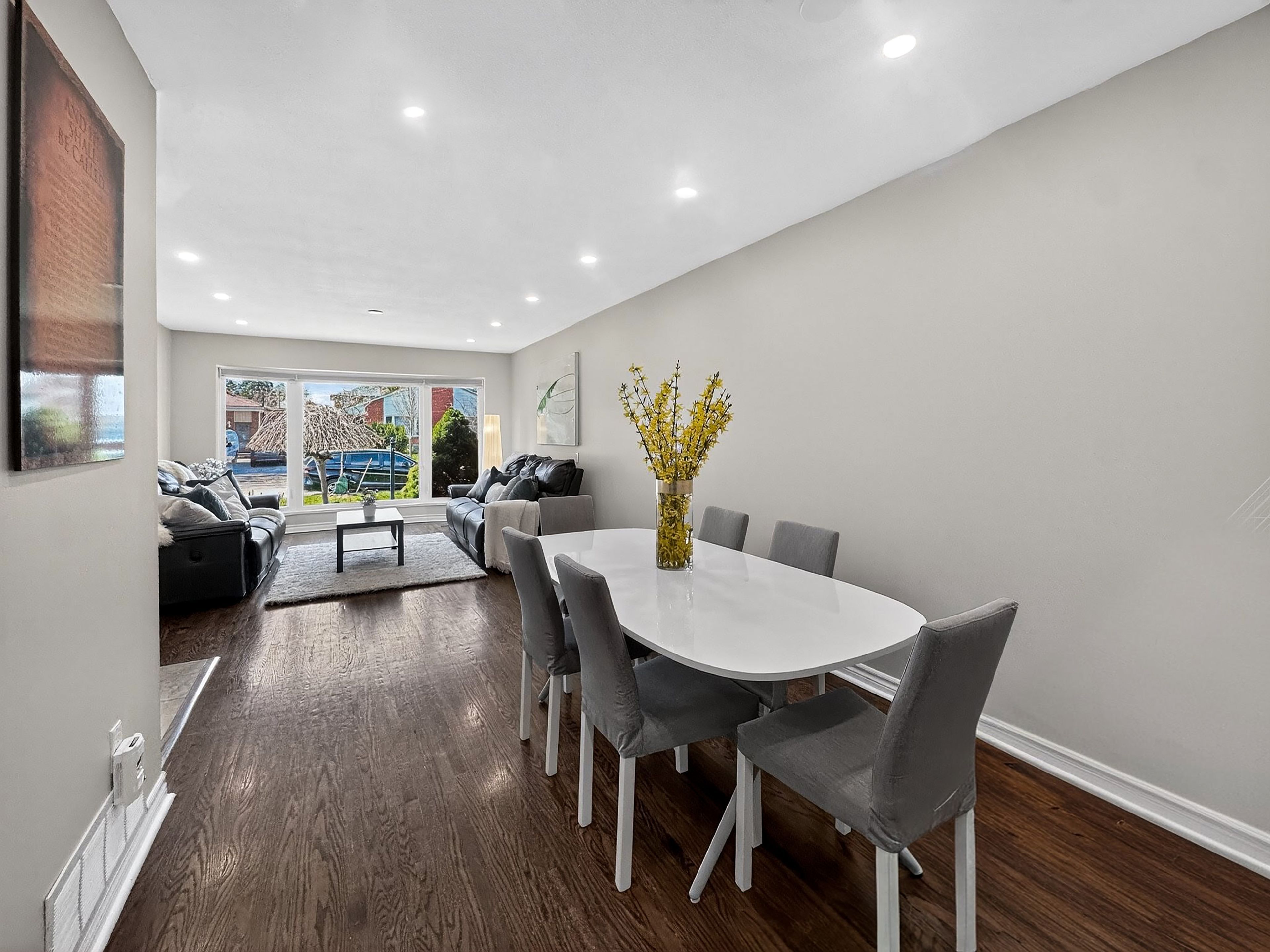 • Bright open-concept living and dining area with hardwood floors.