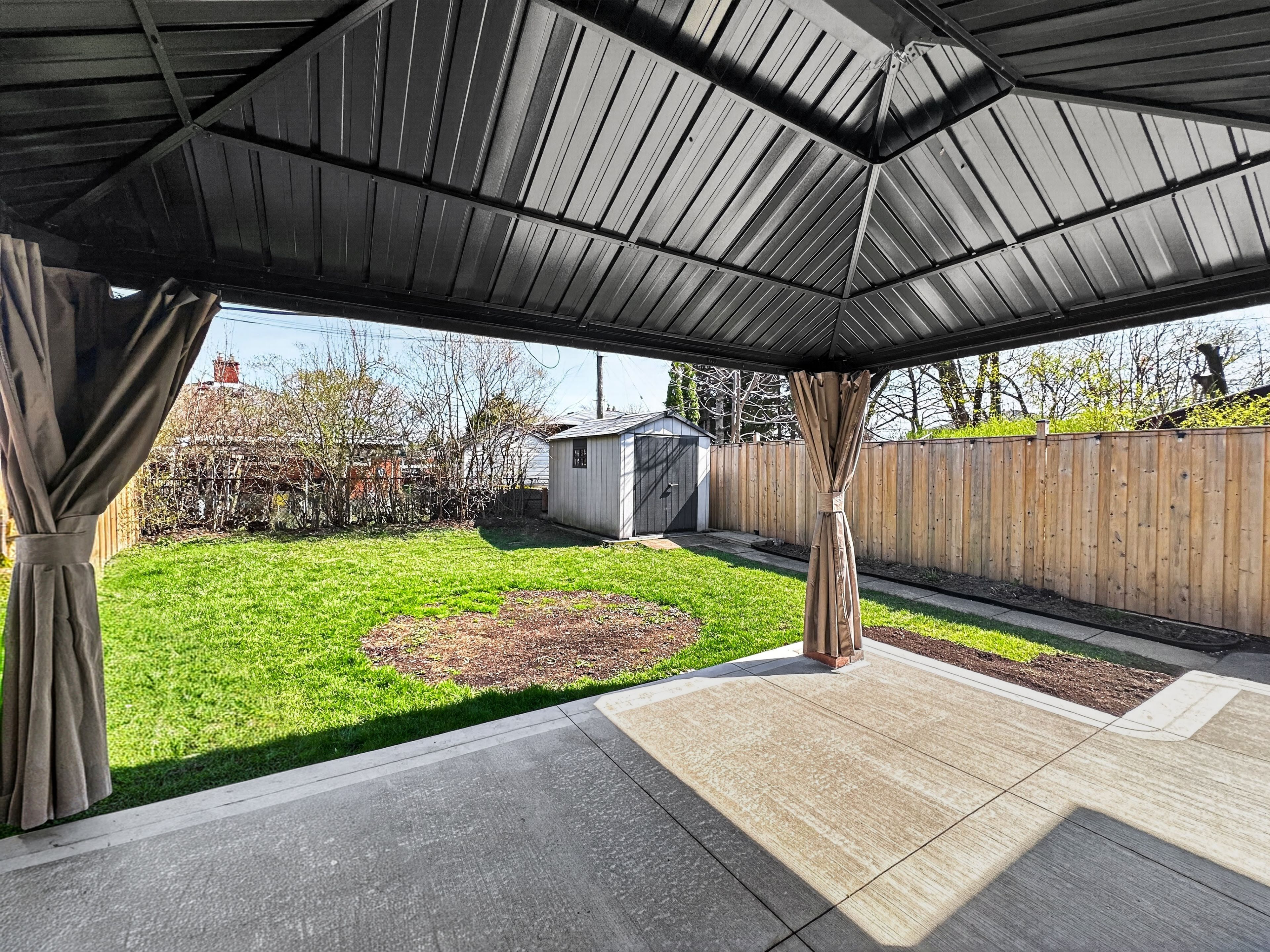 • Private backyard with covered patio, perfect for relaxing or hosting.