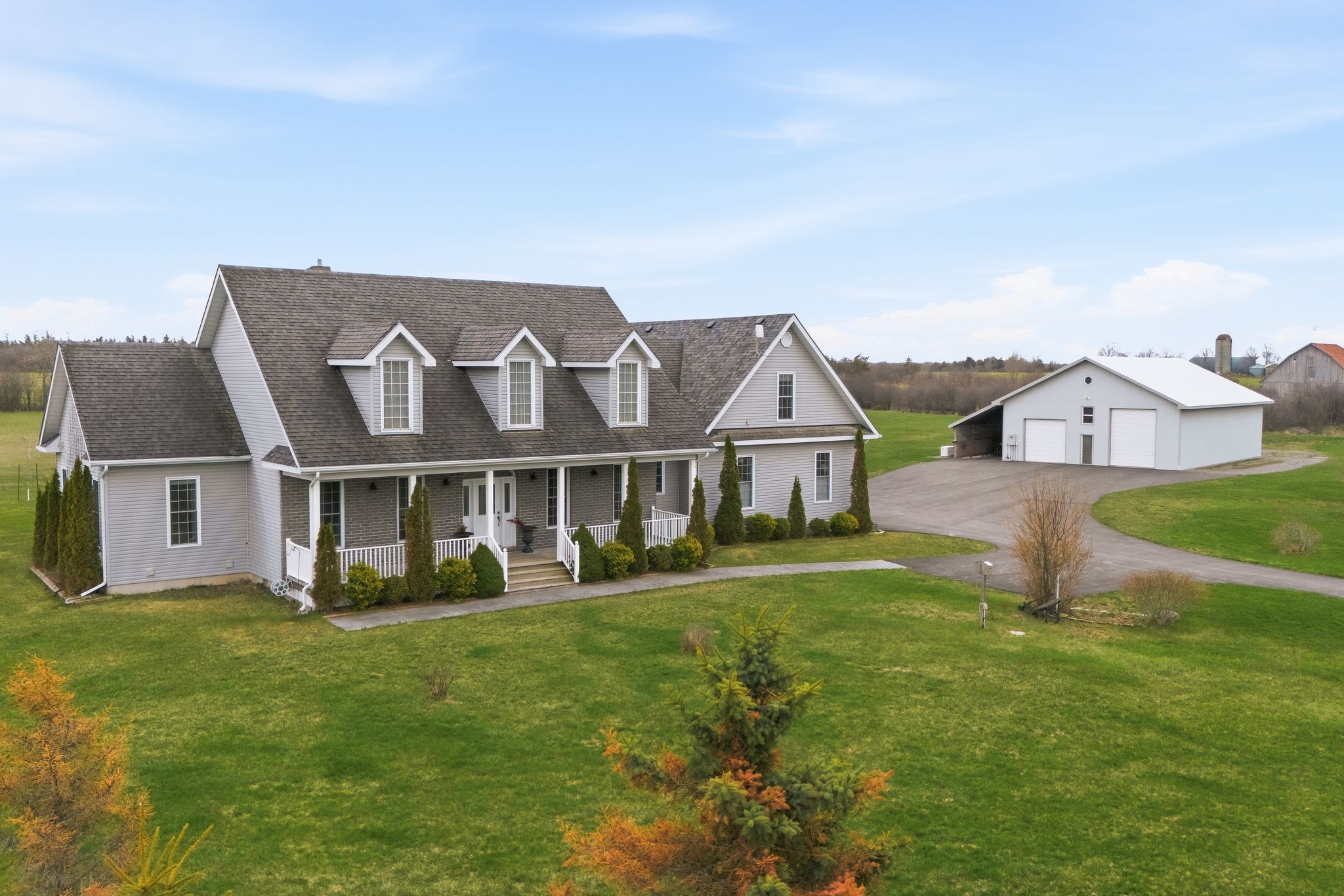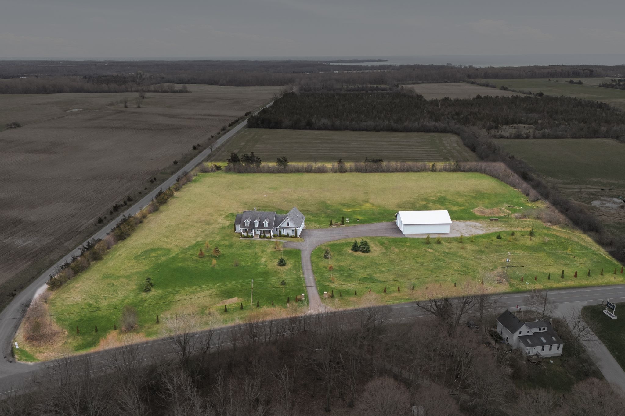 Set amid the natural beauty of prince edward county and moments to sandbanks, this 97-acre estate unfolds as a rare and compelling landscape, two parcels framed by gentle tree lines and pastoral views that shift with the seasons. The residence is thoughtfully designed and scaled, where light and volume define the experience. Vaulted ceilings and arched windows draw the outdoors in, while a natural flow connects the principal living spaces, inviting both relaxed daily living and effortless entertaining. The kitchen anchors the home with a seamless transition to dining, living and outdoor living terrace, all oriented to capture the surrounding countryside. Four bedrooms include two with private ensuites, complemented by a sauna and a series of well-considered spaces including a mudroom, laundry, and attached double garage. Above, a loft and den offer flexibility for work, studio use, or quiet retreat. Modern mechanicals including a heat pump system and generator backup provide year round comfort and piece of mind. Beyond the home, the land becomes part of the lifestyle. The expansive detached garage/workshop spanning over 2,200 square feet, and complimented by a generous lean-to, opens the door to a an exceptional scope of possibilities, from creative pursuits to equipment/recreational storage or home based hobbies and enterprise. Wide open acreage invites further exploration, whether cultivating, wandering, or simply enjoying the stillness. All of this just 15 minutes to picton and its array of amenities, dining, and cultural destinations. A setting defined by space, light, and potential this is a place to shape a life in the county, with room to live, gather, create, and imagine what comes next.