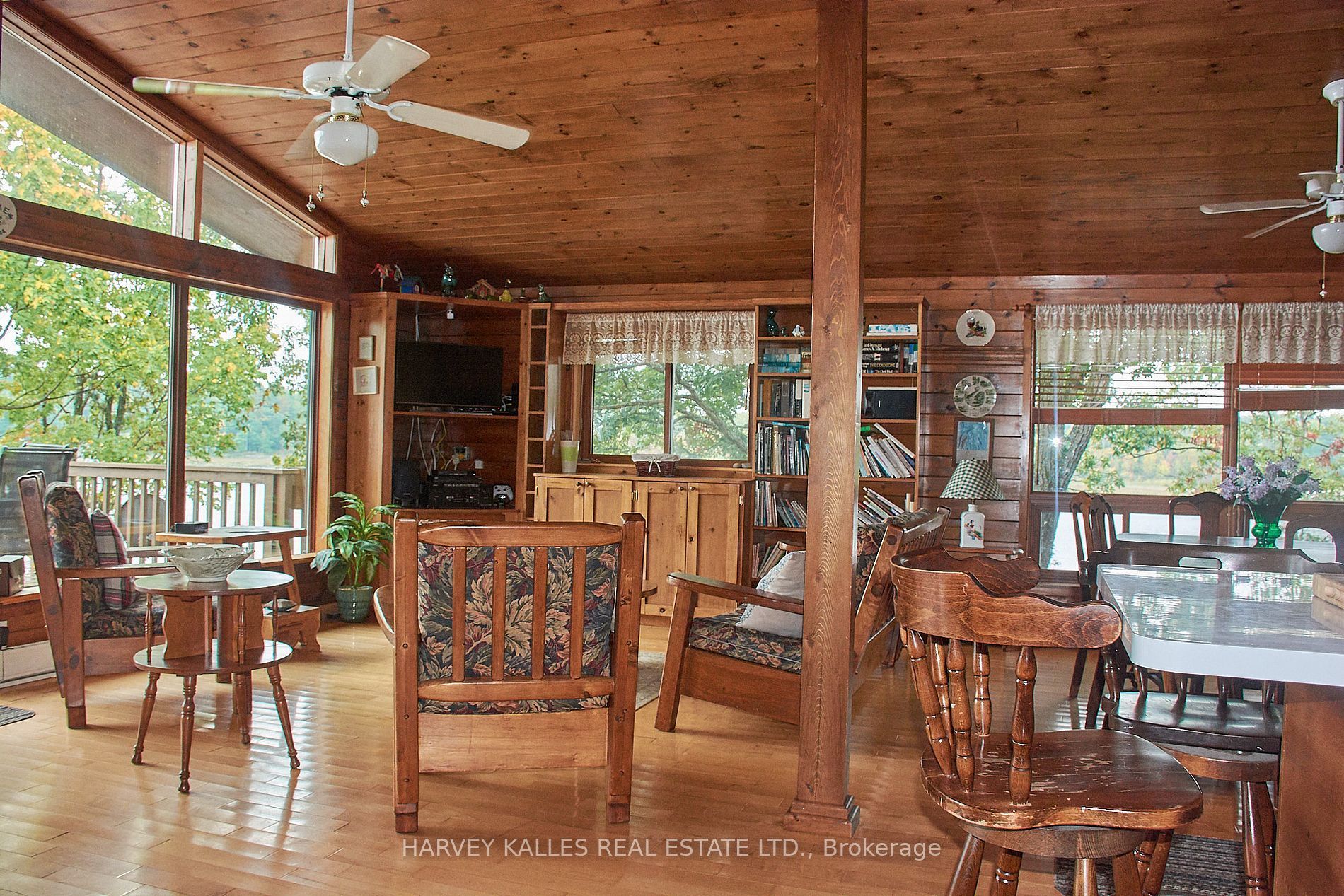 • Four-season cottage featuring 4 bedrooms and classic wood cabin charm.