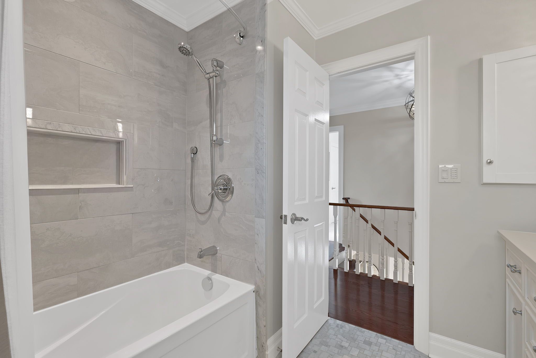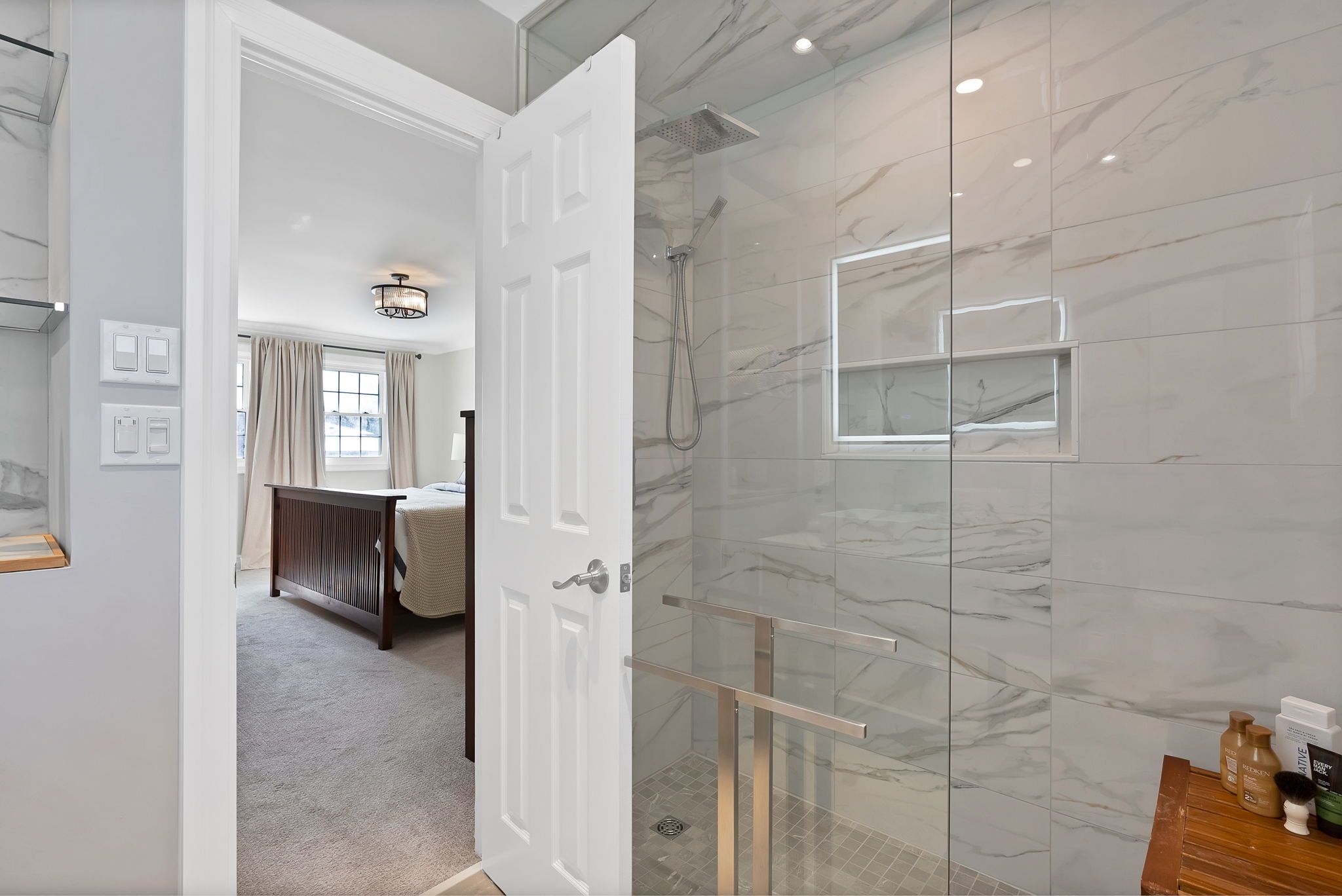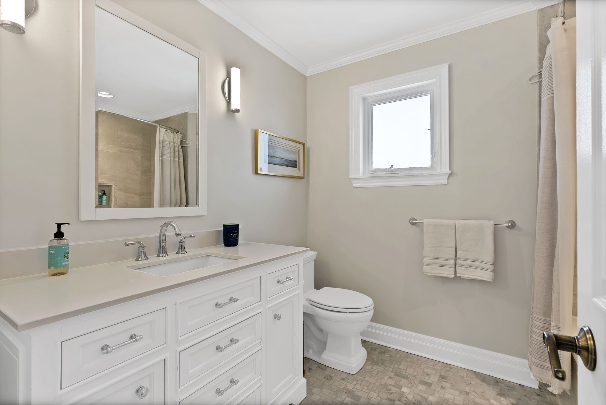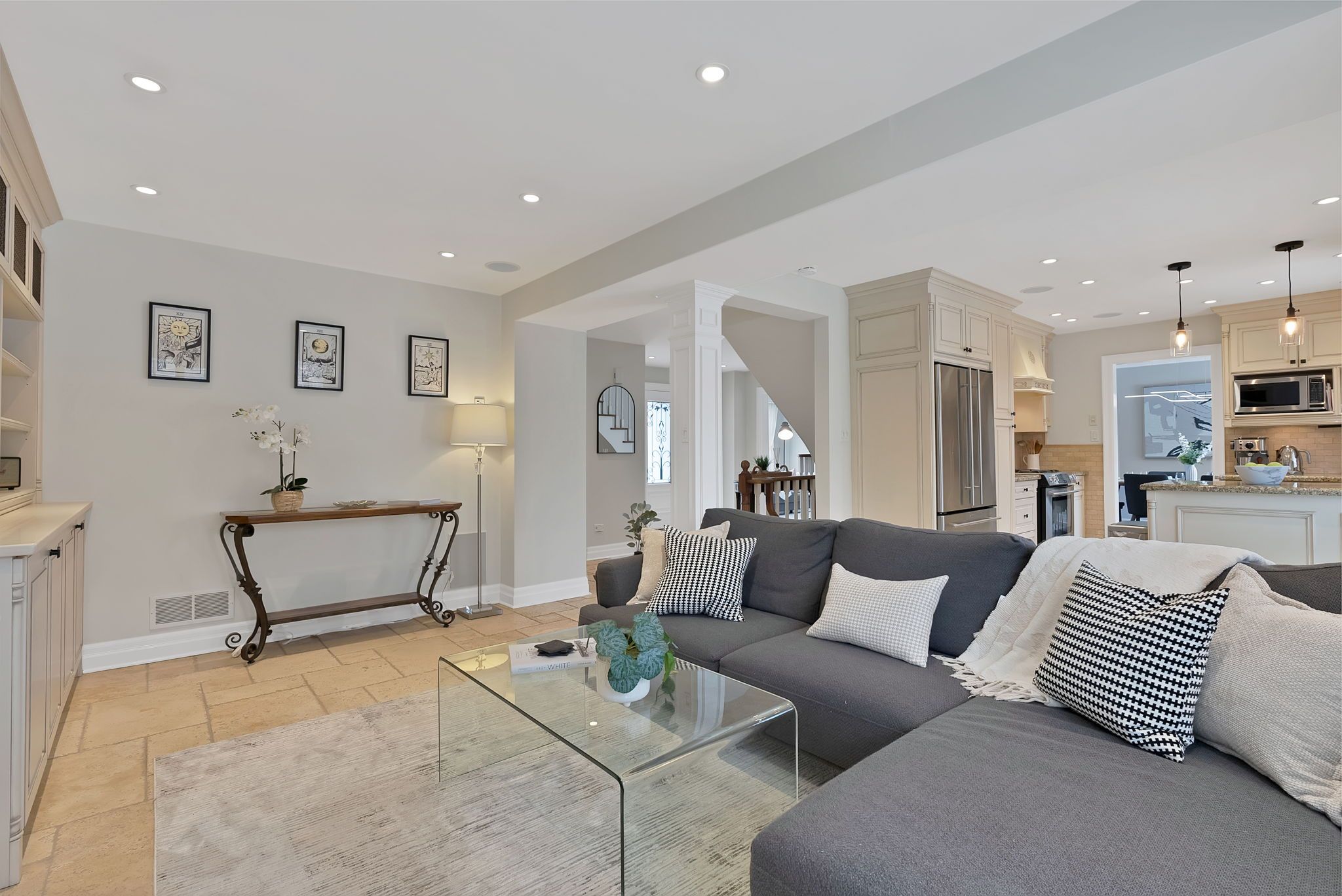 • Modern kitchen with high-end appliances and elegant stone countertops.