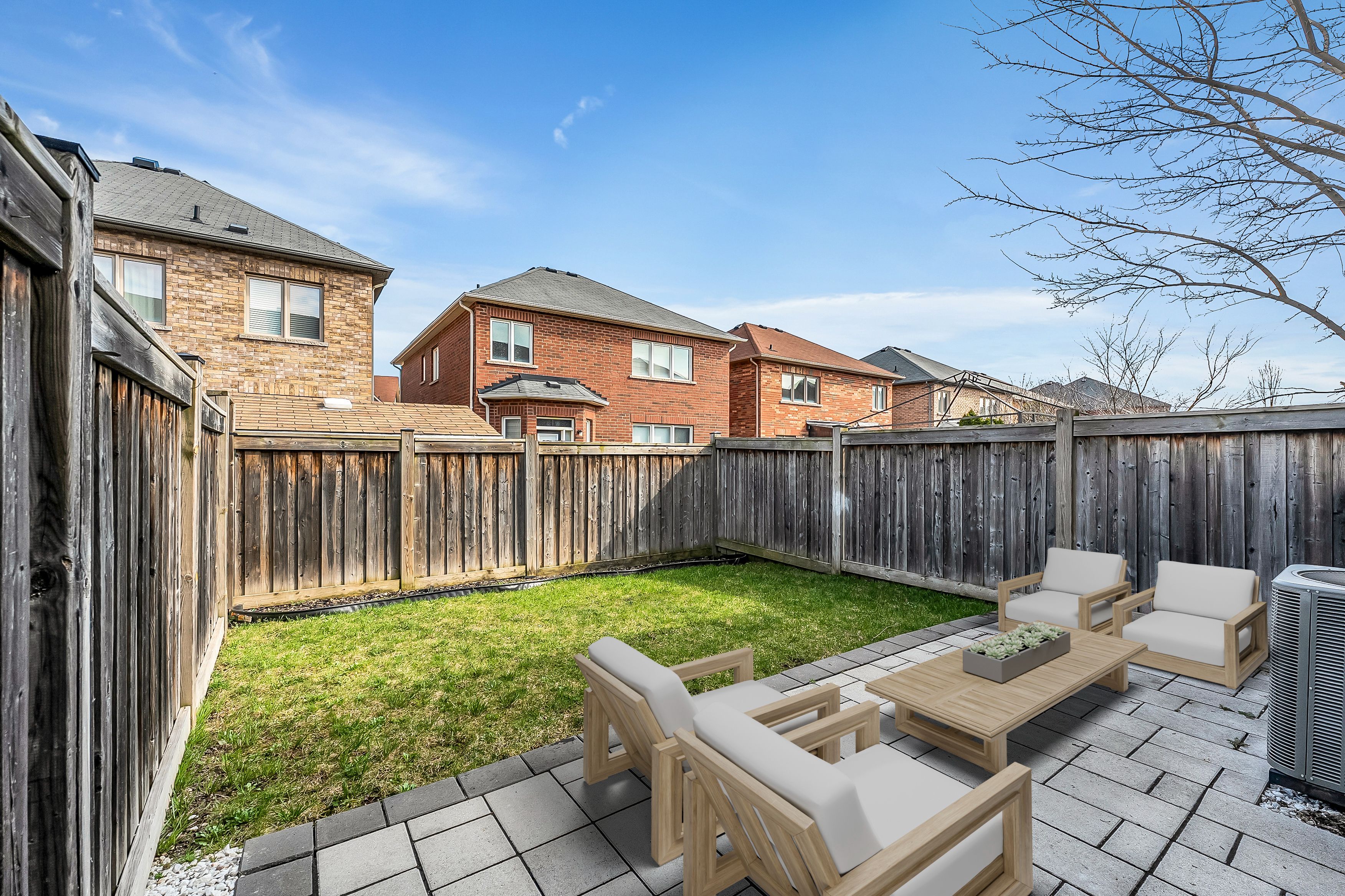• Fully fenced backyard with custom patio, perfect for relaxation.