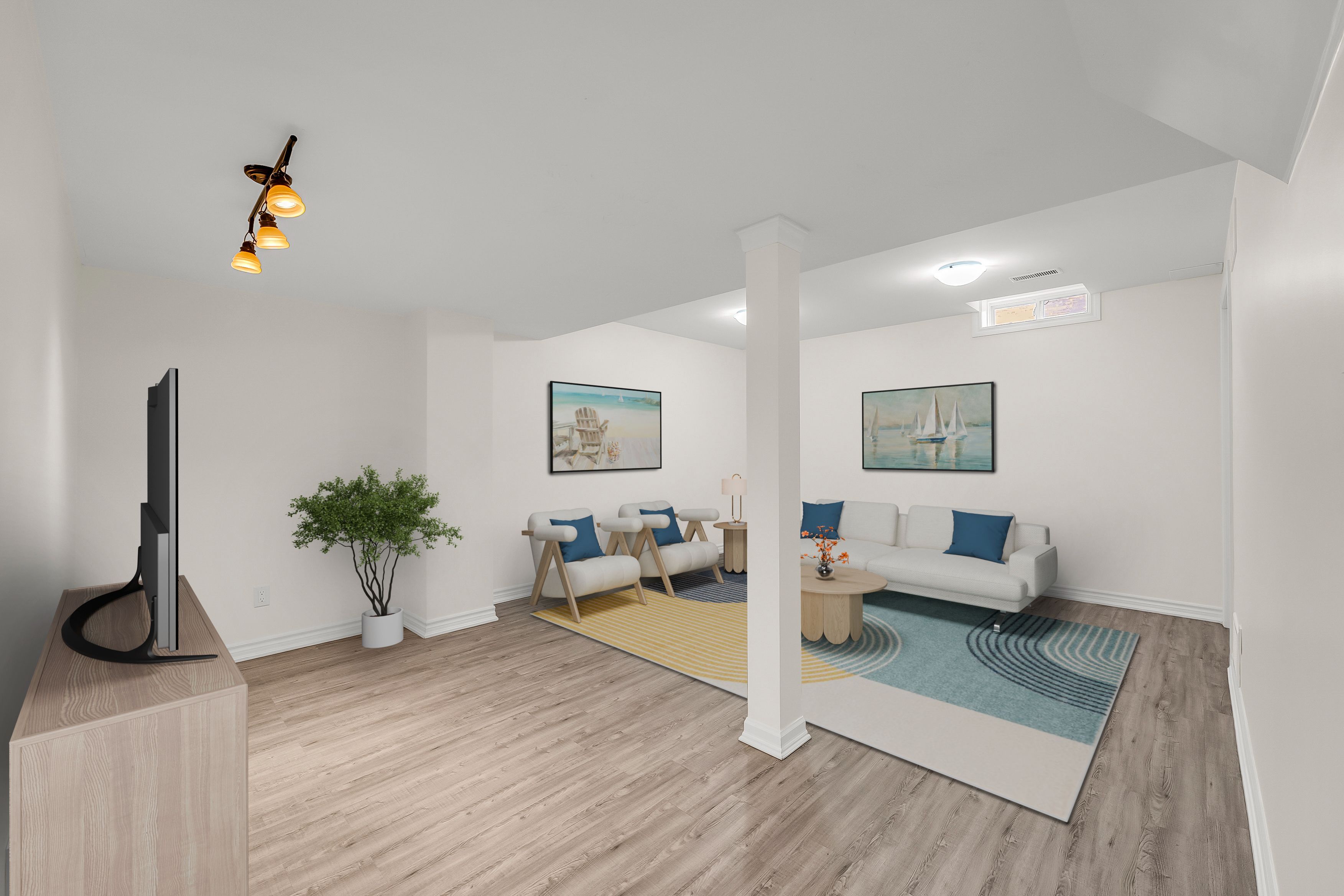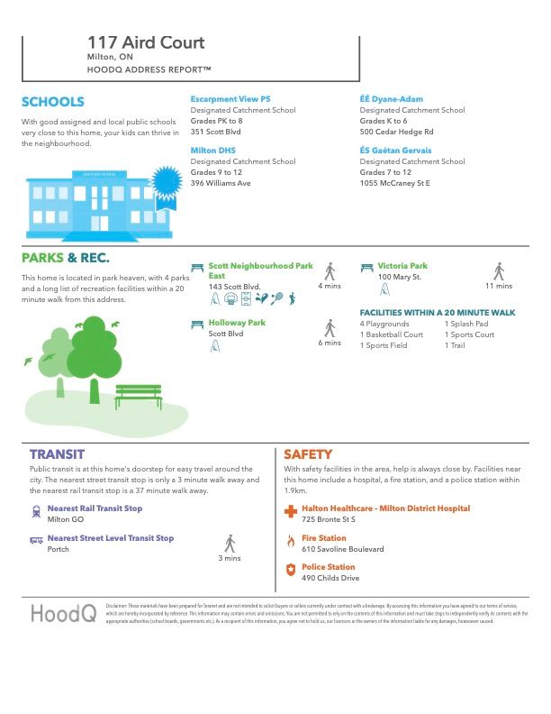 Welcome to 117 aird court, an exceptionally well-maintained heathwood-built home, nestled on a quiet court in the highly sought-after scott neighbourhood, offering a refined blend of comfort, thoughtful design, and everyday convenience. Showcasing exceptional curb appeal with beautifully finished front and backyard spaces, this upgraded executive townhome features 3 generously sized bedrooms, 4 spa-inspired bathrooms, and a highly functional layout. The foyer creates an impressive sense of arrival with a grand entrance feel, complemented by an elegant staircase and open-to-below feature that adds a strong architectural presence. The bright main level is enhanced with 9-foot ceilings, rich hardwood flooring, upgraded lighting, new pot lights, and a cohesive colour palette flowing throughout. The high-end kitchen features premium countertops, centre island with breakfast bar, stainless steel appliances, and modern backsplash. The open-concept living space is ideal for entertaining and everyday comfort with direct access to the backyard. Step outside to a fully fenced backyard w/custom interlocking stone patio and lush green space ideal for gardening or outdoor relaxation. Upstairs offers three spacious bedrooms, plus a versatile den ideal for a home office or study space. The serene primary retreat features double door entry, a bright sitting area, walk-in closet, and private ensuite with a sleek glass-enclosed shower. The professionally finished basement adds substantial additional living space, featuring modern flooring, a full bathroom, rec area, and a well-designed hallway-thoughtfully configured to maximize functionality and flow. Additional highlights include direct interior garage access with upgraded features for added convenience. Ideally located steps to scott neighbourhood park, scenic trails, top-rated schools, and minutes to milton hospital, milton mall, community centre, and go station, offering excellent commuter access and lifestyle convenience.