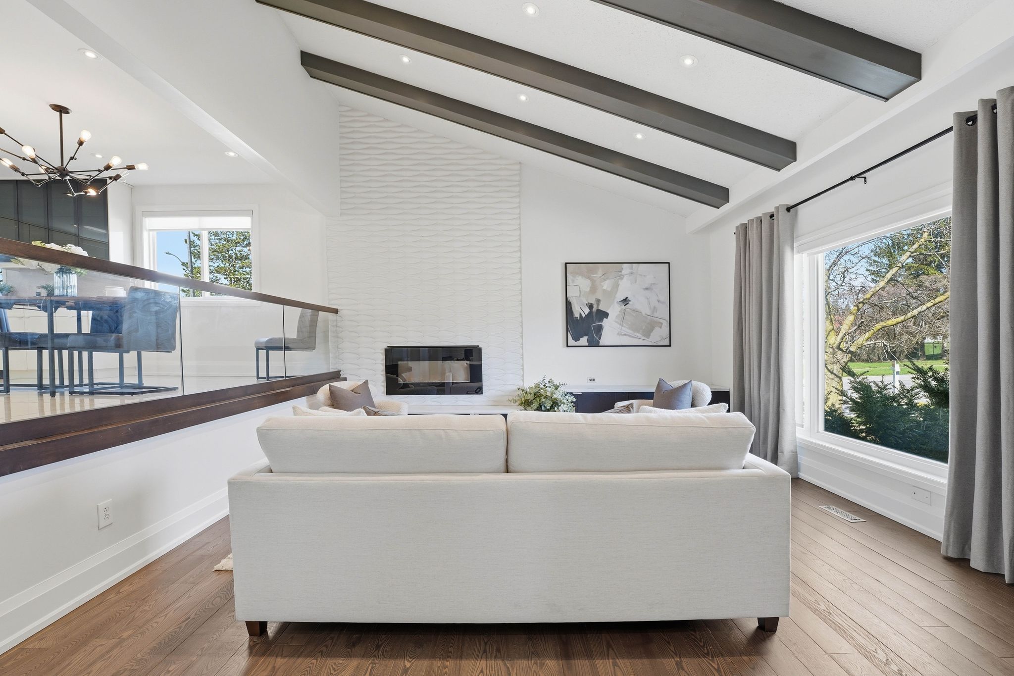 • Bright main floor with cathedral ceilings and hardwood flooring.