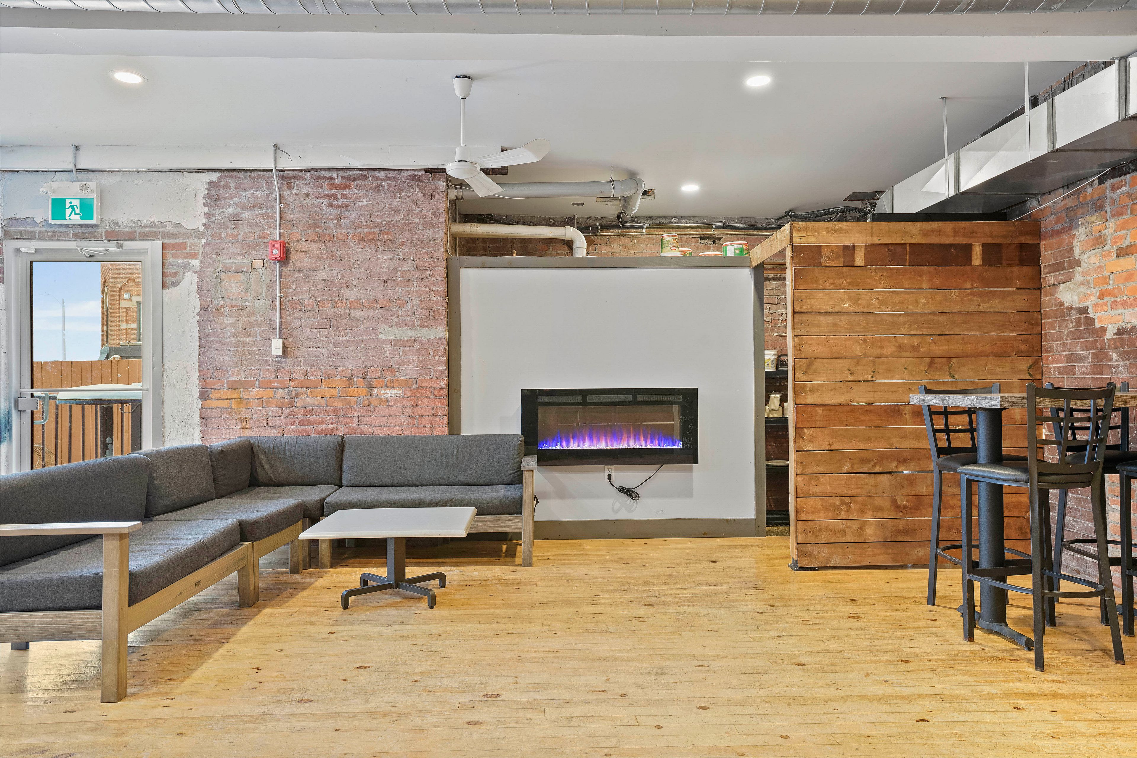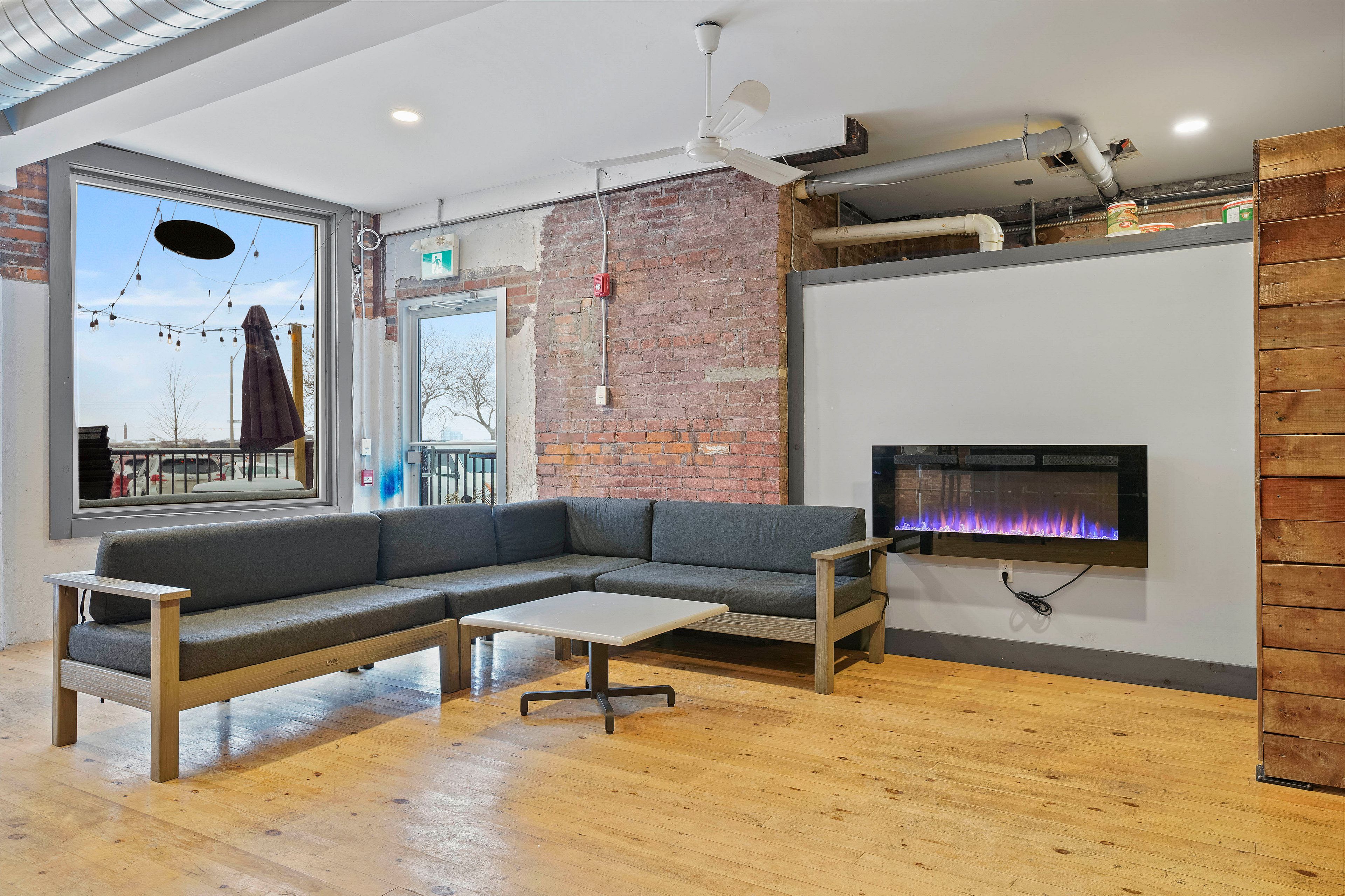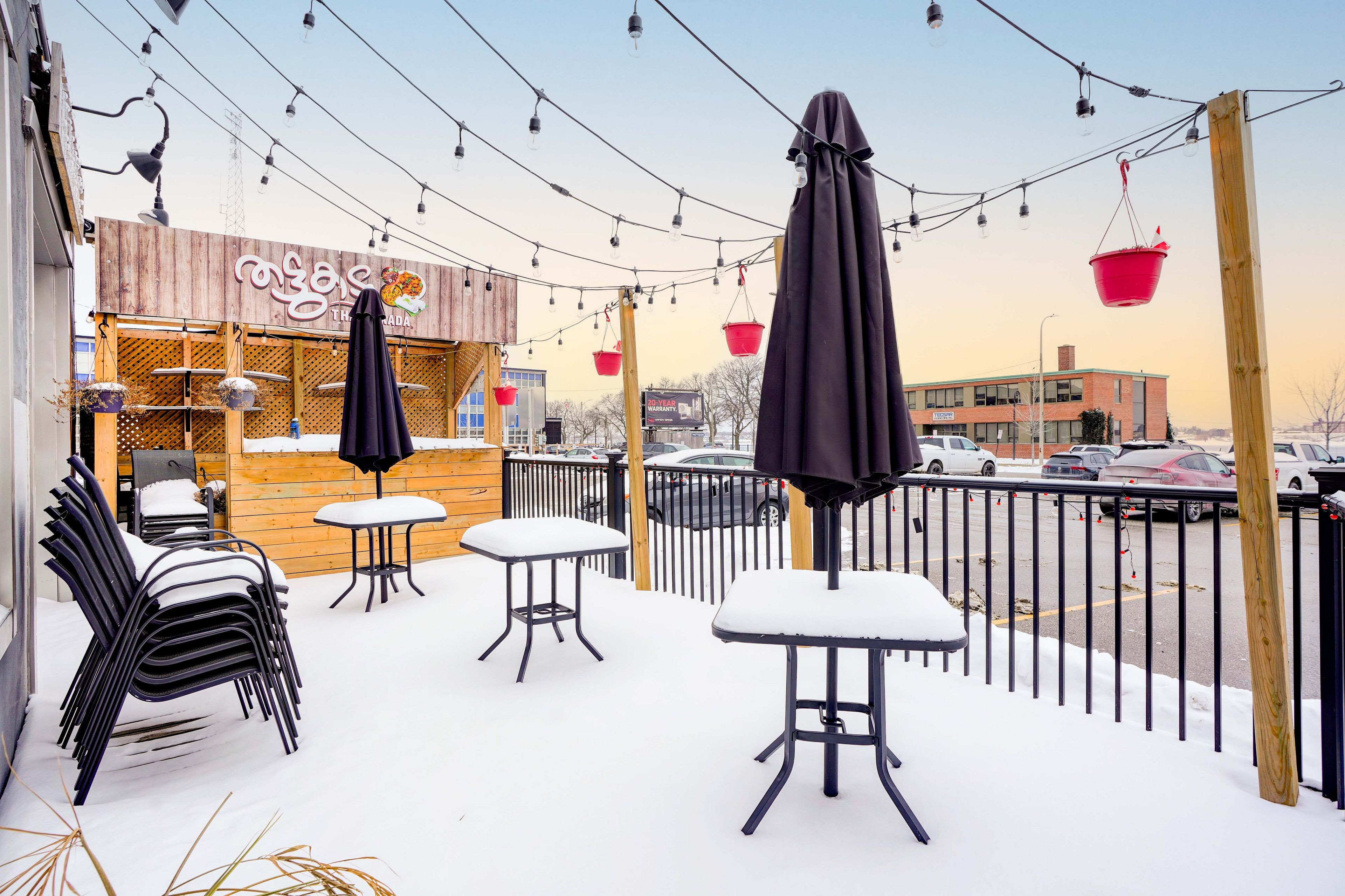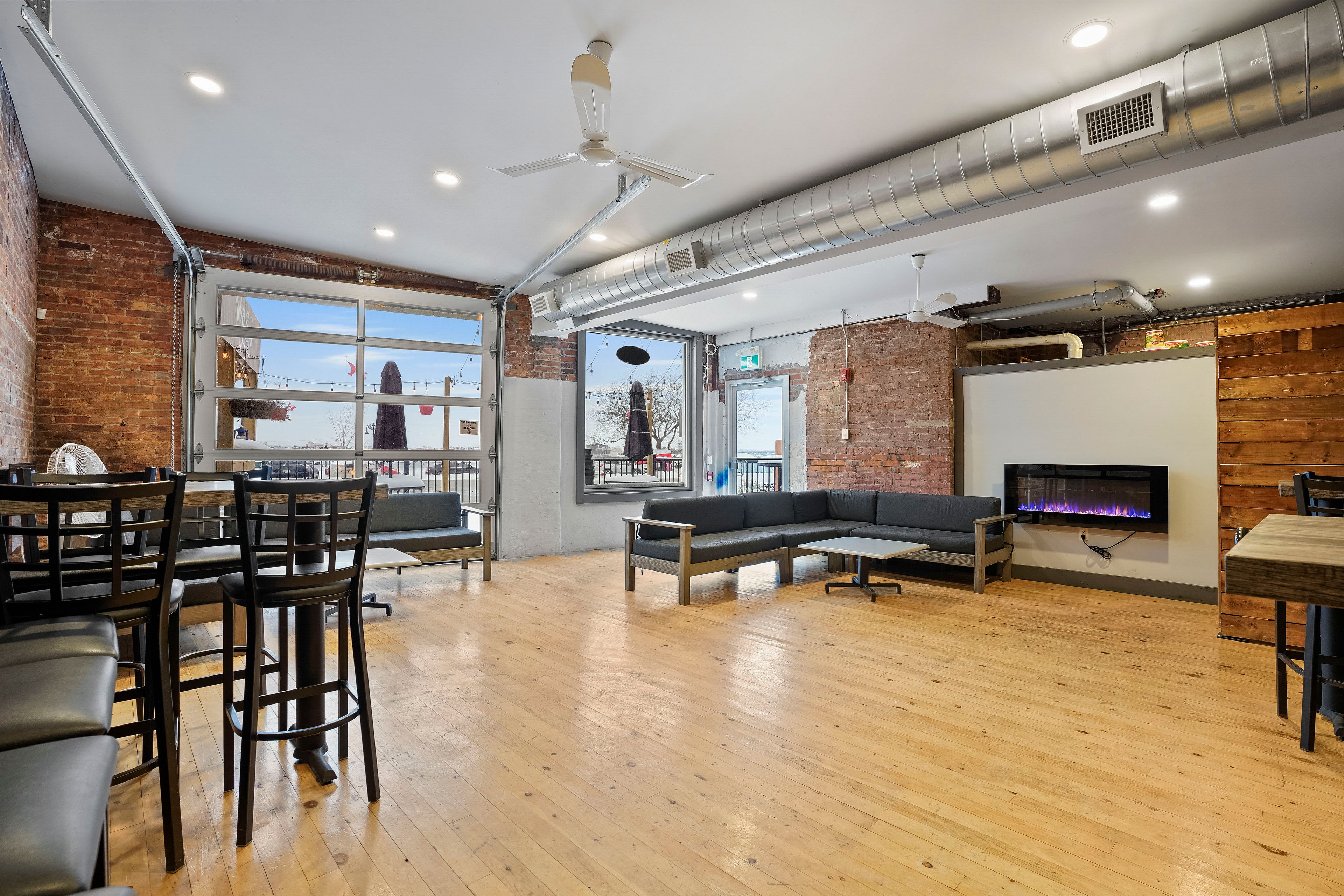 • Roll-up patio door for outdoor seating in warmer months.