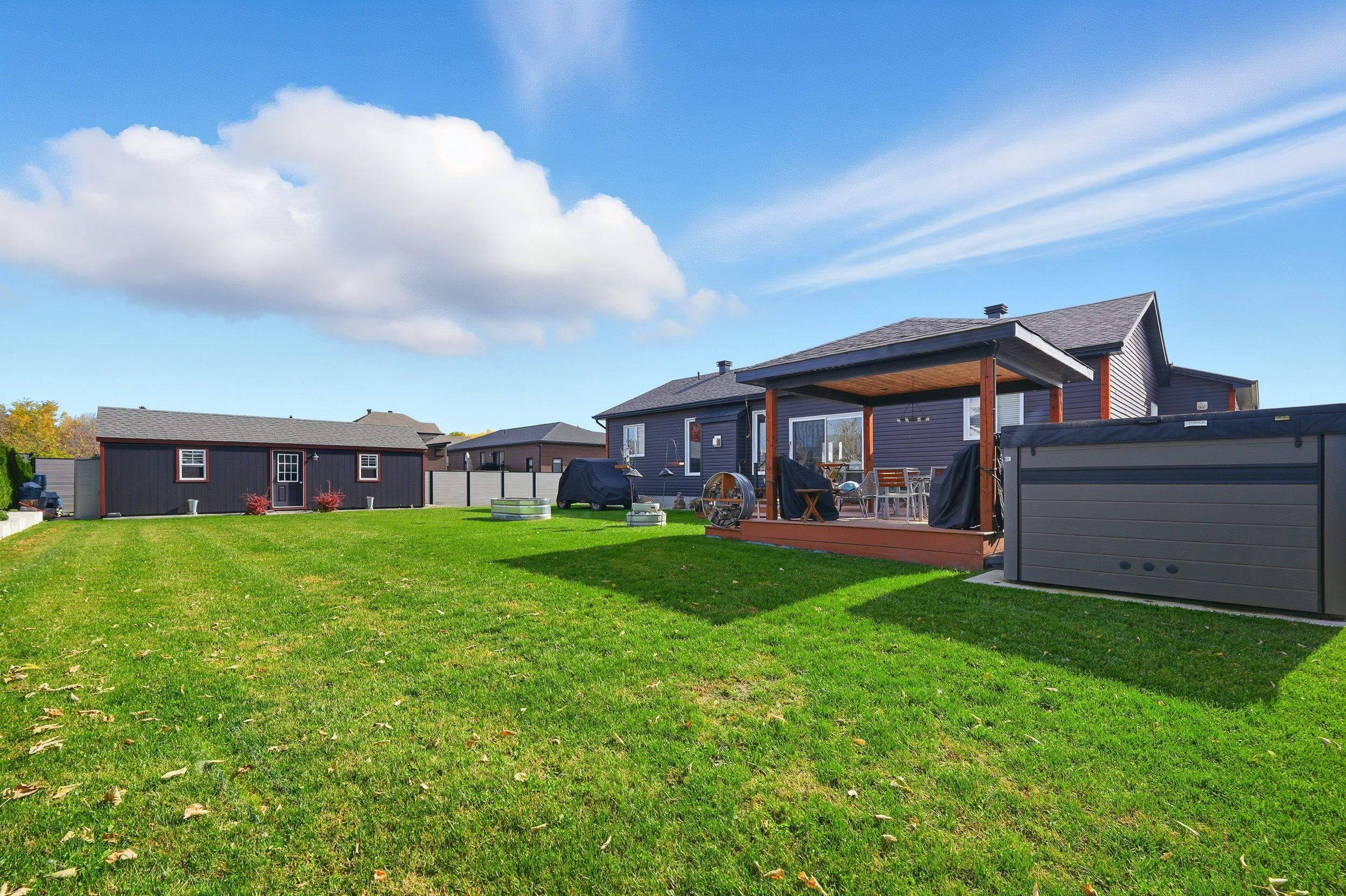 Welcome to 117 danika. This beautiful bungalow has it all, style and quality workmanship. Beautifully designed and decorated with loads of upgrades. Separate list is attached. On the main floor, you will find an open concept kitchen with white cabinets with grey quartz countertops, stainless steel backsplash, practical water tap located over the gas range adds a rare feature to the cooking area, dining and living areas with plenty of natural light with an 8ft patio door, gleaming hardwood floors, a natural gas fireplace to cozy up and relax, beautiful neutral colors to suit all styles. 3 generous size bedrooms on the main floor + 1 large bedroom in the lower level. A spa style 4 pce ensuite, another 3 pce main bathroom on the main floor plus a 2 pce bathroom in the lower level. Fully finished lower level includes a very large rec room, a large workshop/utility room. The beauty of this home is the exterior, fully landscaped with custom timber framed privacy screen for additional privacy on each side of the home with matching solid timber on the garage & facade. Reddish lumber trim beams with quality stainless steel plates and carriage bowls, stylish custom built gazebo with pot lights, trees, stunning concrete front patio & steps, plus a large detached garage 30 ft x 12 ft on concrete foundation with hydro perfect for the hobbyist in the family, added window wells,. Exterior plug-in ready for future generator which includes a mini shed for the generator. With over $150,000 in upgrades (laneway paved, wood floor on main level, concrete front patio, concrete curbed mow strip, gazebo, added 4th garage, backyard underground draining piping with downspouts connected, concrete block retaining wall, and the list goes on. This makes this home one of a kind that you won't want to miss. Complete list of renos available upon request. No front neighbours (wooded view & pond).