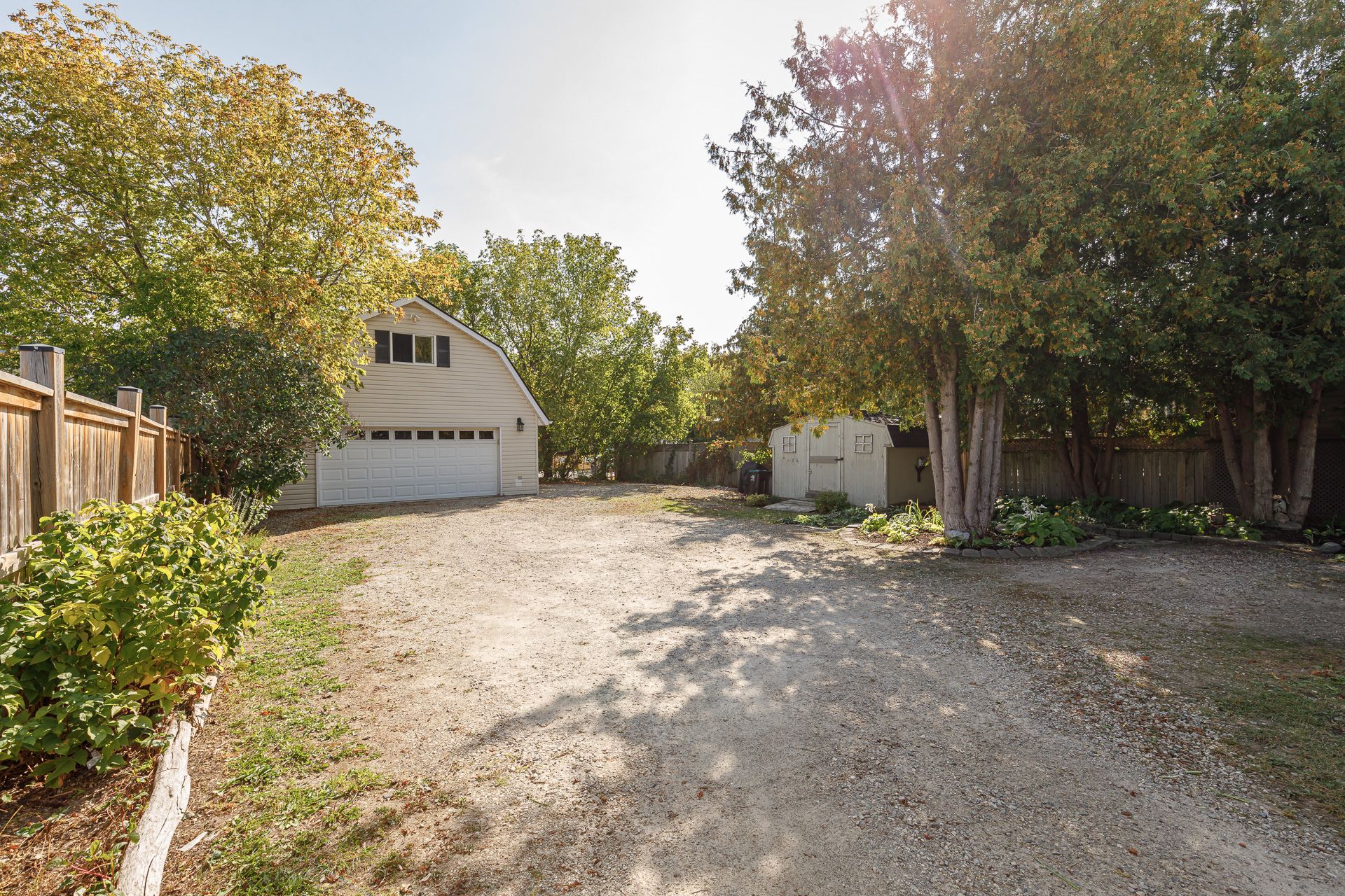 • Large detached garage with loft offers storage and future development potential.