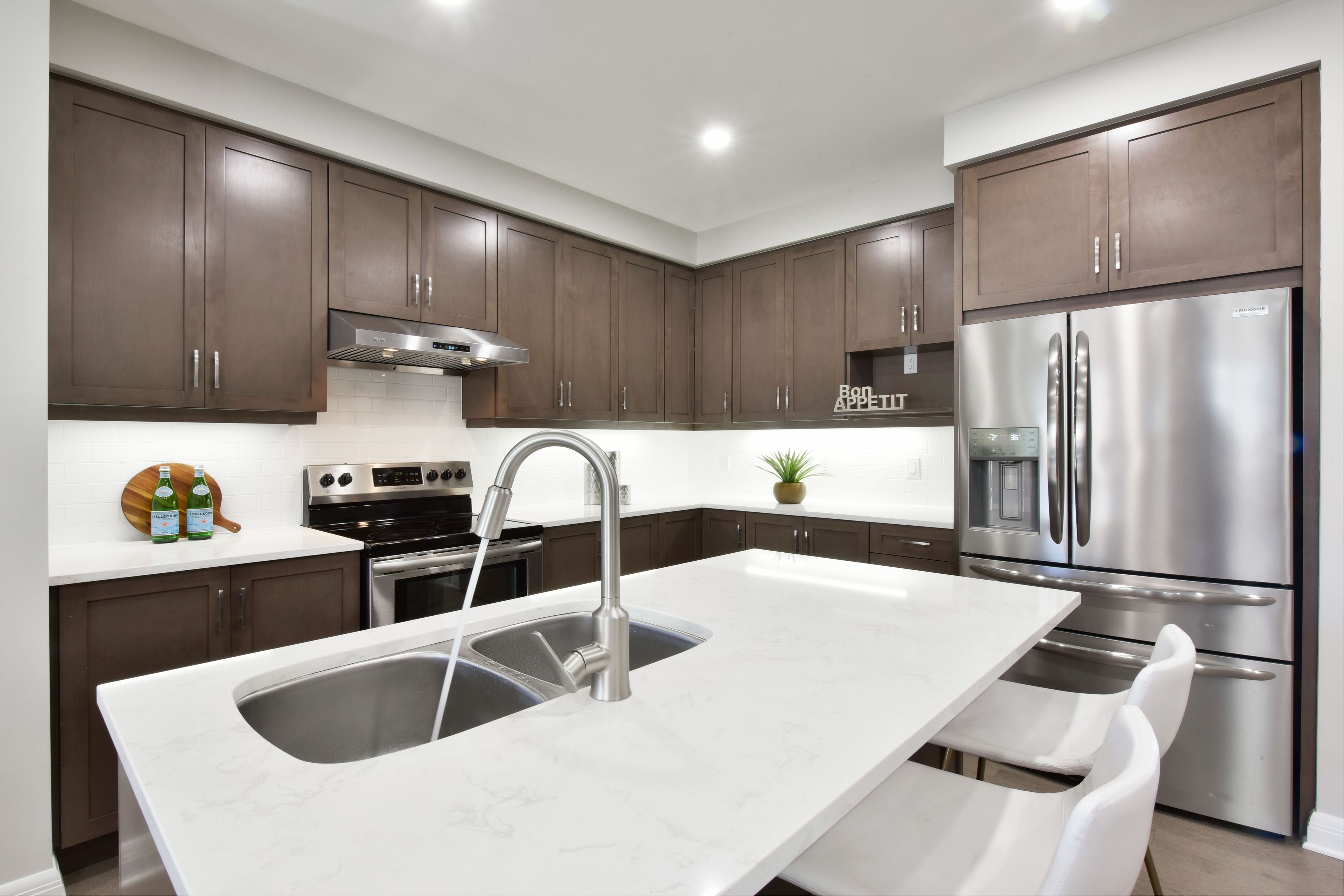 Built in 2018 by uniform, a stylish townhome perfectly situated in the desirable richardson ridge community of kanata lakes. Offering over 30 pot lights and over 2000 sq. Ft. Living space including the finished basement, this bright and spacious home boasts smooth ceilings on all levels. Main floor features modern open concept layout with 9 feet ceilings, an expansive great room with hardwood flooring and a elegant fireplace, a chef kitchen with stainless steel appliances, stylish cabinetry with soft-close doors, high-end quartz countertops and more. The u-shaped staircase with landings not only enhances safety and comfort but also elevatesthe homes architectural appeal. On 2nd level, large master bedroom with walk-in closet & luxurious ensuite with upgraded quartz countertops and glass shower. Two additional well-sized bedrooms, a full bath also with upgraded quartz countertops and a convenient laundry room complete the upper. The finished basement offers plenty of space for family fun, a rough-in for future bath and generous storage, while the private fully fenced backyard provides the perfect outdoor retreat for relaxation and entertaining. Just minutes to trails/parks, kanata centrum, tanger outlets, costco & hwy 417 and top ranked schools. With its modern upgrades, fully fenced backyard and prime location, this home offers not just a place to live, but a lifestyle to enjoy. 10+!