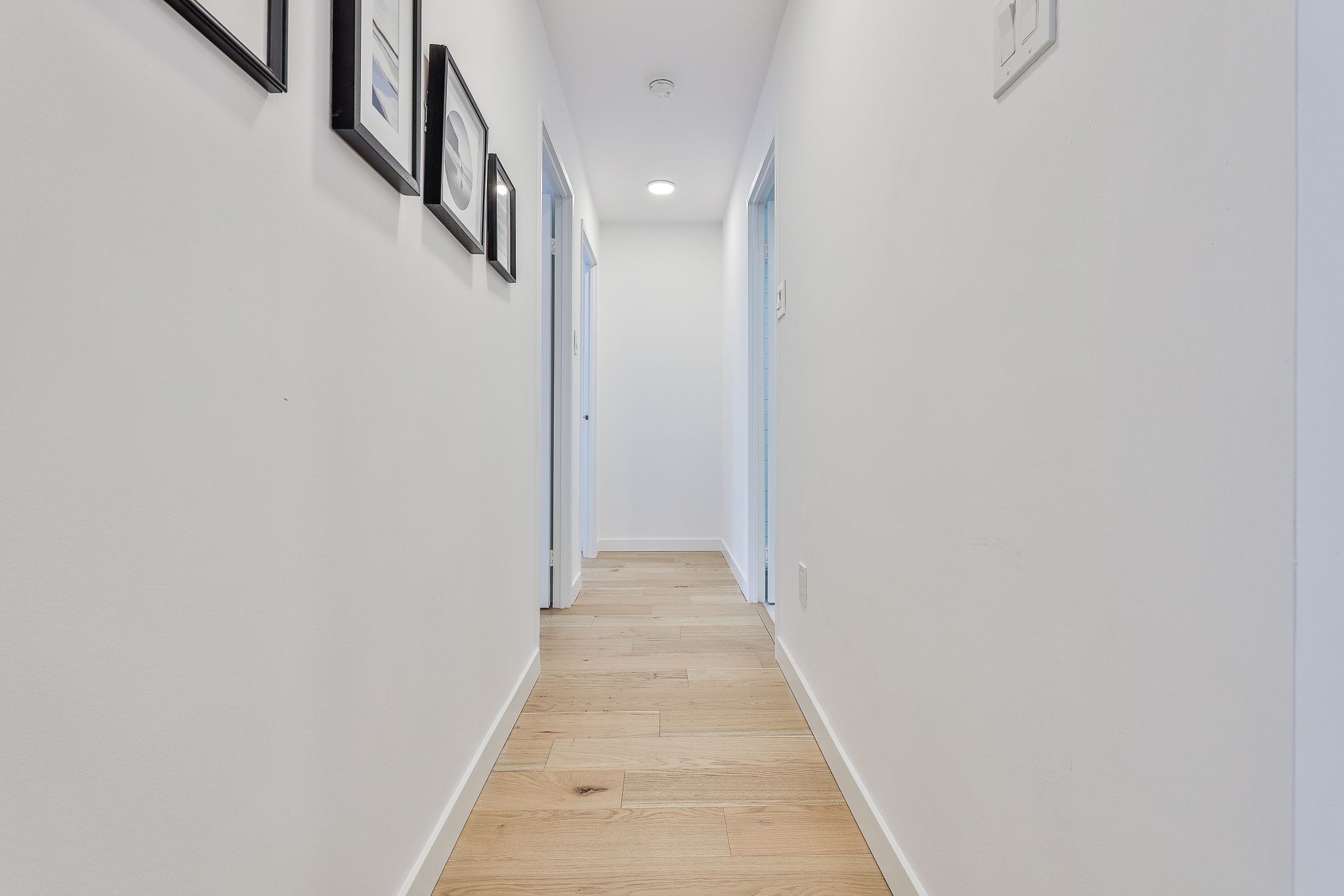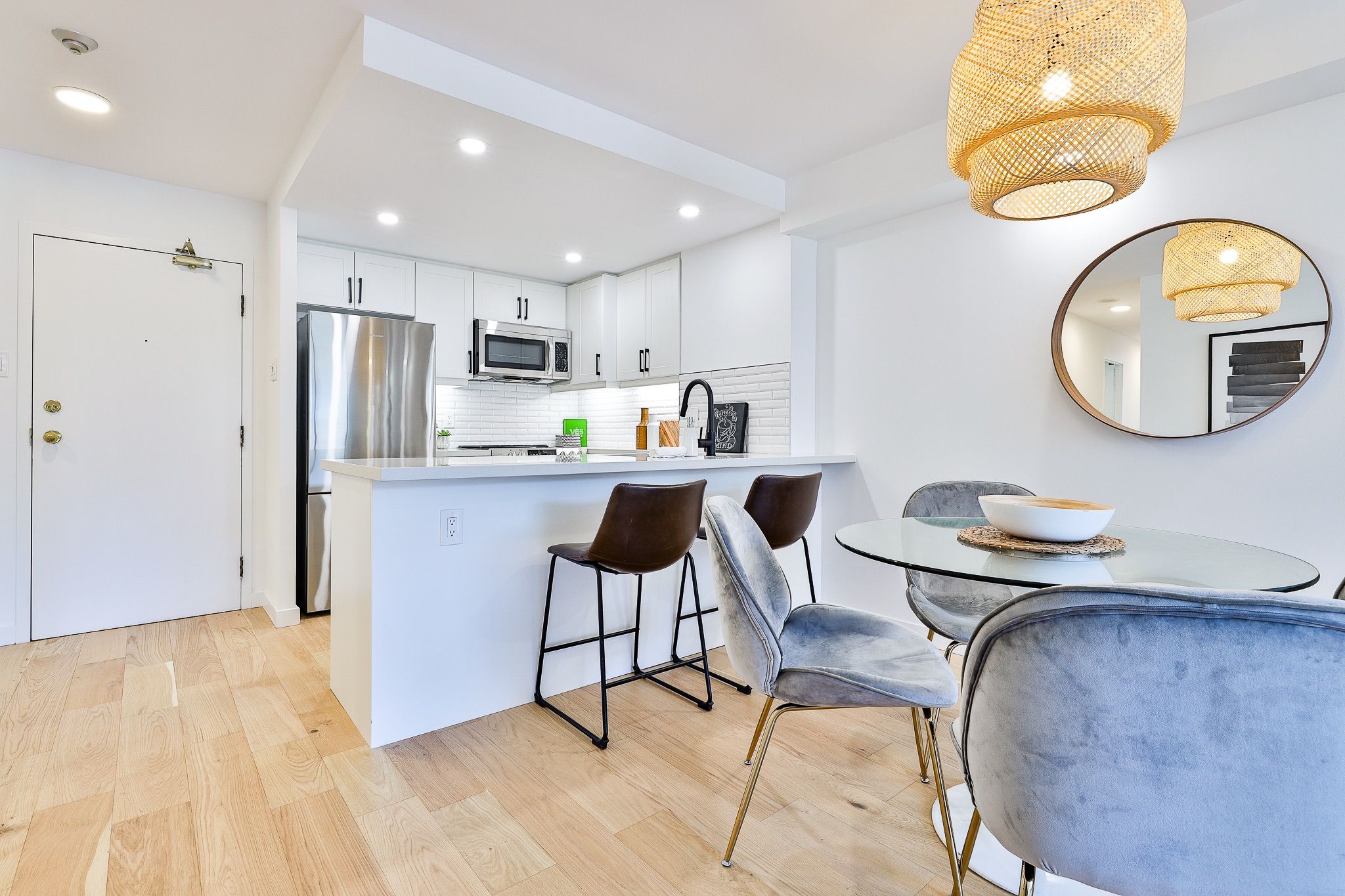 • Bright, open-concept living and dining area with hardwood floors throughout.