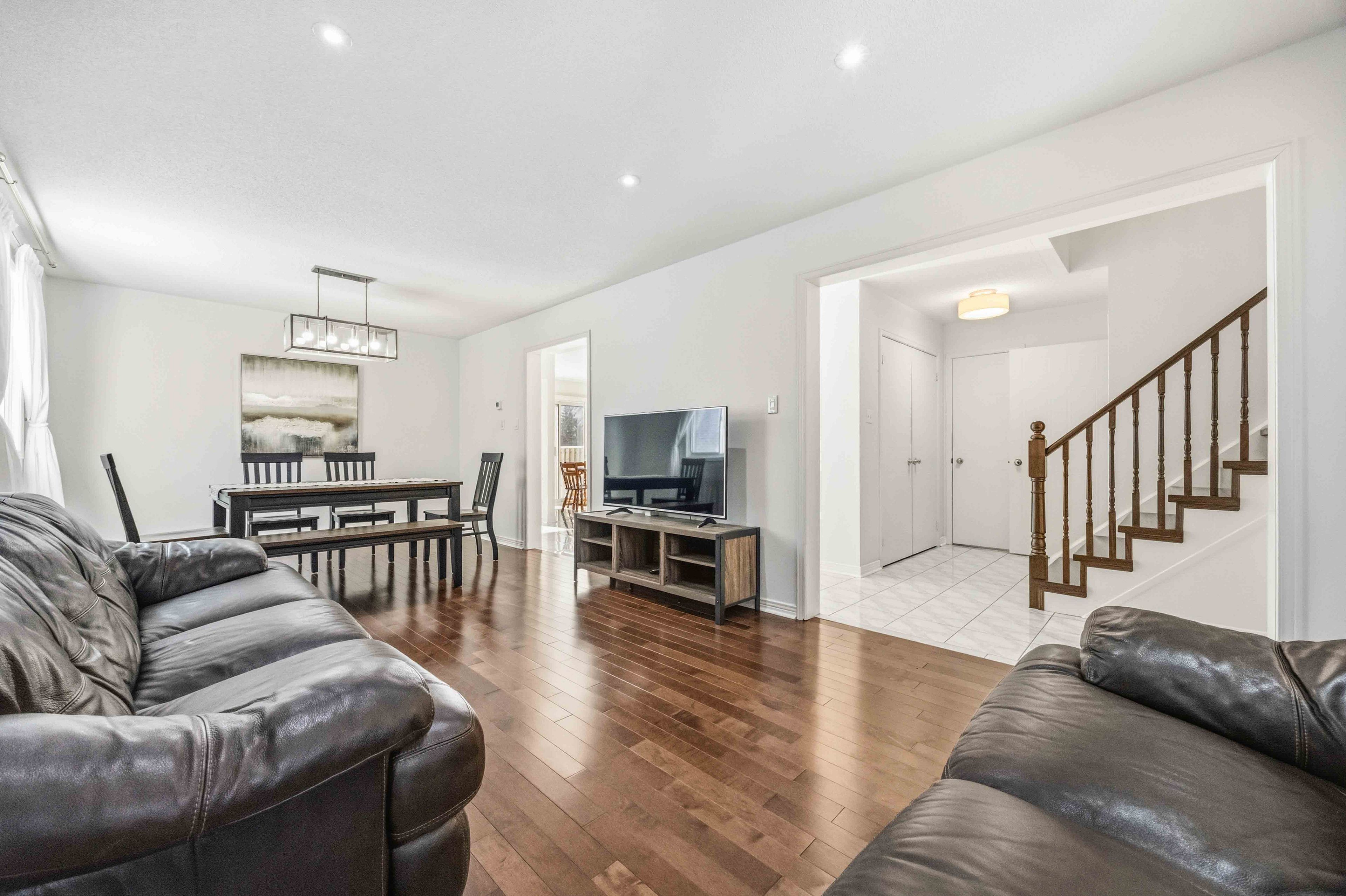 • Stylish hardwood flooring throughout the main levels for a cohesive look.