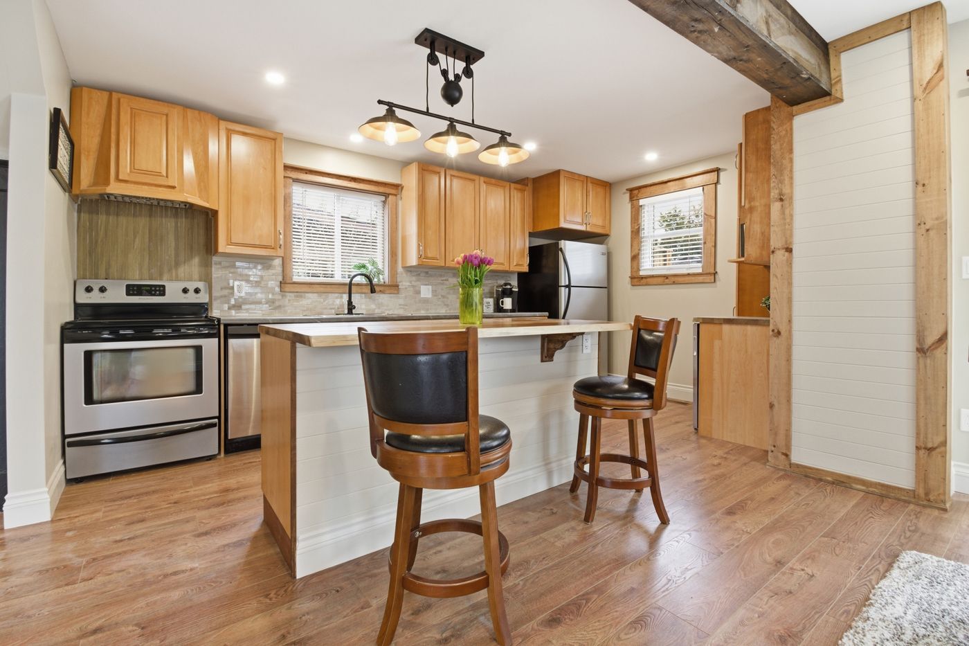 • Three bedrooms with a newly finished bathroom and laundry upstairs.