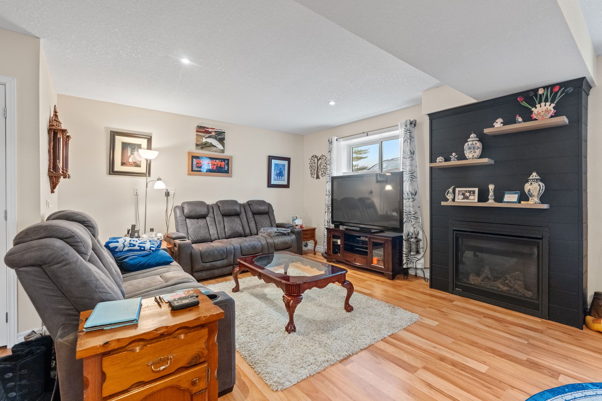 • Lower level includes an in-law suite with kitchenette and cozy fireplace.
