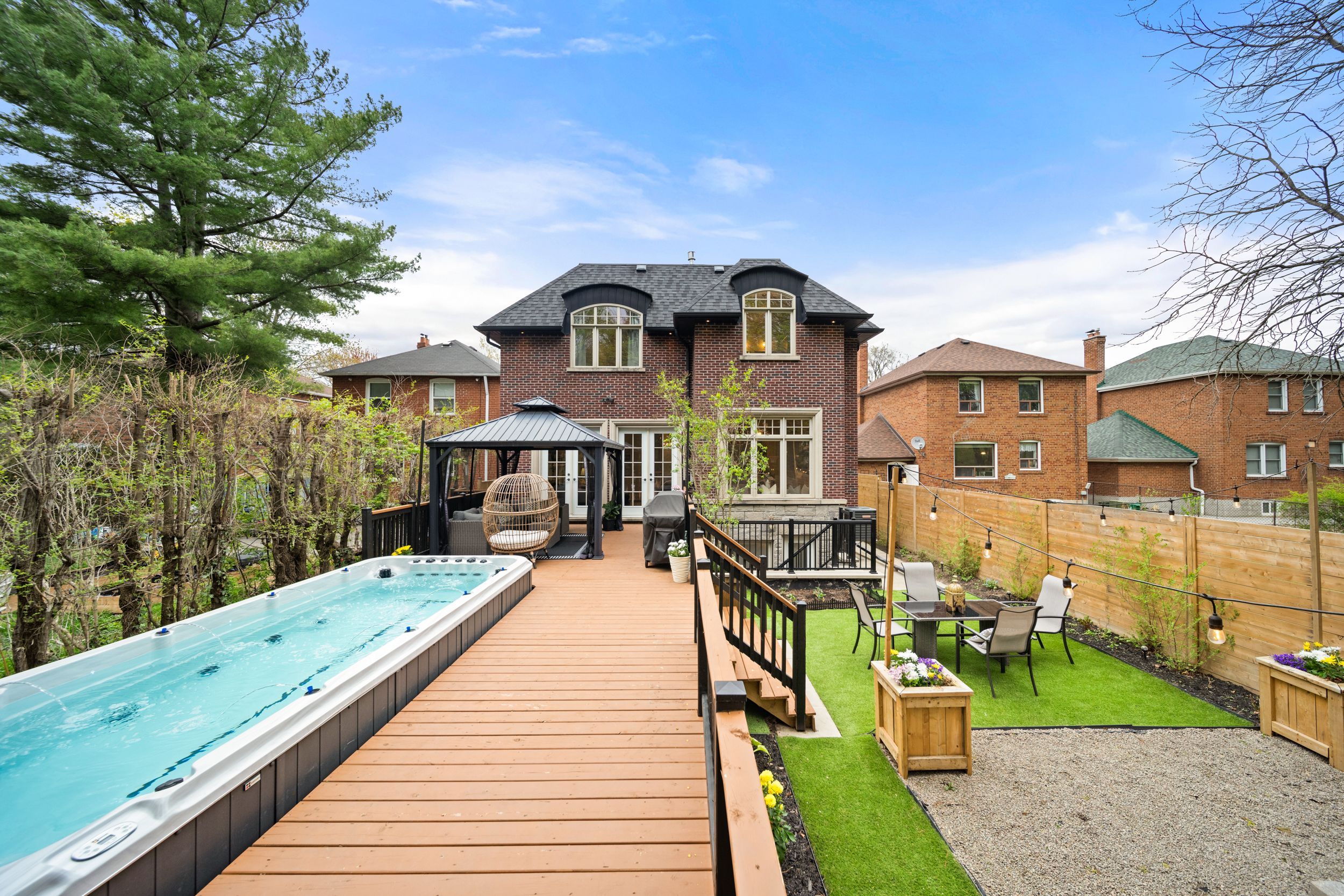 Welcome to 117 parkview hill crescent in prestigious parkview hills! This beautifully & meticulously maintained custom home features luxury finishes & a thoughtful 4,000+ sqft layout. Situated on a deep lot in a quiet, family-friendly neighbourhood, enjoy exceptional living across 3 levels. Main level - 10-ft ceilings, tons of pot lights, & high-end finishes. The grand foyer has double hallway closet, & takes you into a sunlit home office with coffered ceiling & hardwood floors. The formal dining room leads to a full butlers pantry featuring granite counters & floor-to-ceiling cabinetry. The chefs kitchen with oversized granite island, state of the art ss appliances, dedicated coffee station & breakfast area overlooking the yard with built-in bench seating - is perfect for any family. The living room is inviting & calm - coffered ceiling, fireplace, built-in cabinetry, breathtaking wall of 4 tall french doors connecting indoor/outdoor living to a oasis & natural light. A hardwood staircase with skylight and large window brings you to the second floor with 9-ft ceilings, 4 spacious bedrooms & 3 baths. The primary is a retreat with vaulted ceilings, pot lights, gas fireplace, walk-in closet & double closets + luxurious 5-piece ensuite with floating tub, glass shower, chandelier, and dual sinks. Two bedrooms with vaulted ceilings & large closets share a jack & jill 5-piece bathroom & the fourth bedroom with hardwood floors, double closet, has easy access to a 4-piece bath. Convenient 2nd level spacious laundry room has a window, sink & cabinetry. The lower level provides a 5th bedroom with closet and window, wet bar with sink & fridge & a 3-piece bathroom. A bonus legal 2-bed apartment is tucked away - separate entrance, full kitchen, laundry & 3-piece bath. The expansive yard has it all - large patio with tons of seating, 18-ft swim spa, basketball court, fire pit & shed. Luxury, function, & income potential awaits you in one of east yorks most sought-after pockets!