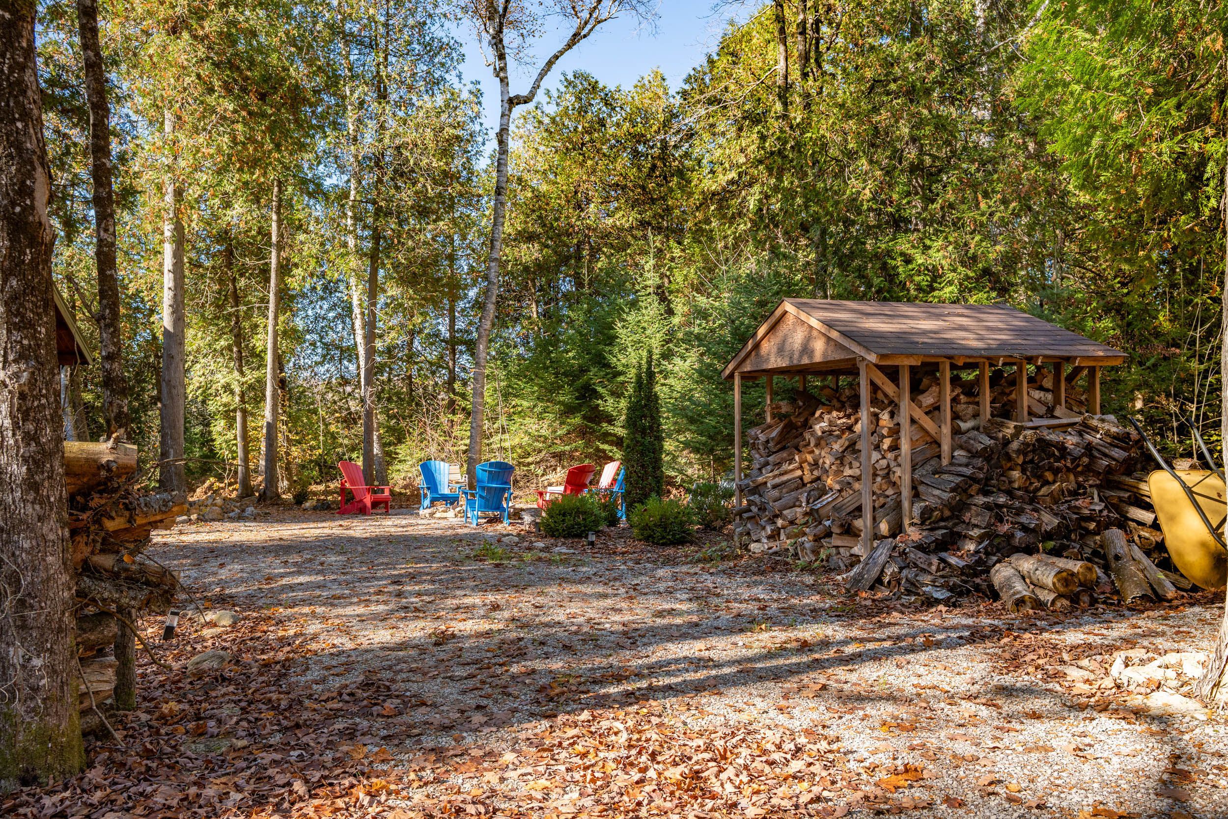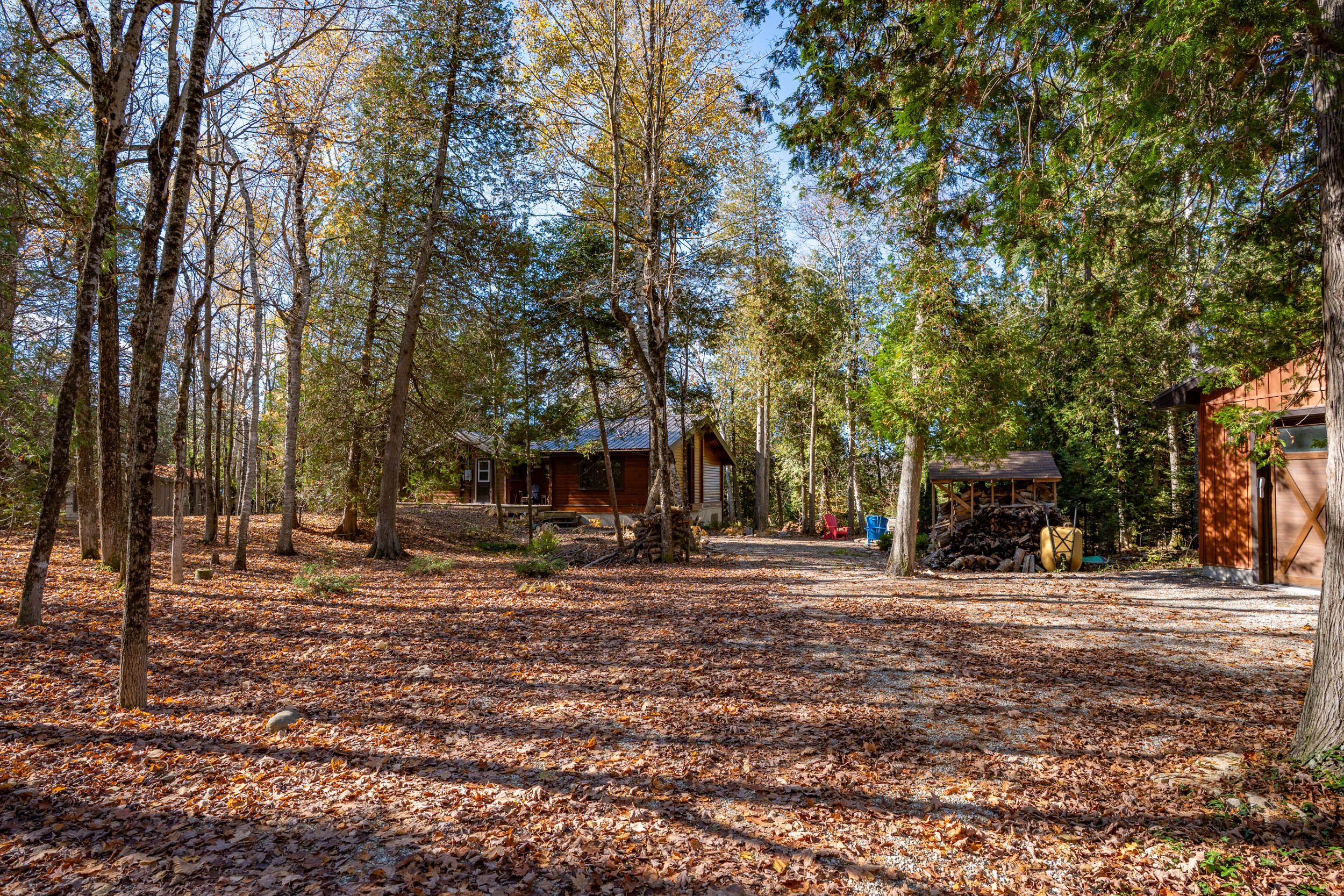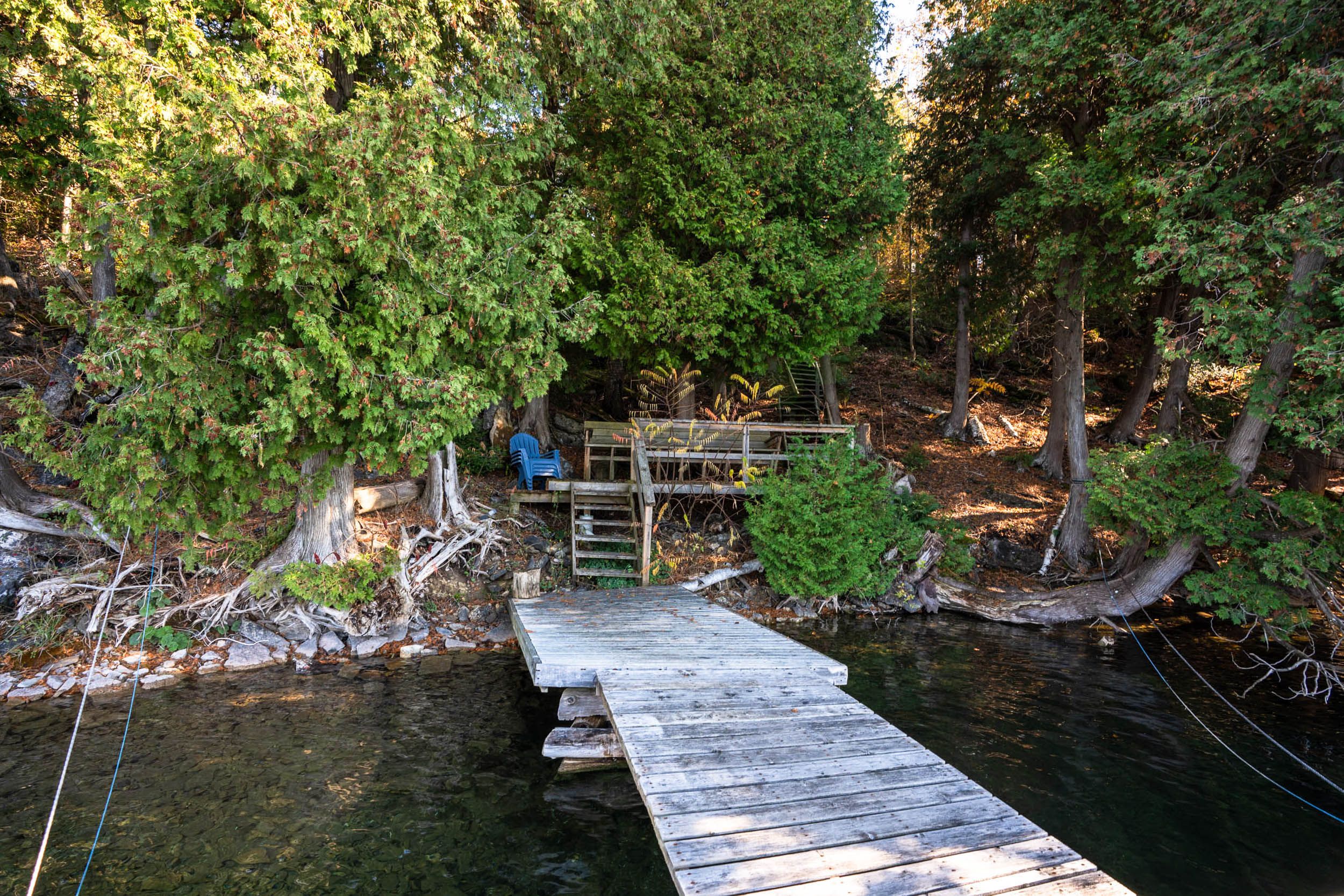 This isn't just a waterfront property-it's a once-in-a-generation escape on bass lake, boasting over 200 feet of pristine shoreline, dramatic natural rock formations, and a setting that feels truly untouched. Tucked on just over an acre, this one-of-a-kind retreat blends craftsmanship, comfort, and nature in a way that's almost impossible to replicate. The pan-abode home showcases timeless western red cedar and offers a turnkey layout with 3 bedrooms and 1 bathroom. Inside, you're welcomed by warm wood interiors, a cozy wood stove, and skylights that flood the space with natural light. The kitchen pairs rustic charm with modern touches, including quartz countertops, wood cabinetry, and bright, functional design. Two spacious bedrooms feature oversized closets and king-sized accommodations, while a flexible tv room can easily serve as a third bedroom. Step outside to a massive deck designed for entertaining, relaxing, and soaking in the peaceful surroundings. Thoughtful upgrades over the past decade-including an insulated metal roof, updated wiring, propane furnace, wooden windows, and a full backup generator ensuring comfort and peace of mind year-round. A standout feature is the 22' x 26' heated detached shop-an incredibly versatile space with ample room for vehicles, workshop projects, and all your waterfront gear. Whether you're storing boats and atvs, tackling hobbies year-round, or creating the ultimate workspace, this heated building adds both functionality and flexibility. Follow two private escarpment trails winding through striking rock formations down to the shoreline, where you'll find two docks and a beautifully positioned sitting area right at the water's edge-ideal for quiet mornings, swimming, and unforgettable days on the lake. Located just 15 minutes from owen sound, 30 minutes to sauble beach, and close to big bay and the bruce trail, this property offers the perfect balance of seclusion & accessibility. This is more than a cottage-it's a lifestyle.
