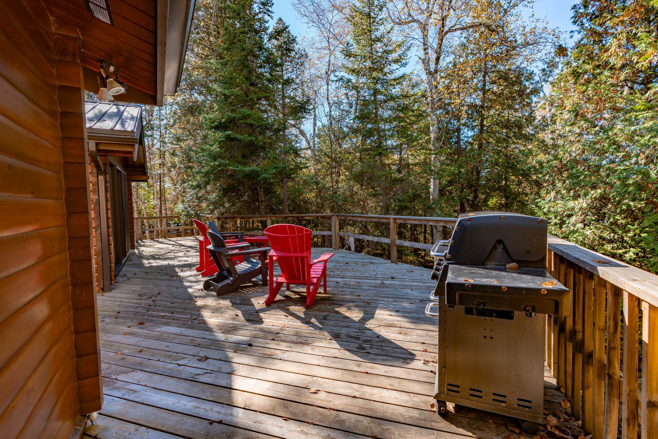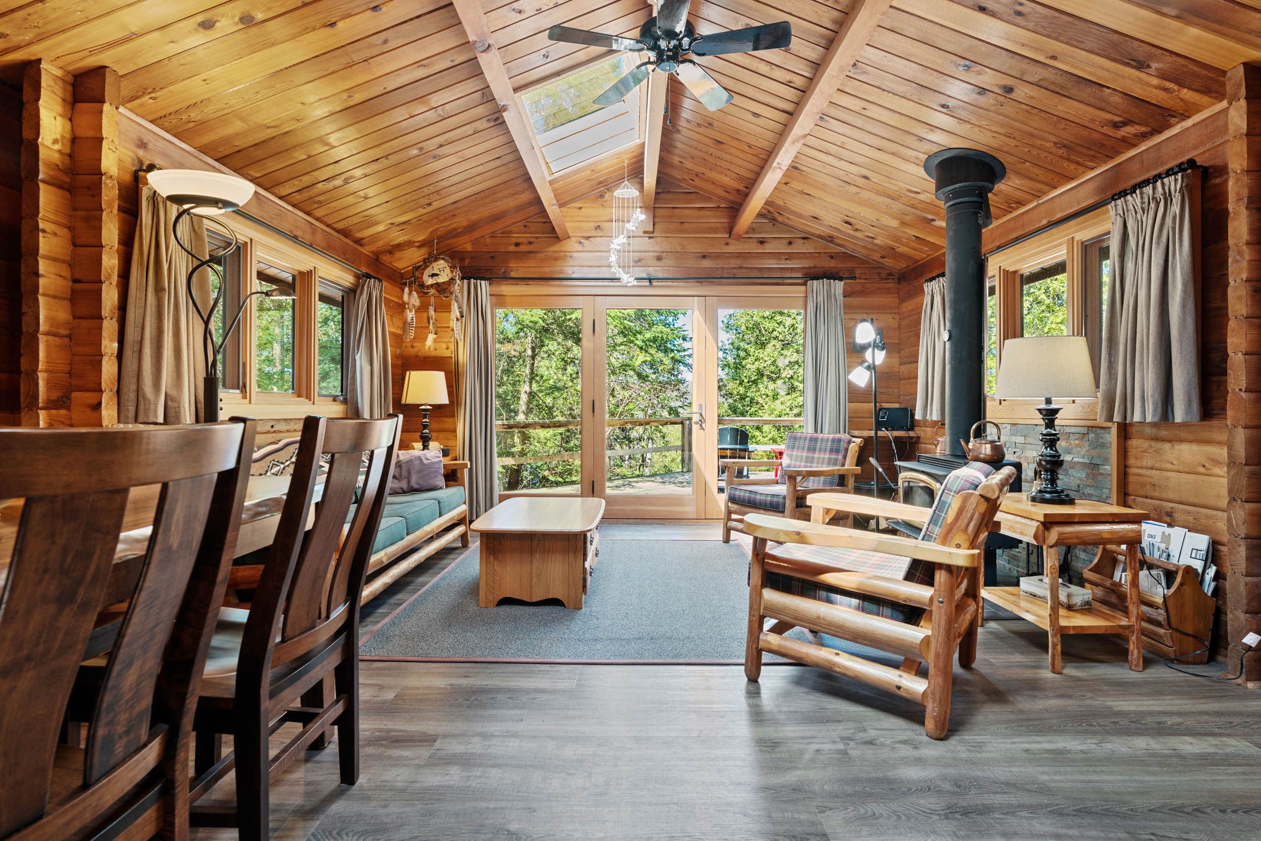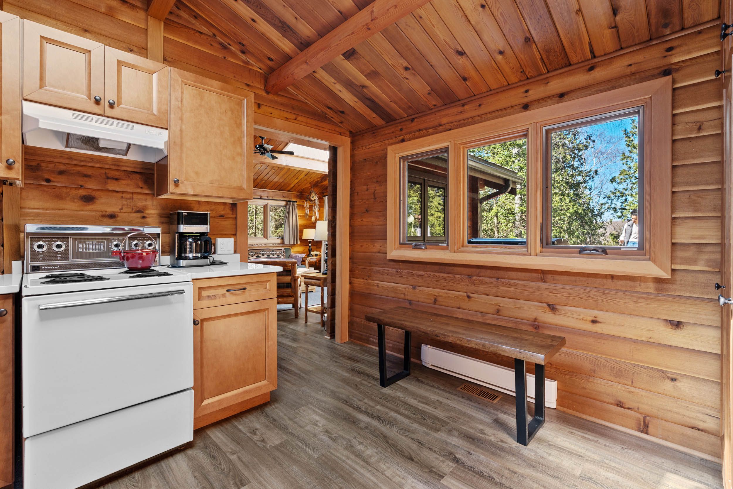 This isn't just a waterfront property-it's a once-in-a-generation escape on bass lake, boasting over 200 feet of pristine shoreline, dramatic natural rock formations, and a setting that feels truly untouched. Tucked on just over an acre, this one-of-a-kind retreat blends craftsmanship, comfort, and nature in a way that's almost impossible to replicate. The pan-abode home showcases timeless western red cedar and offers a turnkey layout with 3 bedrooms and 1 bathroom. Inside, you're welcomed by warm wood interiors, a cozy wood stove, and skylights that flood the space with natural light. The kitchen pairs rustic charm with modern touches, including quartz countertops, wood cabinetry, and bright, functional design. Two spacious bedrooms feature oversized closets and king-sized accommodations, while a flexible tv room can easily serve as a third bedroom. Step outside to a massive deck designed for entertaining, relaxing, and soaking in the peaceful surroundings. Thoughtful upgrades over the past decade-including an insulated metal roof, updated wiring, propane furnace, wooden windows, and a full backup generator ensuring comfort and peace of mind year-round. A standout feature is the 22' x 26' heated detached shop-an incredibly versatile space with ample room for vehicles, workshop projects, and all your waterfront gear. Whether you're storing boats and atvs, tackling hobbies year-round, or creating the ultimate workspace, this heated building adds both functionality and flexibility. Follow two private escarpment trails winding through striking rock formations down to the shoreline, where you'll find two docks and a beautifully positioned sitting area right at the water's edge-ideal for quiet mornings, swimming, and unforgettable days on the lake. Located just 15 minutes from owen sound, 30 minutes to sauble beach, and close to big bay and the bruce trail, this property offers the perfect balance of seclusion & accessibility. This is more than a cottage-it's a lifestyle.