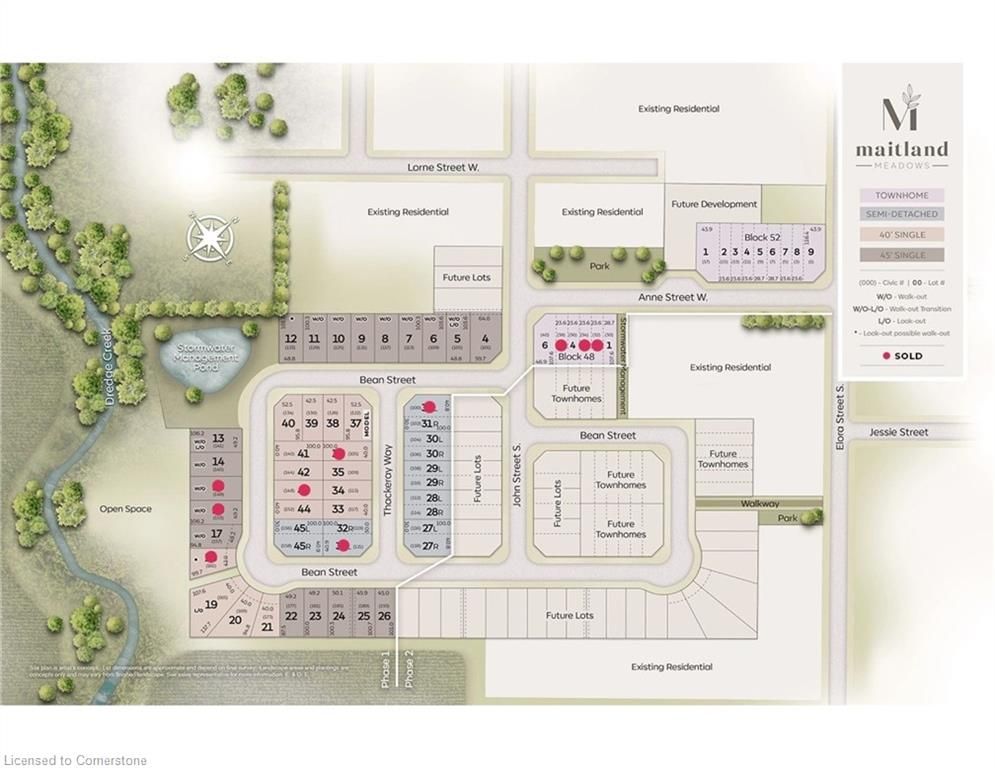 The crossroads model is for those looking to right size their home needs. A smaller bungalow with 2 bedrooms is a cozy and efficient home that offers a comfortable and single-level living experience for people of any age. Upon entering the home, you'll step into a welcoming foyer with a 9' ceiling height. The entryway includes a coat closet and a space for an entry table to welcome guests. Just off the entry is the first of 2 bedrooms. This bedroom can function for a child or as a home office, den, or guest room. The family bath is just around the corner past the main floor laundry closet. The central living space of the bungalow is designed for comfort and convenience. An open-concept layout combines the living room, dining area, and kitchen to create an inviting atmosphere for intimate family meals and gatherings. The primary bedroom is larger with views of the backyard and includes a good-sized walk-in closet, linen storage, and an ensuite bathroom for added privacy and comfort. The basement is roughed in for a future bath and awaits your optional finishing. Bonus: central air conditioning, asphalt paved driveway, garage door opener, holiday receptacle, perennial garden and walkway, sodded yards, egress window in basement, breakfast bar overhang, stone countertops in kitchen and baths, upgraded kitchen cabinets and more... Pick your own lot, floor plan, and colours with finoro homes at maitland meadows. Ask for a full list of incredible features! Several plans and lots to choose from additional builder incentives available for a limited time only! Please note: renderings are artists concept only and may not be exactly as shown. Exterior front porch posts included are full timber.