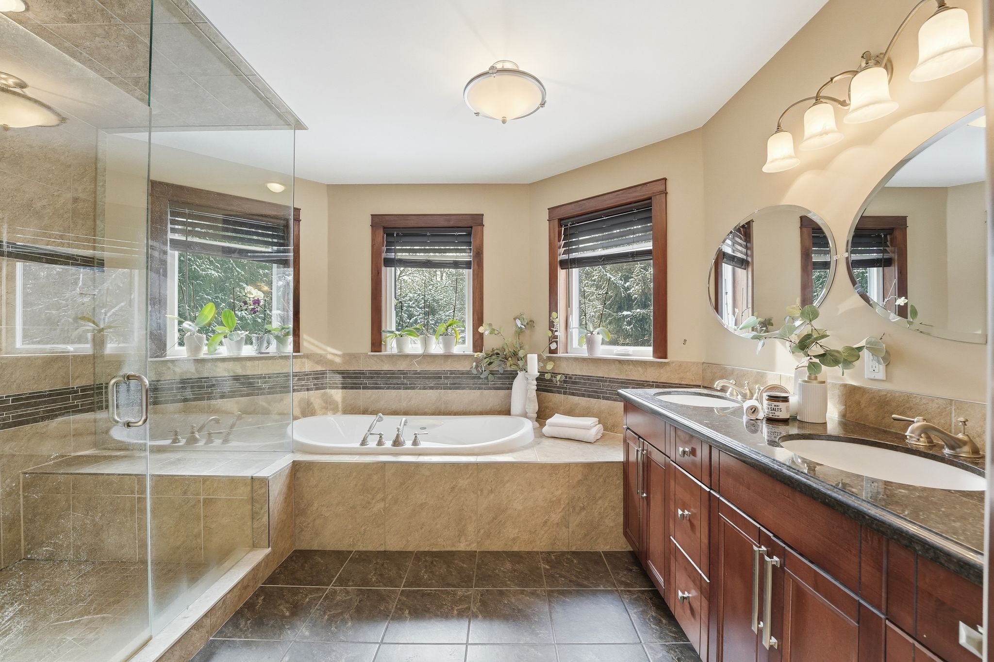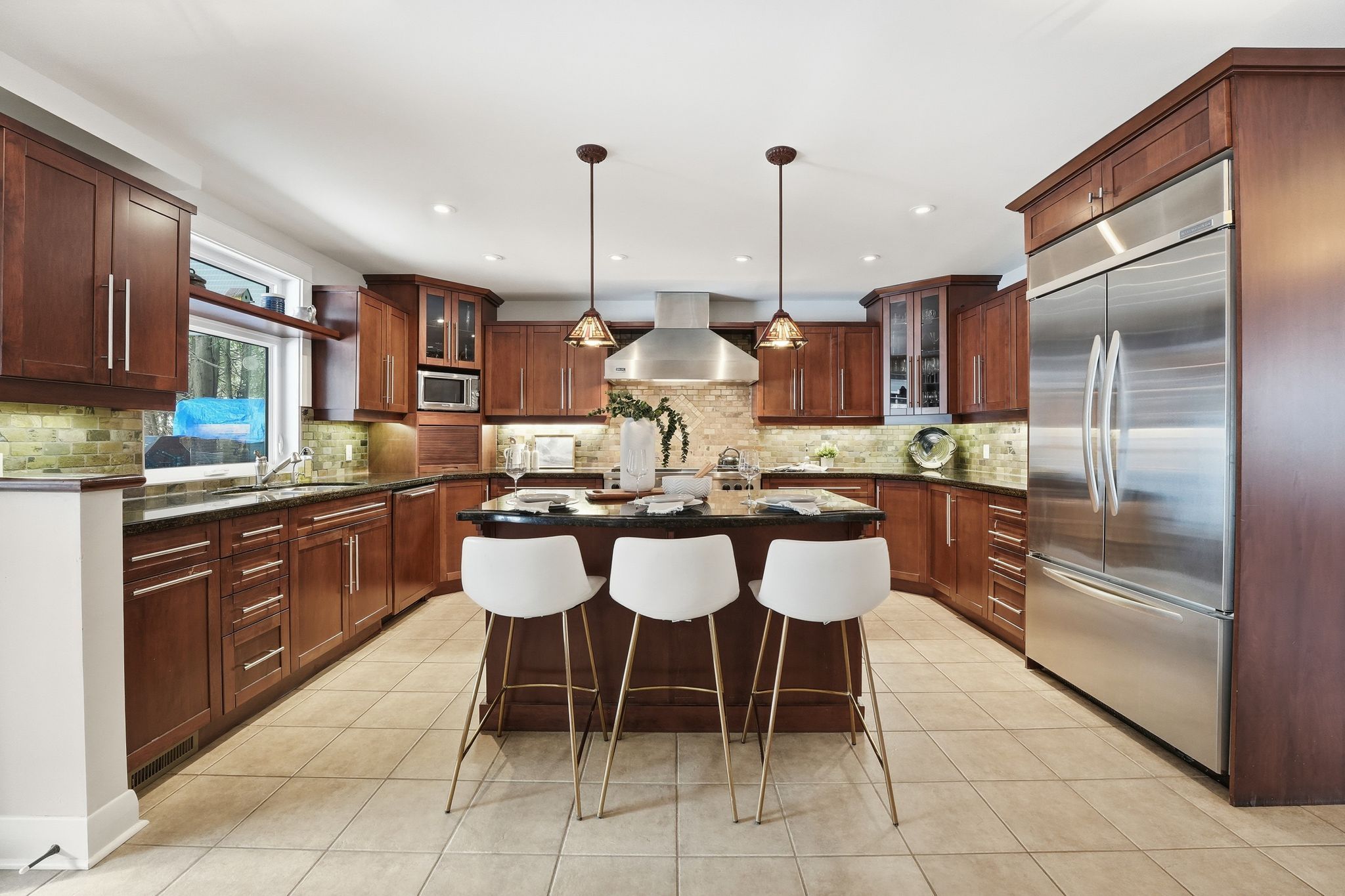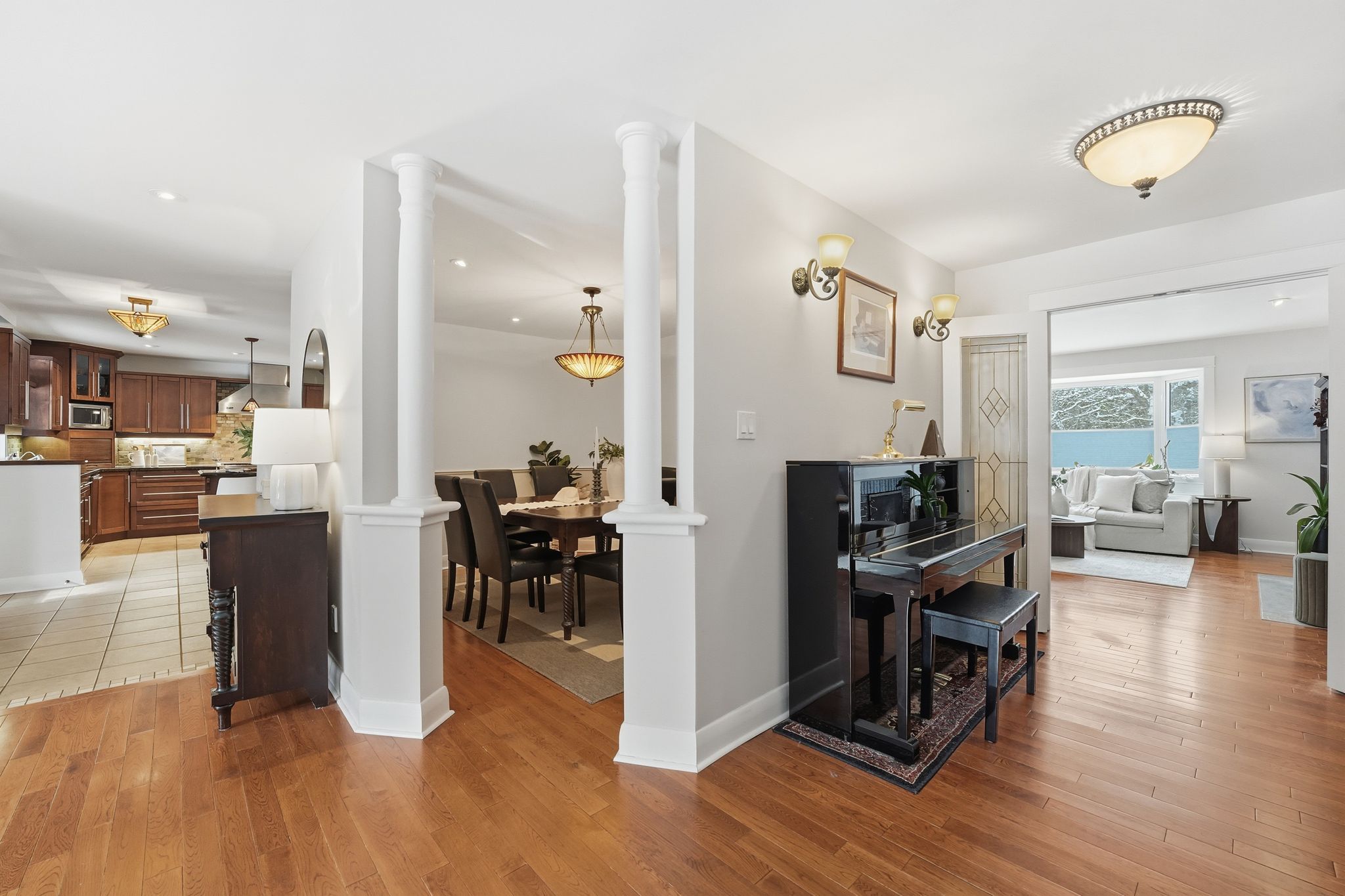 Welcome to exceptional family living on tyler street. This 4+1 bedroom, 4 bathroom home showcases a well-thought-out design that blends elegant finishes with highly functional living spaces and a private resort-style backyard. The main floor features a stunning chef's kitchen with heated tile floors, granite countertops, maple cabinetry, centre island with seating and wine storage, and premium appliances including a wolf gas range. Walk out directly to the covered deck with glass railings for effortless indoor-outdoor living. Hardwood floors, formal living and dining rooms, a cozy family room with gas fireplace and main-floor bedroom provide flexibility for modern family life. Upstairs, the primary suite offers a sitting area with double-sided fireplace, two walk-in closets, and a spa-like 5-piece ensuite with heated floors. Two additional bedrooms, upper-level laundry, and another heated-floor bathroom complete the level. The finished basement includes a rec room with built-ins and fireplace, fifth bedroom, and a 4-piece bath with steam shower. Outside, enjoy a fully fenced backyard oasis with saltwater inground pool, rock waterfall and diving rock, landscaped seating areas, covered deck, gazebo, mature gardens, and lush lawn. Don't miss the opportunity to own this exceptional family home, ideally located close to all that aurora has to offer, including summerhill market, aurora town square, the aurora go station, and highly regarded local schools.