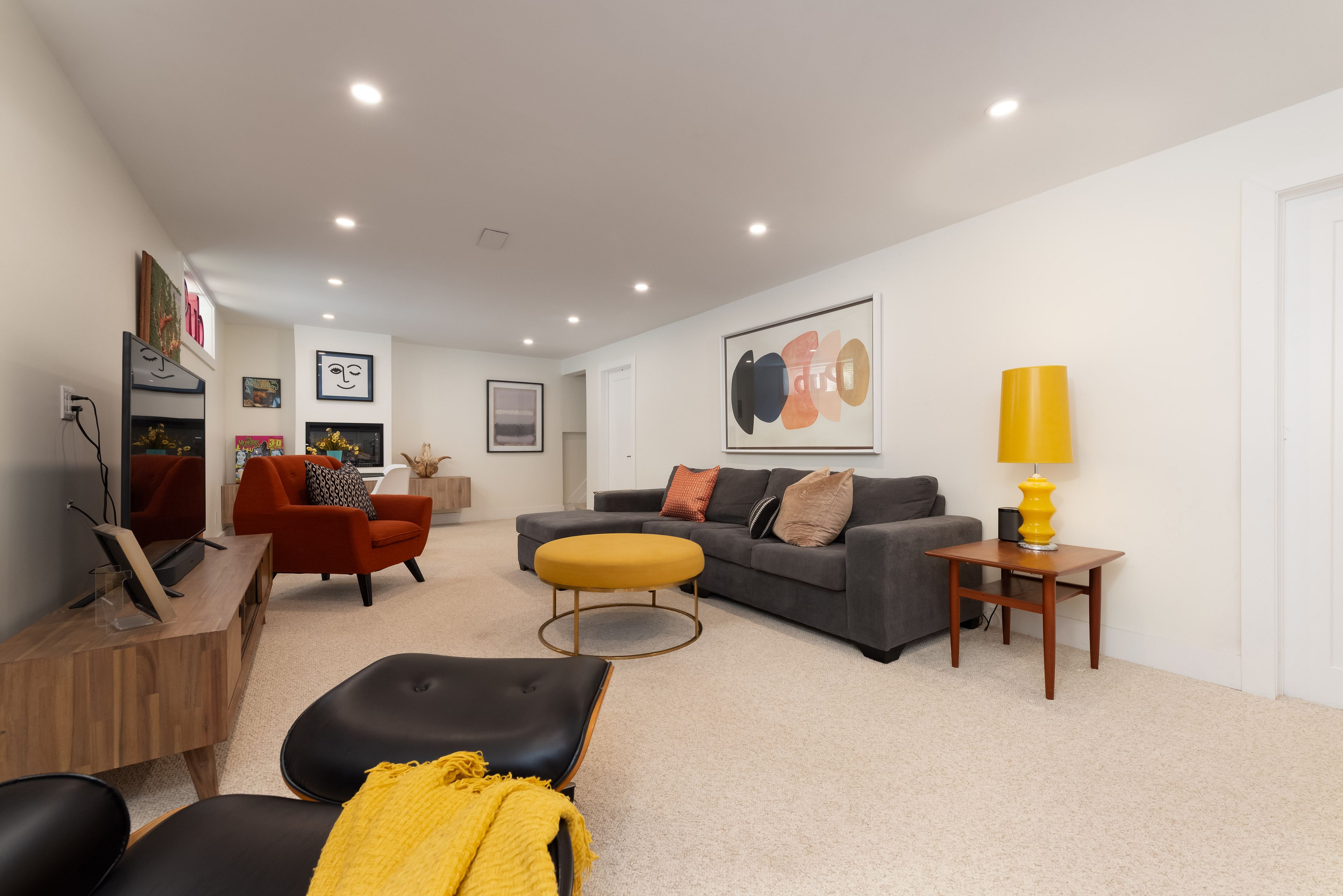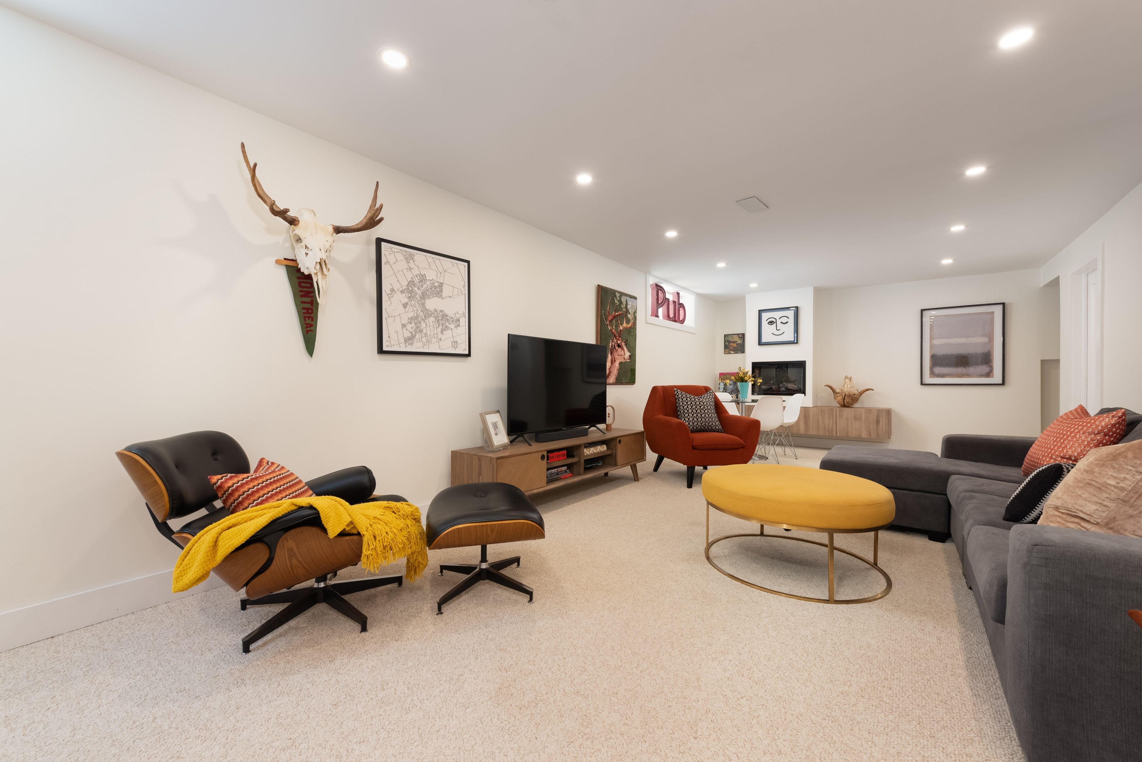 • Fully finished lower level adds extra space with a rec room and bedroom.