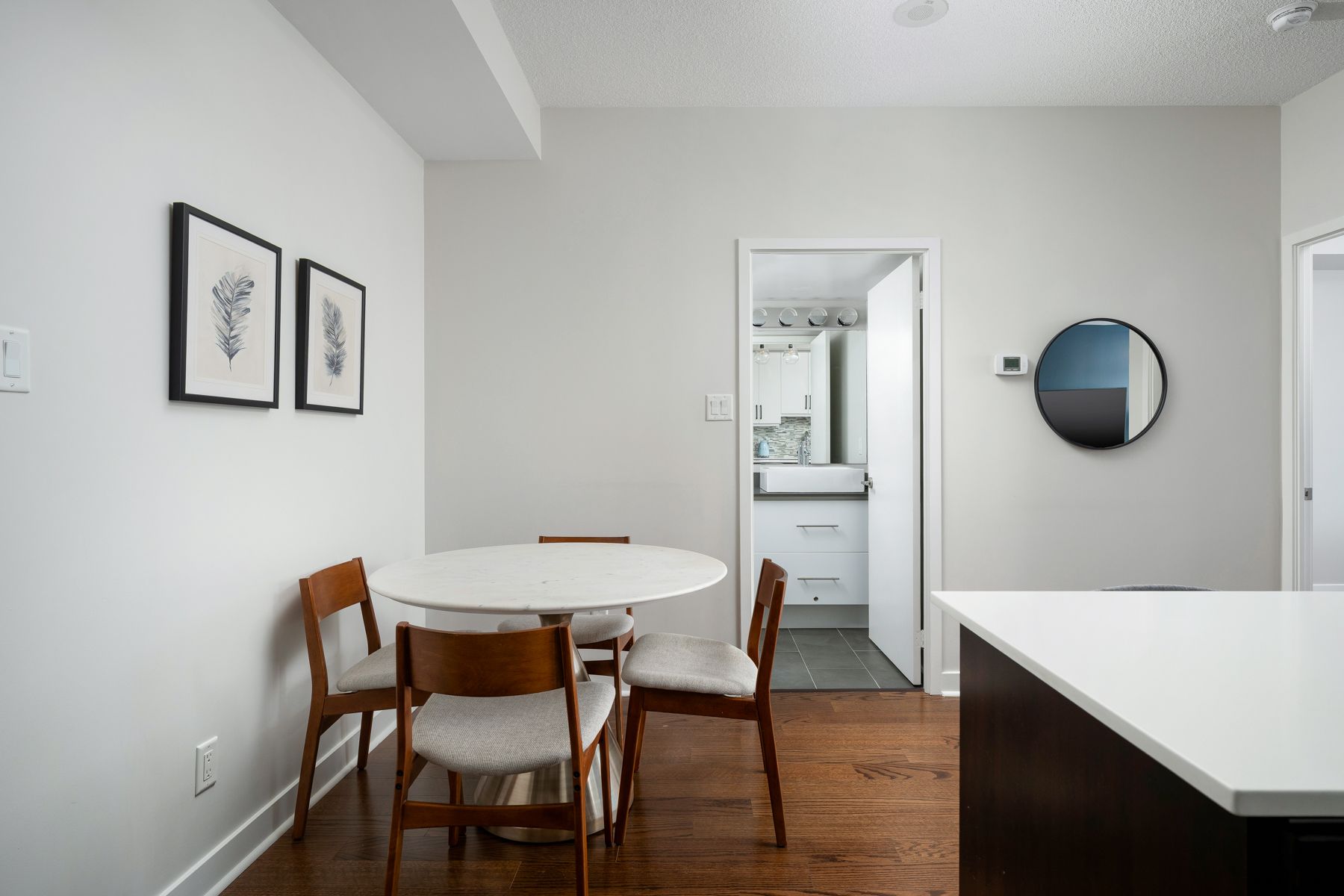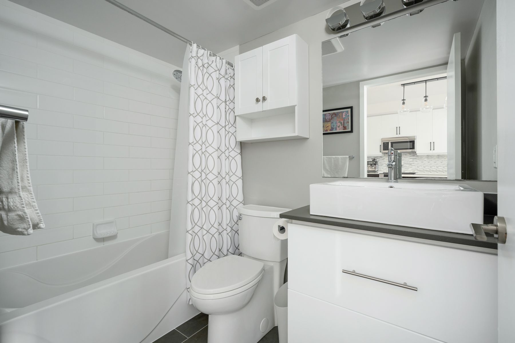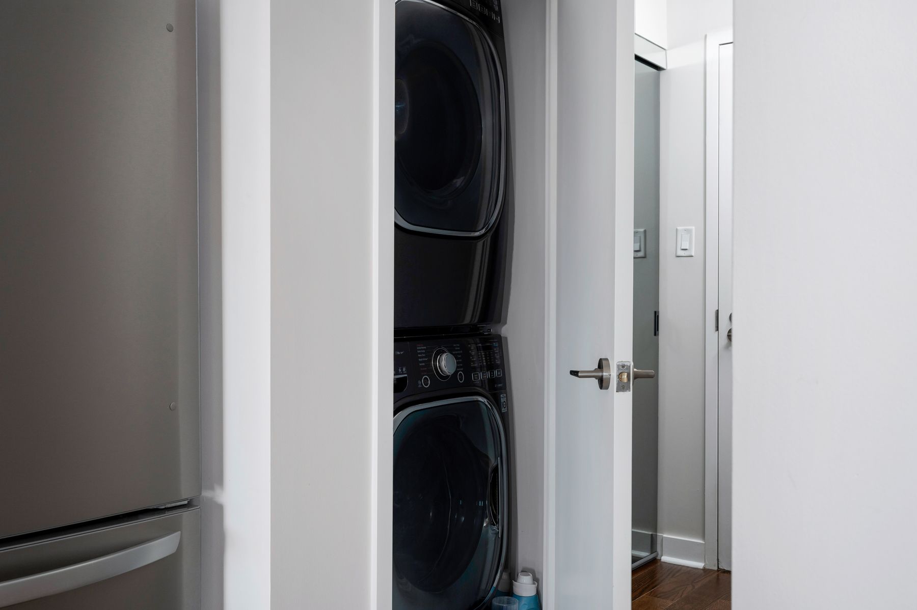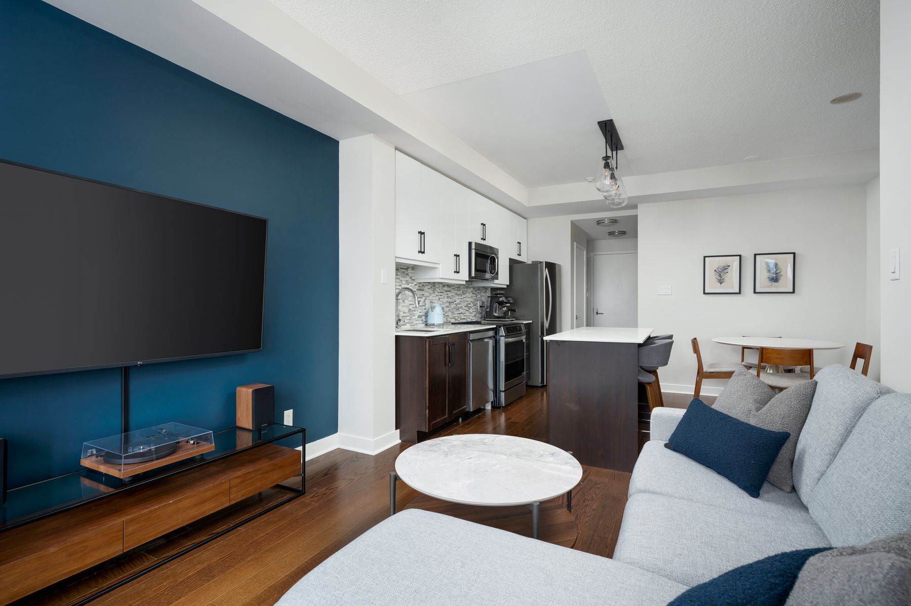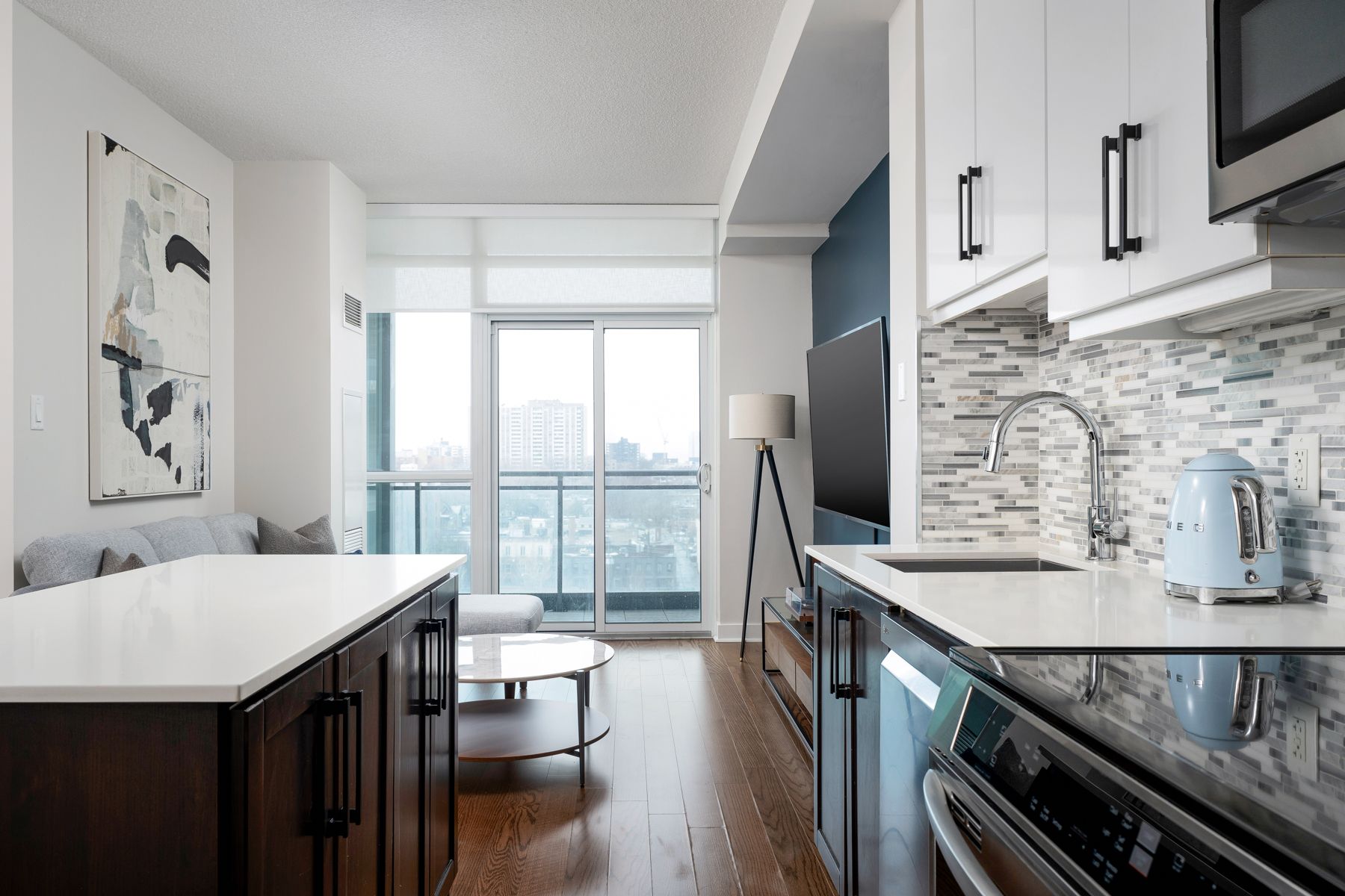 Turn-key and thoughtfully designed, this west-facing 1-bedroom offers a smart, efficient layout with no wasted space and distinct areas for living, dining and everyday life. Dark flooring grounds the space, while the kitchen pairs white counters and upper cabinetry with contrasting base cupboards for a clean, modern look. A large island, upgraded stainless steel appliances, mosaic tile backsplash and generous storage make the kitchen as functional as it is polished, flowing naturally into proper dining and living areas rarely found in a one bedroom layout. Floor-to-ceiling windows bring in afternoon light and open to a west-facing balcony. The bedroom is well-proportioned and includes a walk-in closet, while in-suite laundry and thoughtful finishes throughout add to the suite's refined, move-in-ready feel. The building is currently undergoing a full renovation of its common areas, with renderings in the listing photos showcasing the updated design and the rare combination of a like-new feel and the space and functionality of an established condo. Set at queen and gladstone, this is a low - maintenance home with style, substance and everyday practicality in one of toronto's most established west-end pockets.