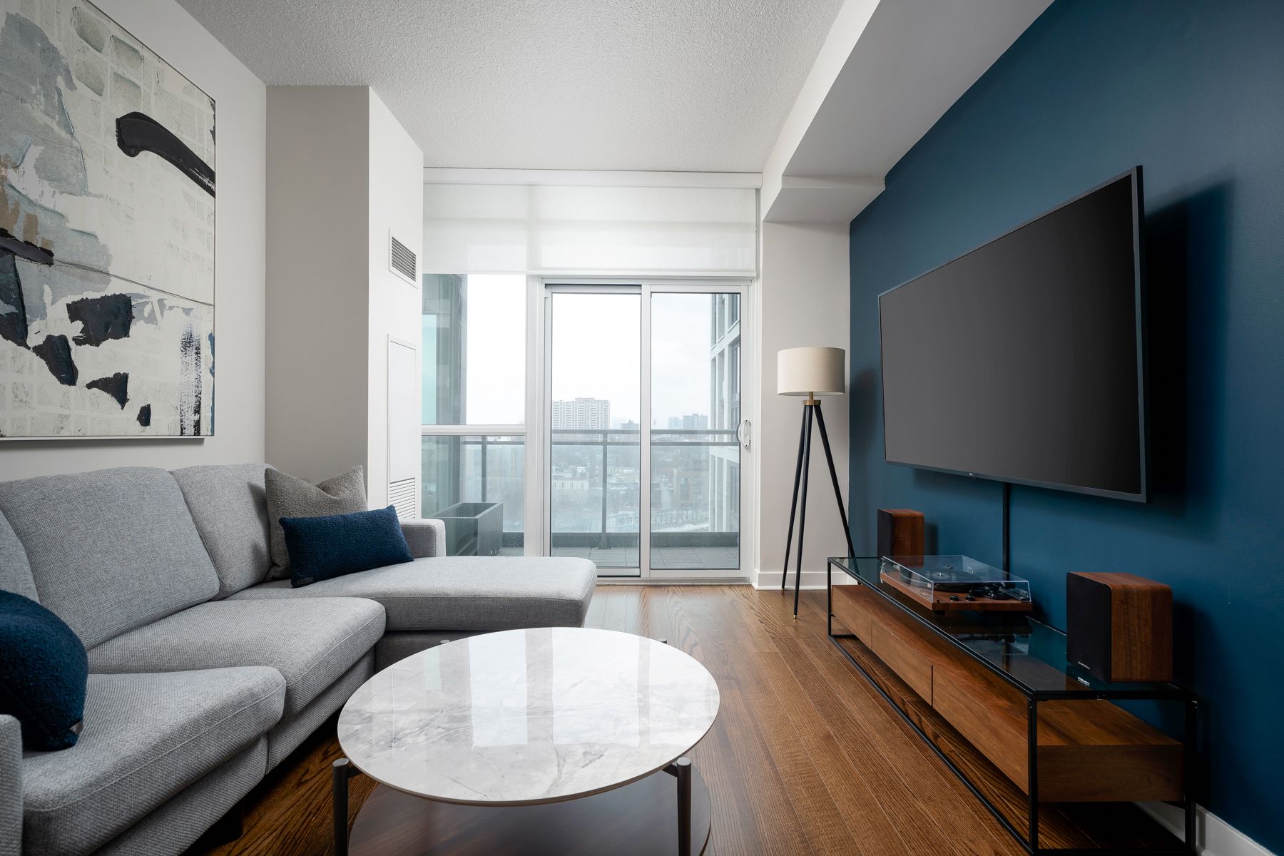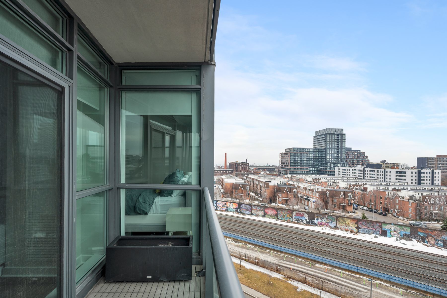 • Floor-to-ceiling windows let in great afternoon light, leading to a west-facing balcony.