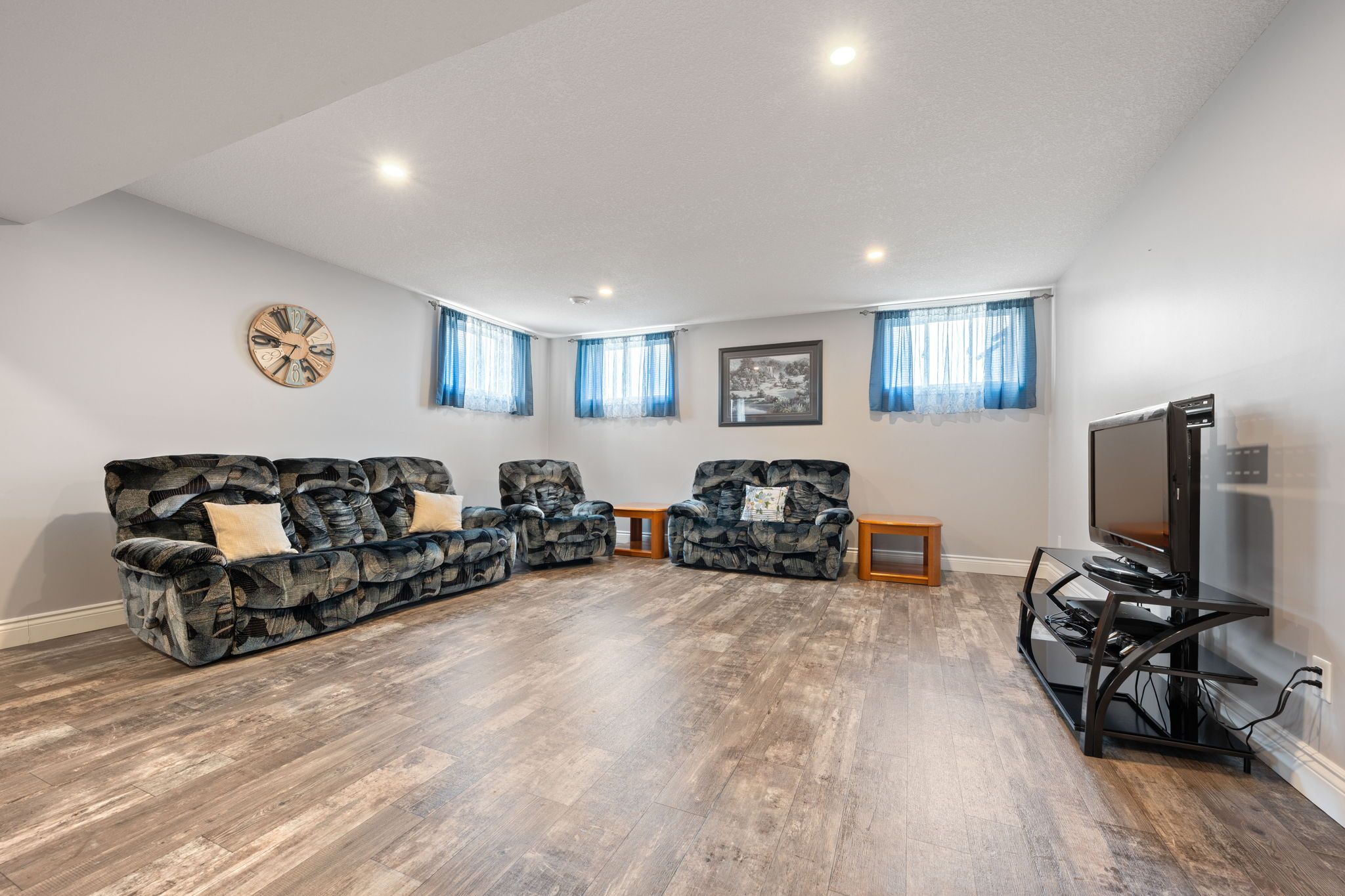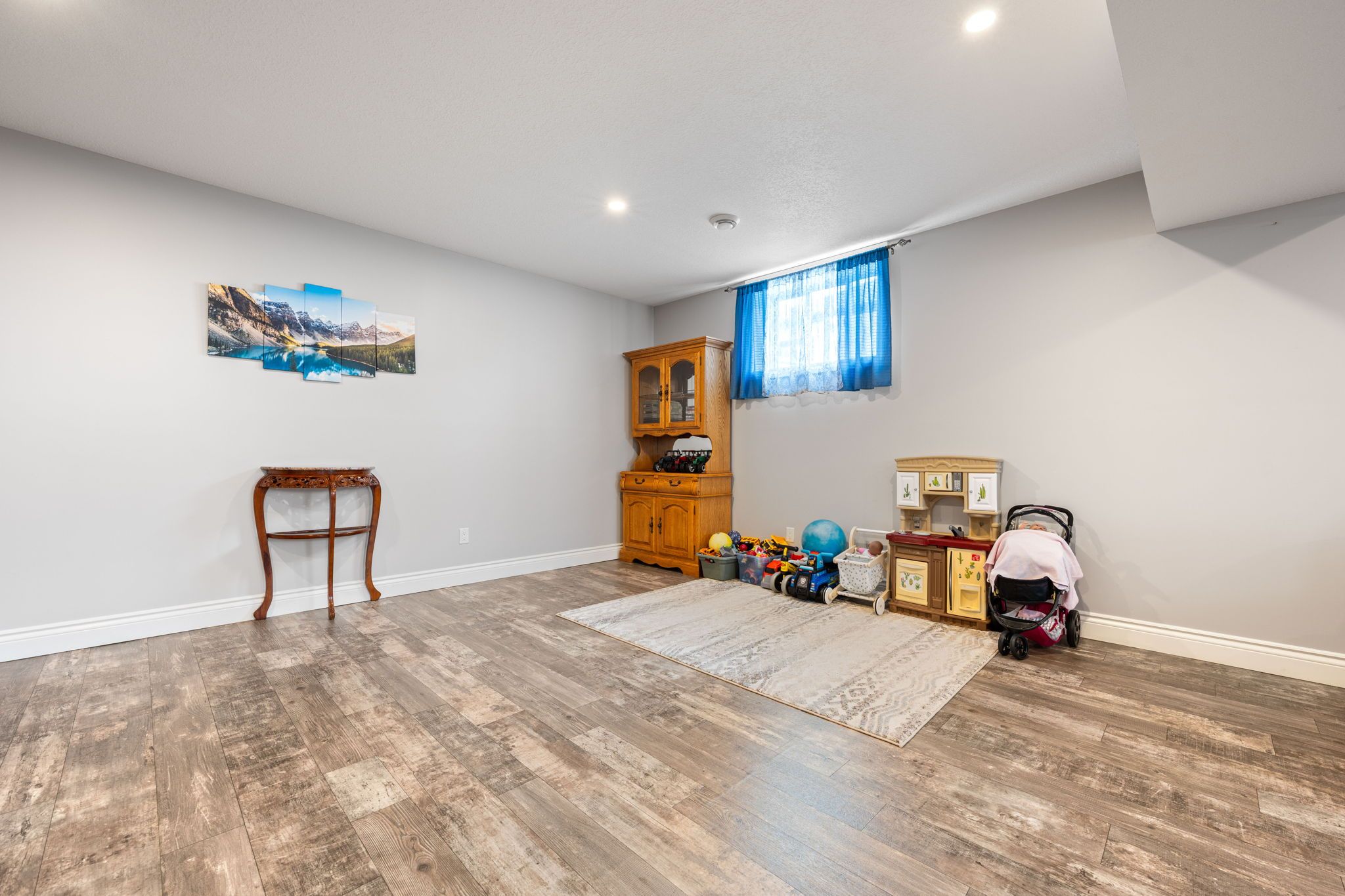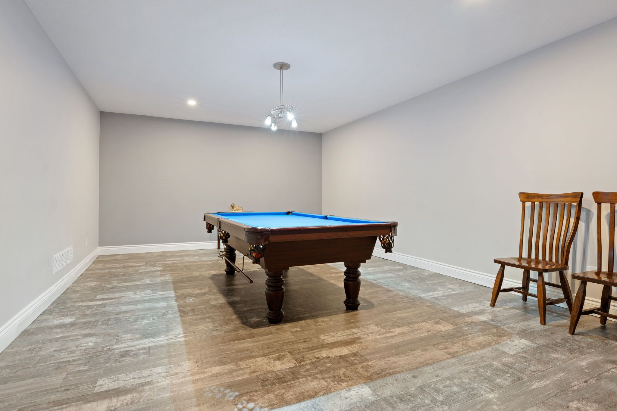 • Finished lower level with recreation room, two bedrooms, and oversized games room.