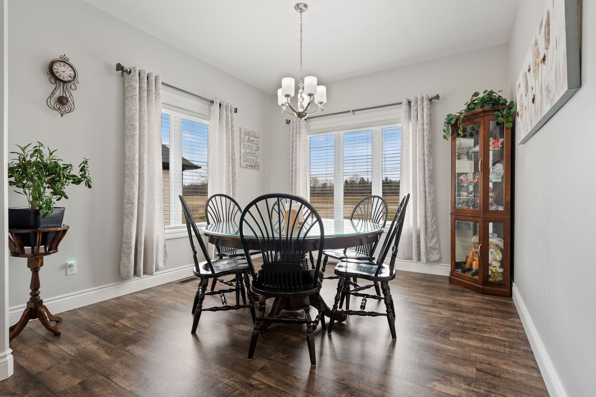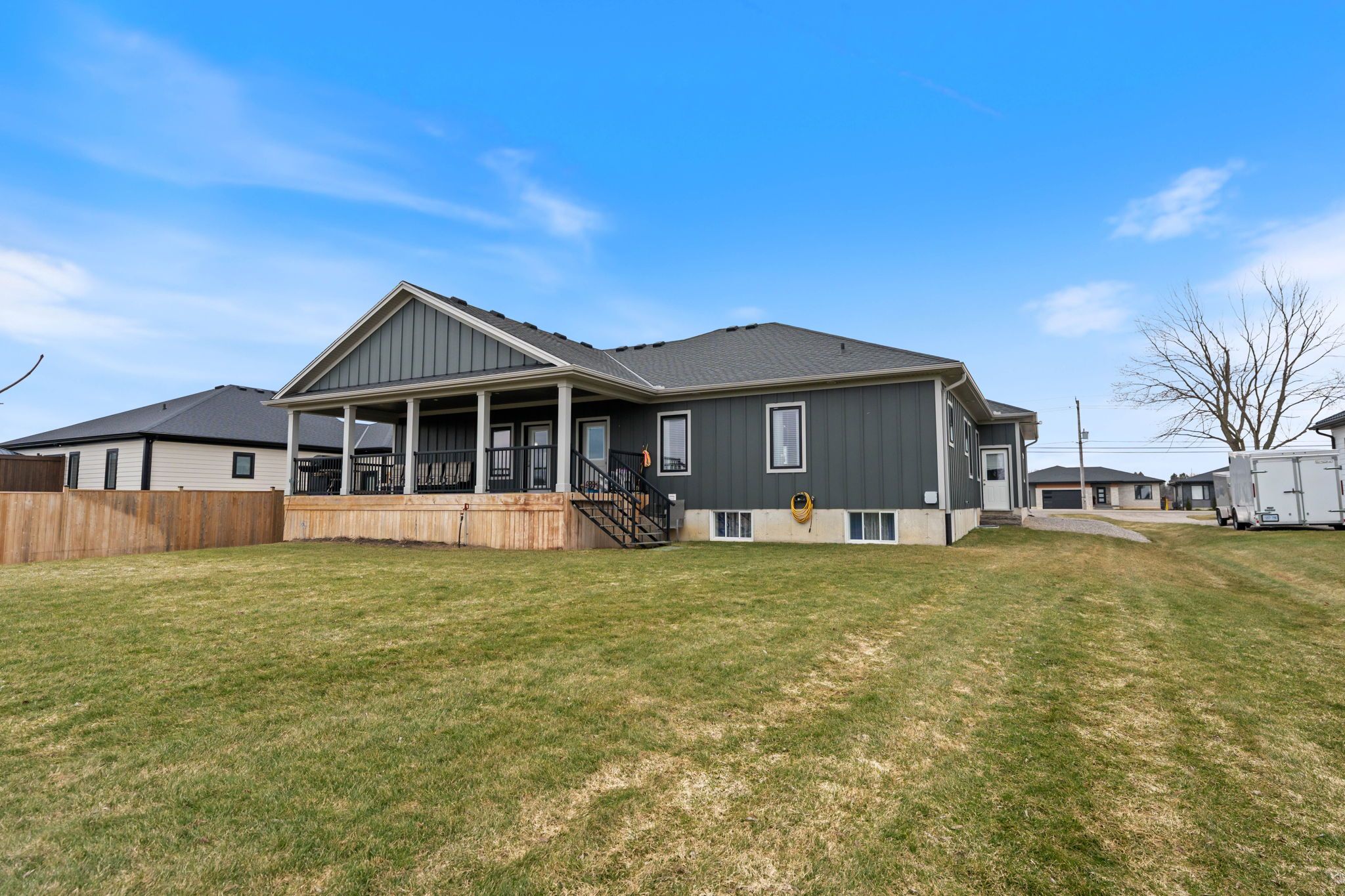 Welcome to eden-where country charm meets modern comfort. Ideally located just 7 minutes south of tillsonburg, this beautifully finished home sits on a picturesque lot backing onto open fields, offering both privacy and scenic views. The main floor offers 1,897 sq ft of thoughtfully designed living space, perfect for families. At the heart of the home is a stunning custom kitchen featuring granite countertops, tiled backsplash, under-cabinet lighting, a centre island, and a walkout to the covered rear deck-ideal for entertaining. A separate living room with french doors provides a quiet retreat for more intimate gatherings. The spacious primary bedroom includes a full ensuite and a large walk-in closet, while the convenient main floor laundry room offers plenty of cabinetry for organization. The fully finished lower level expands your living space with a large recreation room, two generous bedrooms, a full bathroom, and an oversized games room-perfect for kids and entertaining alike, with ample space for a pool table or poker nights. Car enthusiasts and hobbyists will appreciate the extra-wide double car garage with 10-foot doors, fully heated with an overhead gas heater and equipped with an additional gas line for a stove hookup. Step outside to enjoy the covered composite deck-low-maintenance and built to last-overlooking the beautifully landscaped yard. A 10' x 20' garden shed with power and water supply provides excellent additional storage. The current owners have invested significantly in the landscaping, including a full in-ground sprinkler system for easy maintenance. Additional features include a high-efficiency gas furnace, central air, hrv system, gas water heater, and owned water softener. This is a turnkey property offering space, quality, and lifestyle-don't miss your opportunity to call it home.