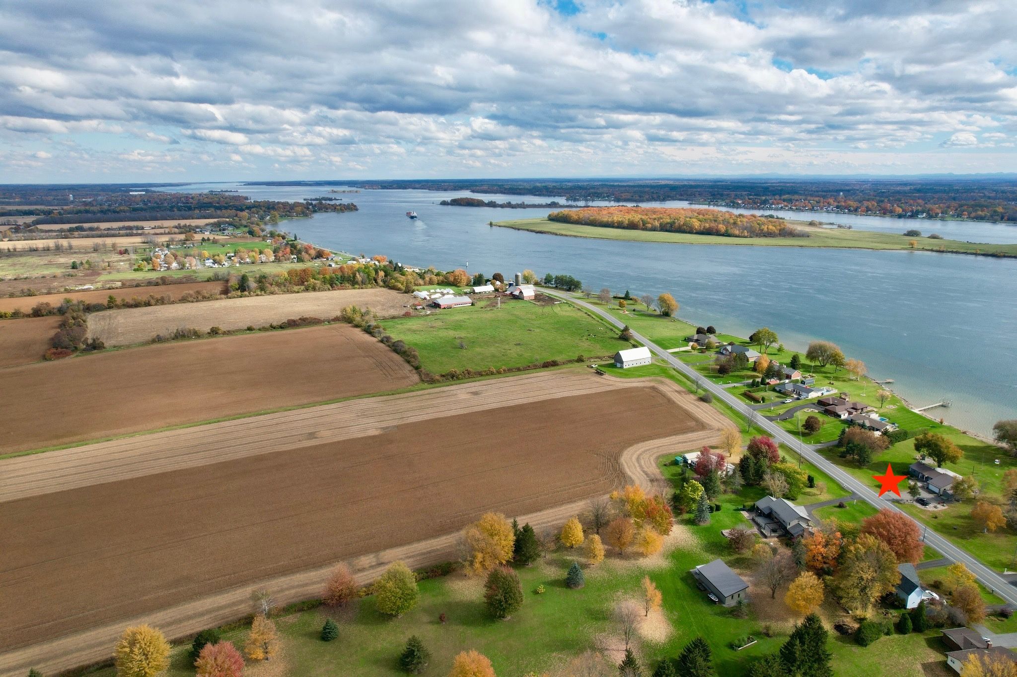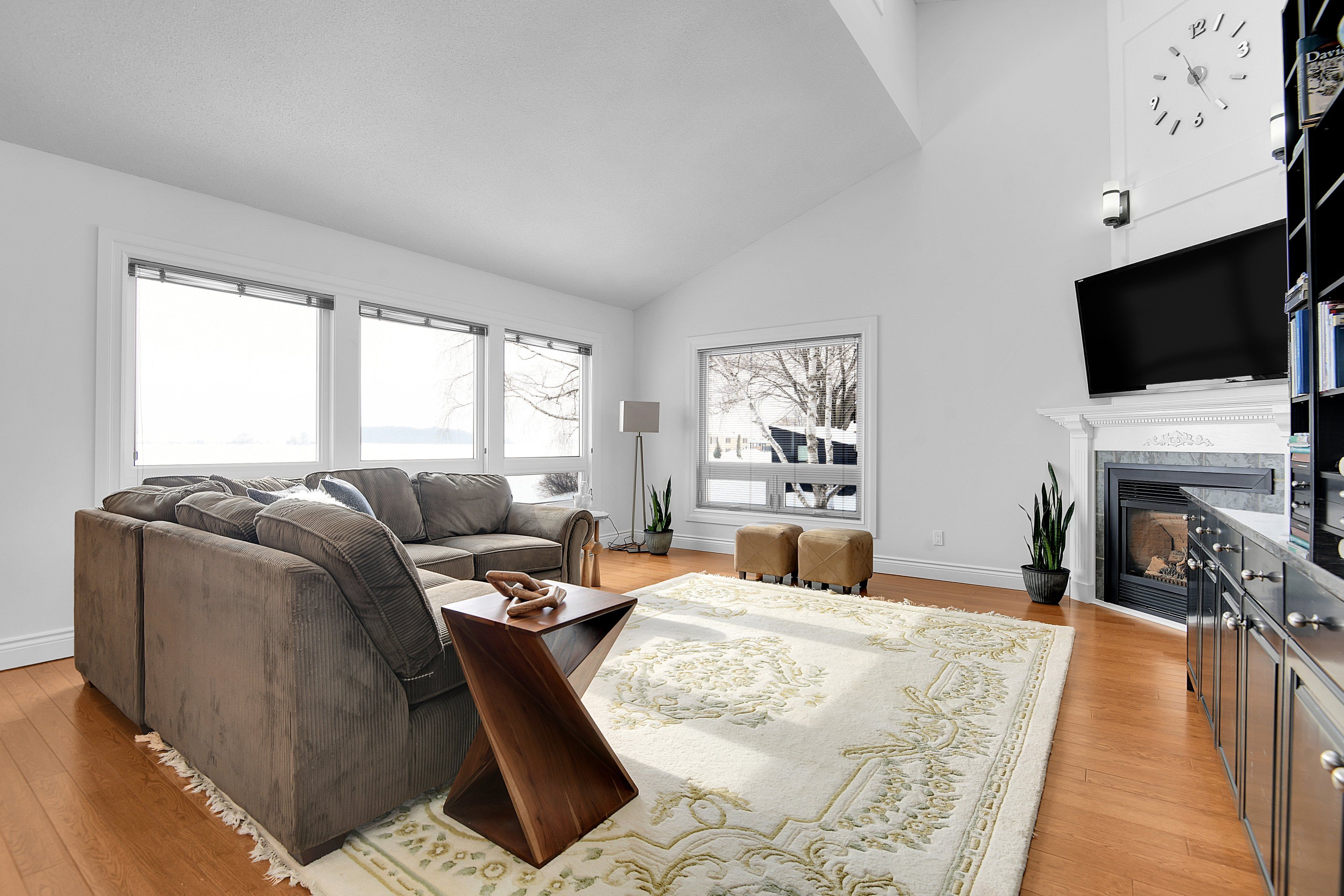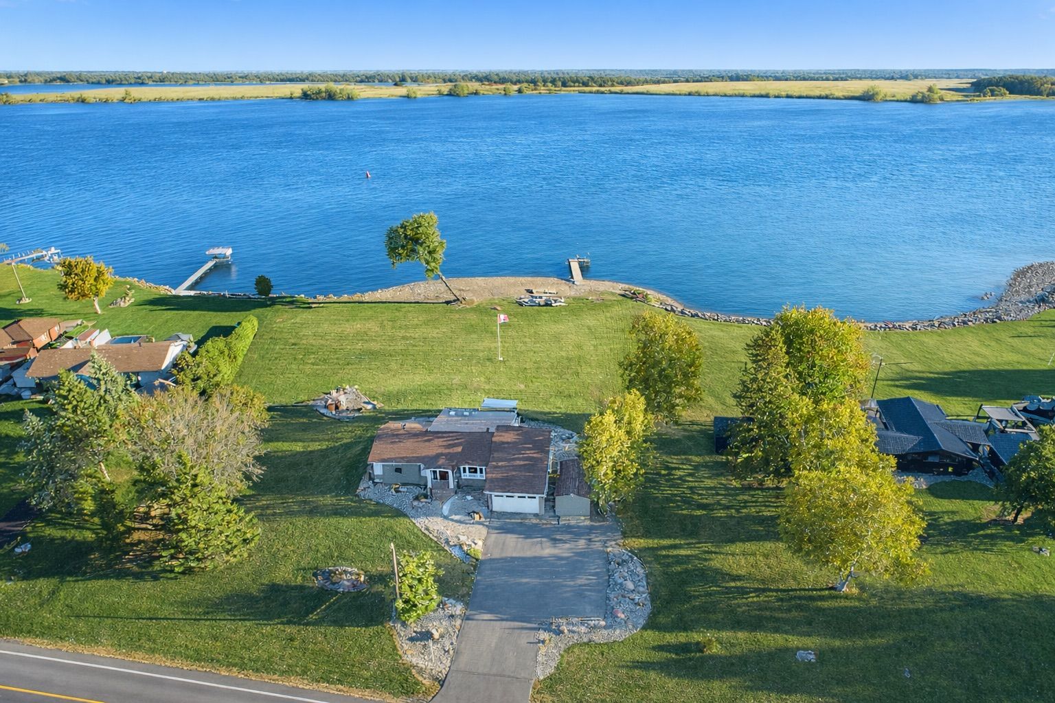 Lakeshore drive waterfront living! Welcome to this beautifully maintained 3-bedroom, 2-bathroom home located in one of the area's most sought-after neighbourhoods, offering spectacular south-facing views of the st. Lawrence river. Enjoy watching freightliners and recreational boats glide by from the comfort of your own home, even from the primary bedroom, or take advantage of the homes beach for relaxing summer days by the water. Inside, vaulted ceilings create a bright and airy feel, enhancing the home's spacious layout. The sunken living room is a warm and inviting focal point, complete with a cozy gas fireplace and a stunning wall of windows overlooking the river. A four-season sunroom allows you to enjoy the scenery year-round, while the three-season sunroom with skylights at the rear of the home offers additional space to unwind. Step outside to the generous back deck, that spans half the width of the home, featuring a convenient awning-perfect for entertaining or simply soaking up the sun. The massive yard provides endless possibilities for recreational activities and gatherings of any size. The attached double garage is insulated and heated and offers direct entry into the home for added convenience. With numerous updates throughout and impeccable landscaping already completed, this property has been wonderfully cared for. Offering plenty of space for families or retirees alike, there is truly nothing to do but move in and enjoy riverfront living at its finest.