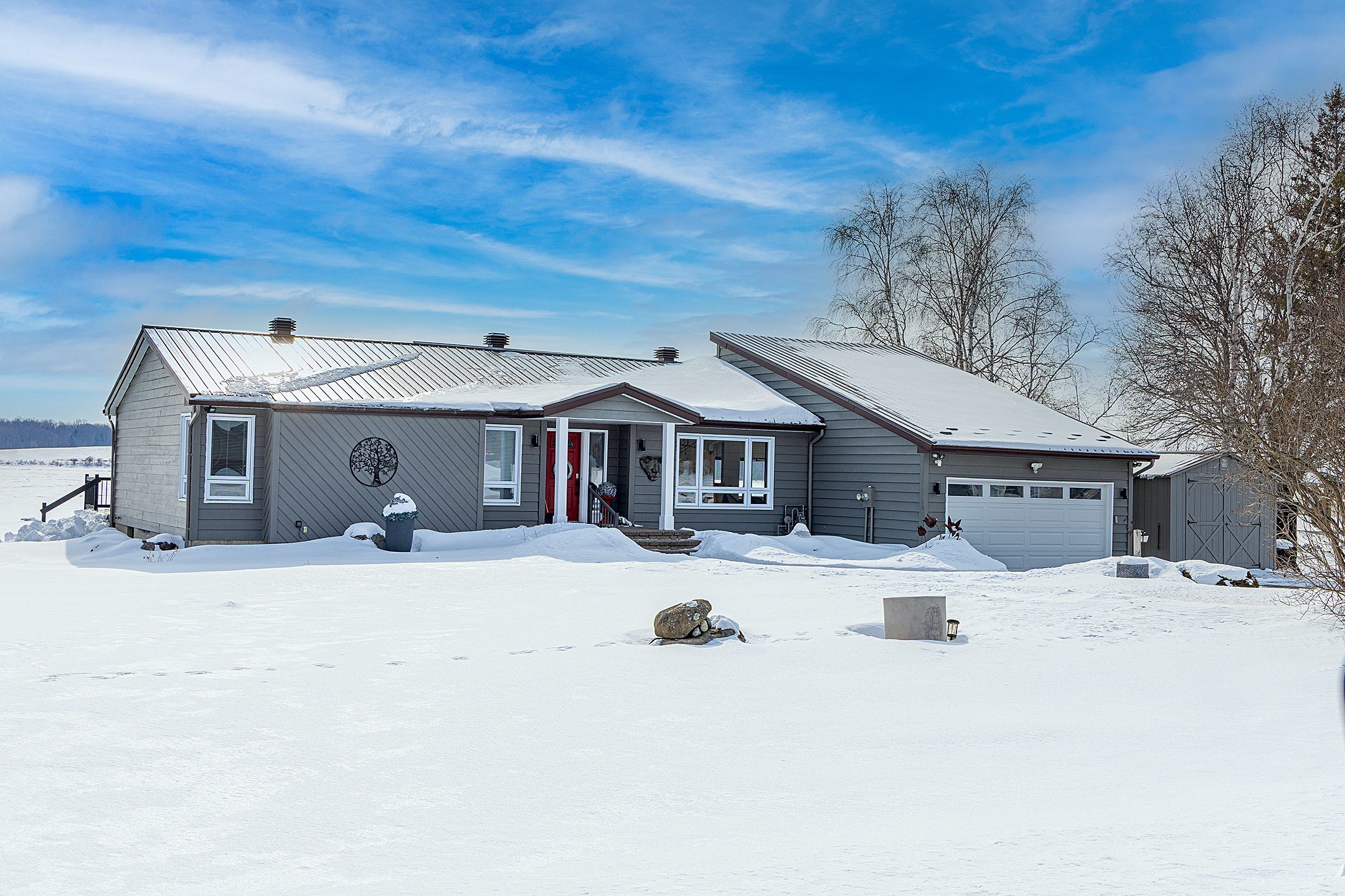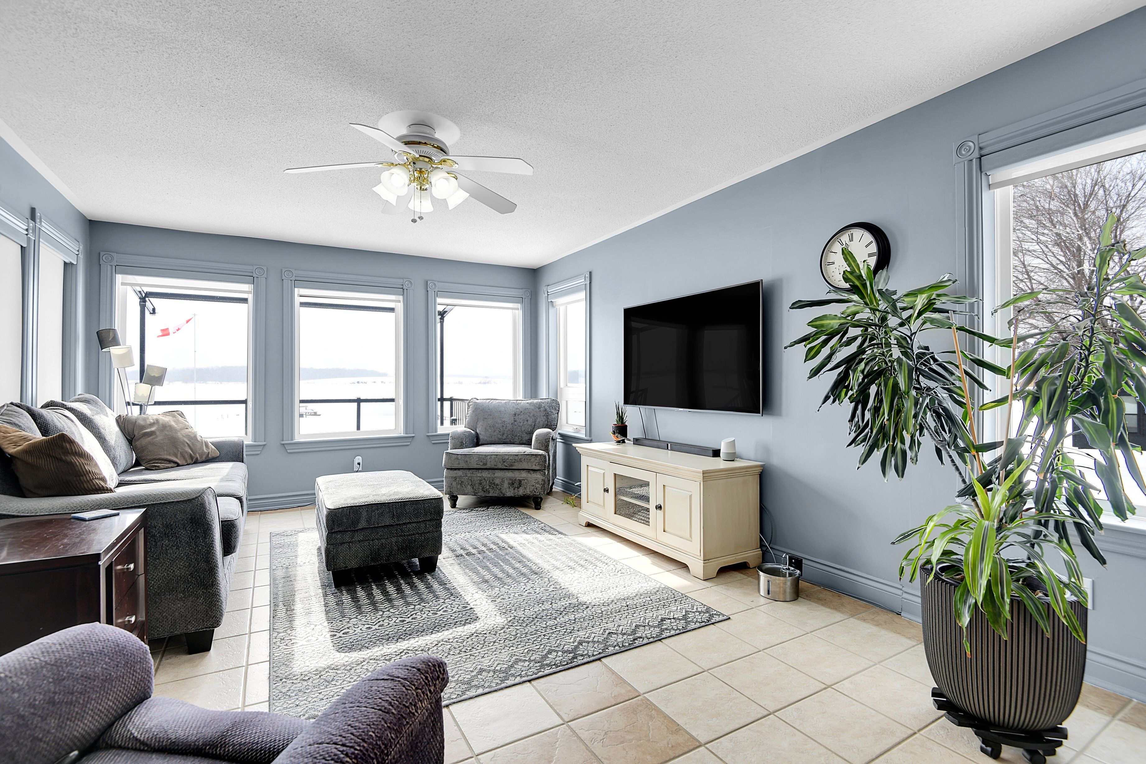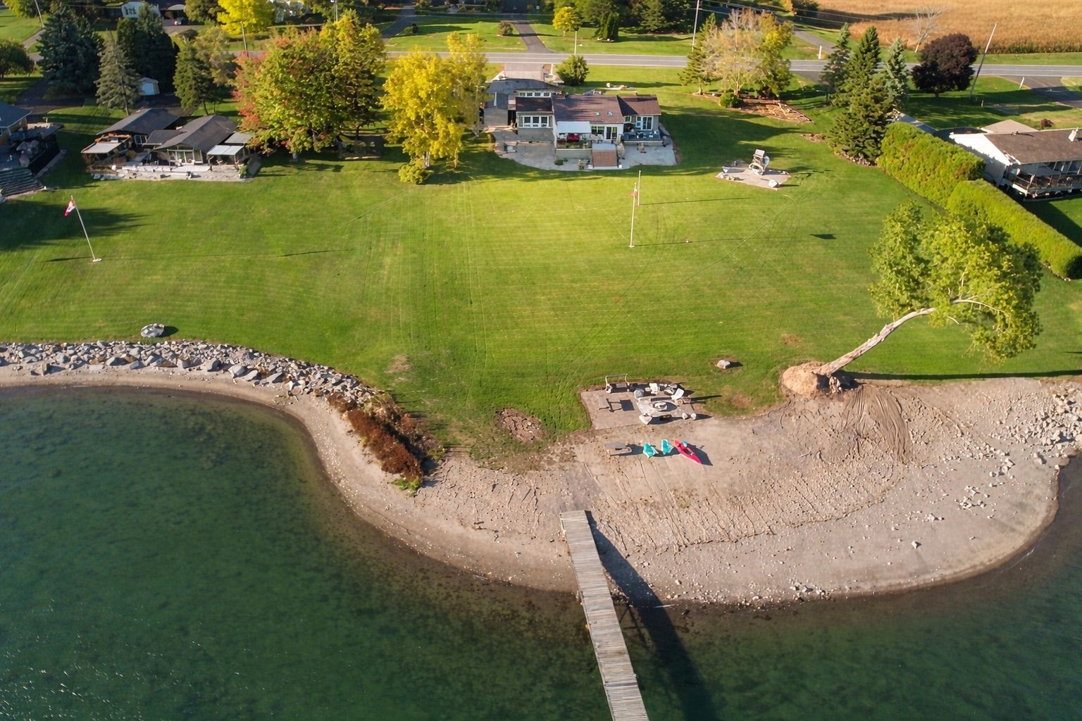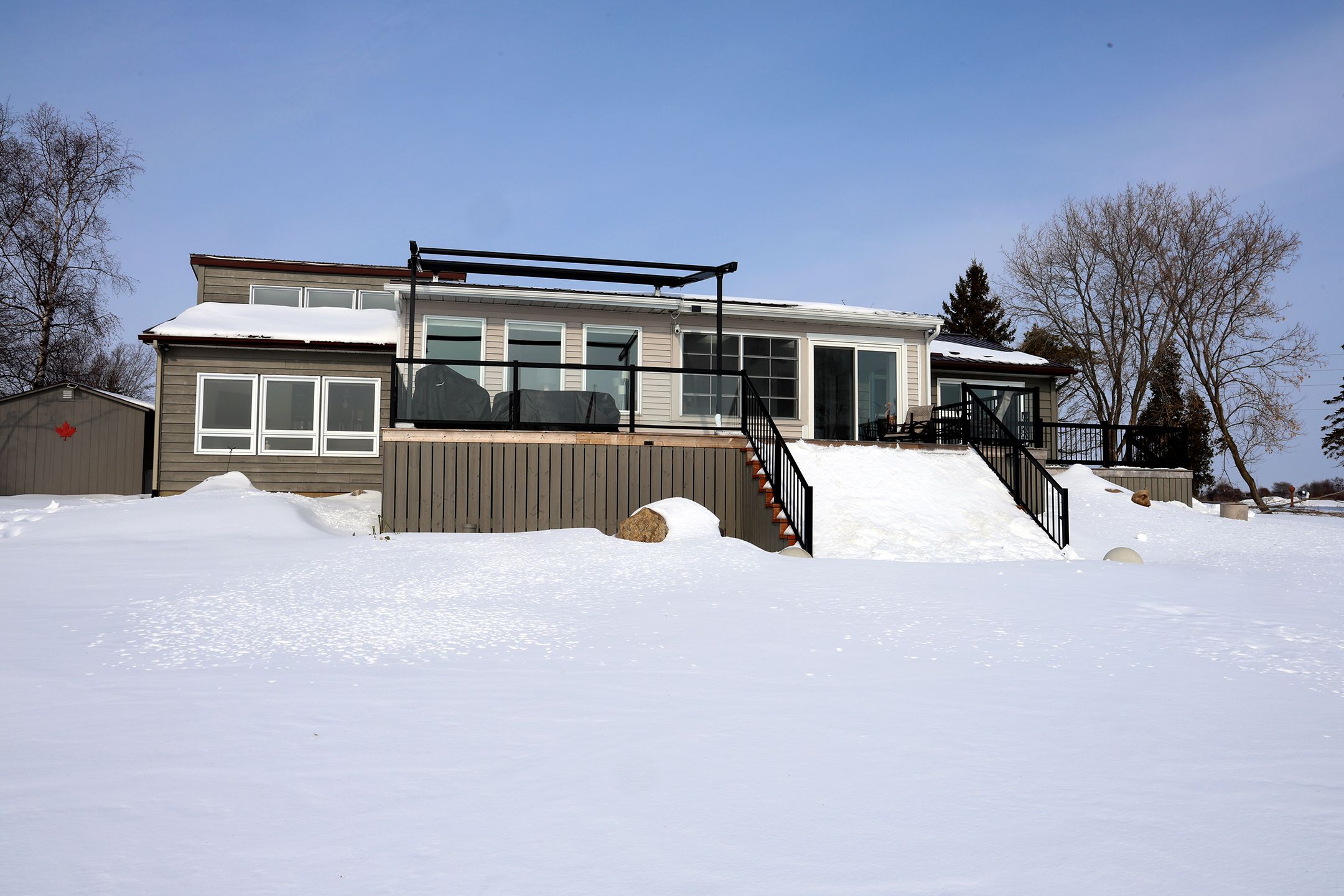Lakeshore drive waterfront living! Welcome to this beautifully maintained 3-bedroom, 2-bathroom home located in one of the area's most sought-after neighbourhoods, offering spectacular south-facing views of the st. Lawrence river. Enjoy watching freightliners and recreational boats glide by from the comfort of your own home, even from the primary bedroom, or take advantage of the homes beach for relaxing summer days by the water. Inside, vaulted ceilings create a bright and airy feel, enhancing the home's spacious layout. The sunken living room is a warm and inviting focal point, complete with a cozy gas fireplace and a stunning wall of windows overlooking the river. A four-season sunroom allows you to enjoy the scenery year-round, while the three-season sunroom with skylights at the rear of the home offers additional space to unwind. Step outside to the generous back deck, that spans half the width of the home, featuring a convenient awning-perfect for entertaining or simply soaking up the sun. The massive yard provides endless possibilities for recreational activities and gatherings of any size. The attached double garage is insulated and heated and offers direct entry into the home for added convenience. With numerous updates throughout and impeccable landscaping already completed, this property has been wonderfully cared for. Offering plenty of space for families or retirees alike, there is truly nothing to do but move in and enjoy riverfront living at its finest.
