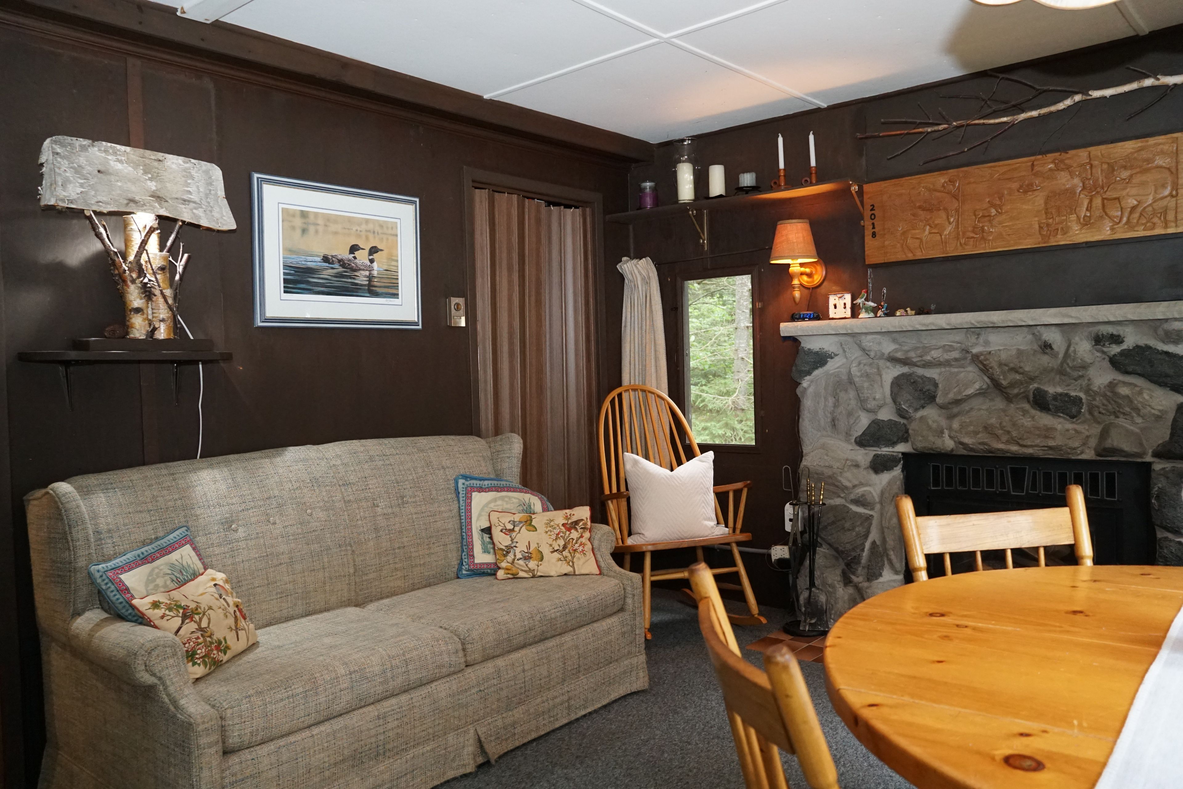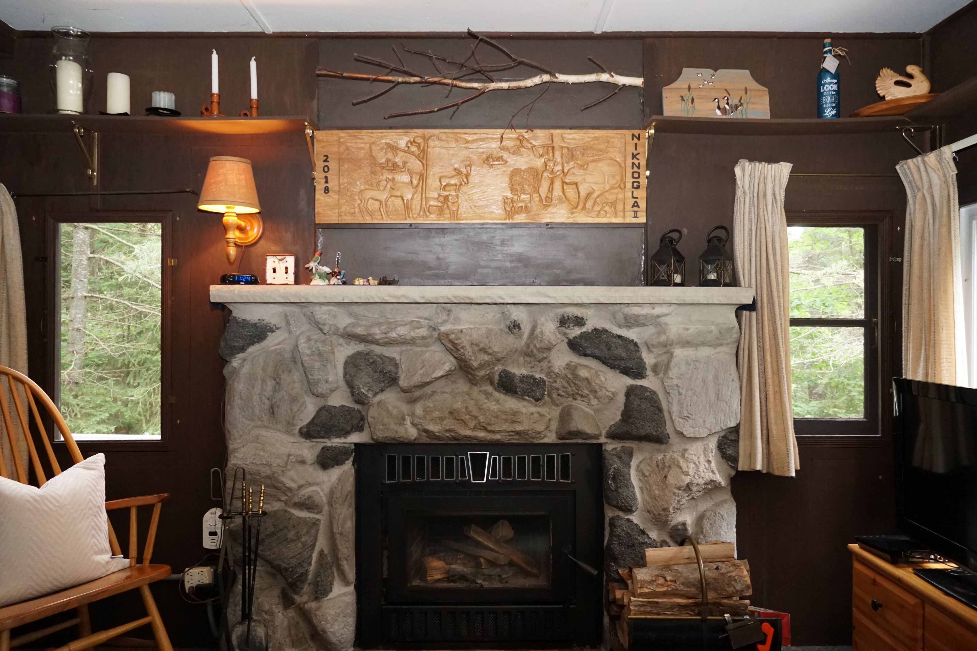 • High-efficiency wood-burning fireplace and baseboard heat for comfort.