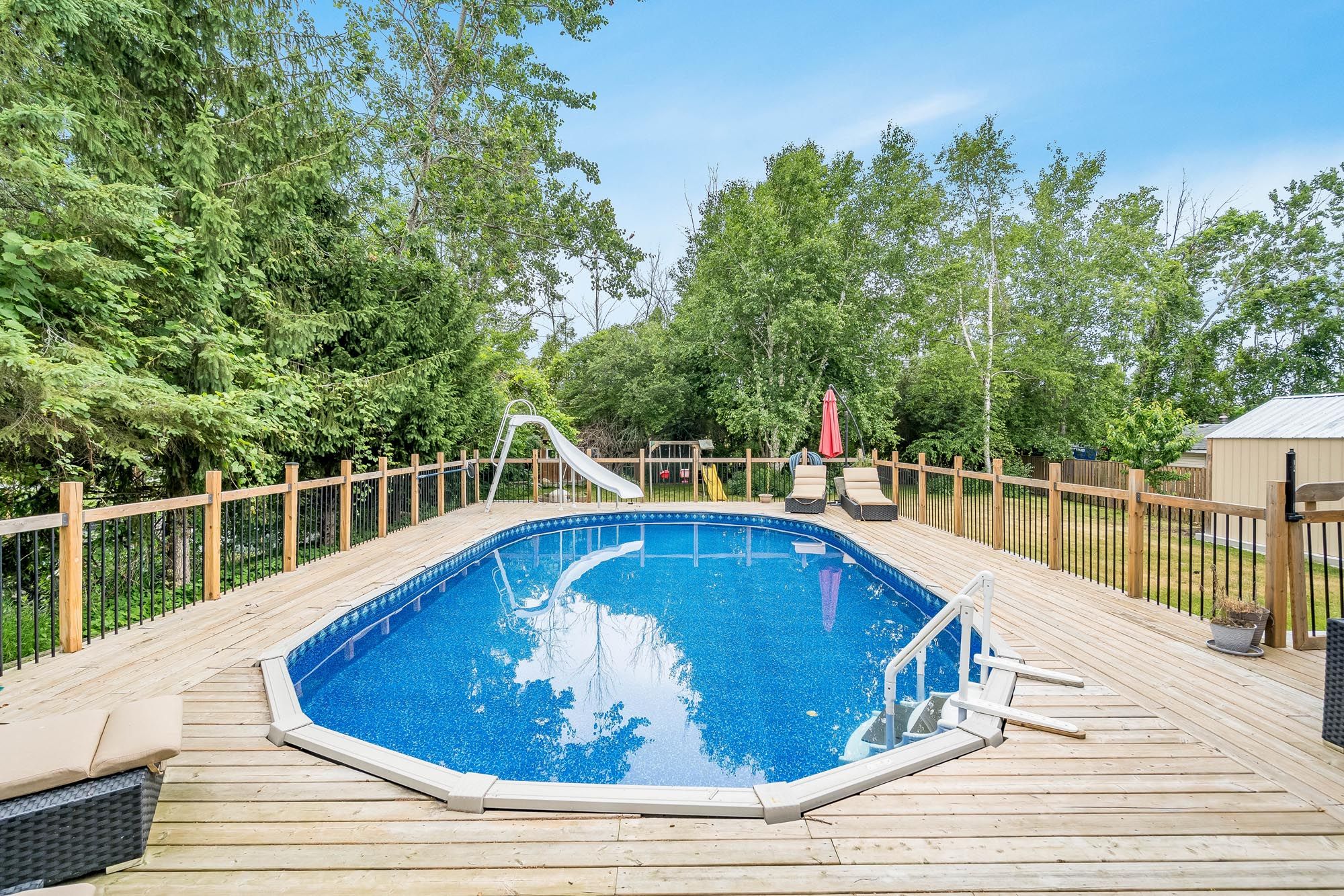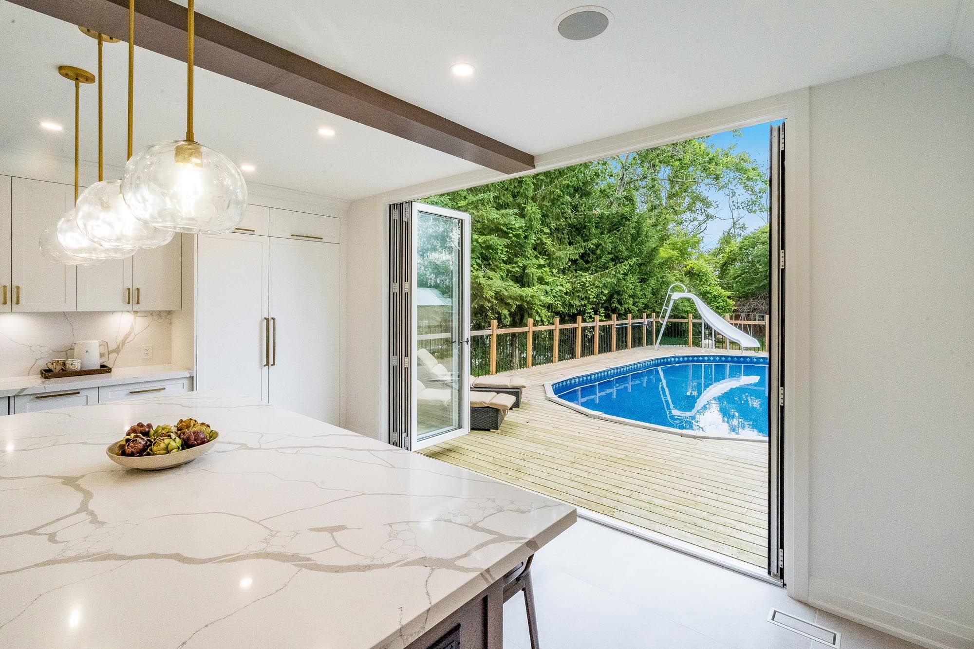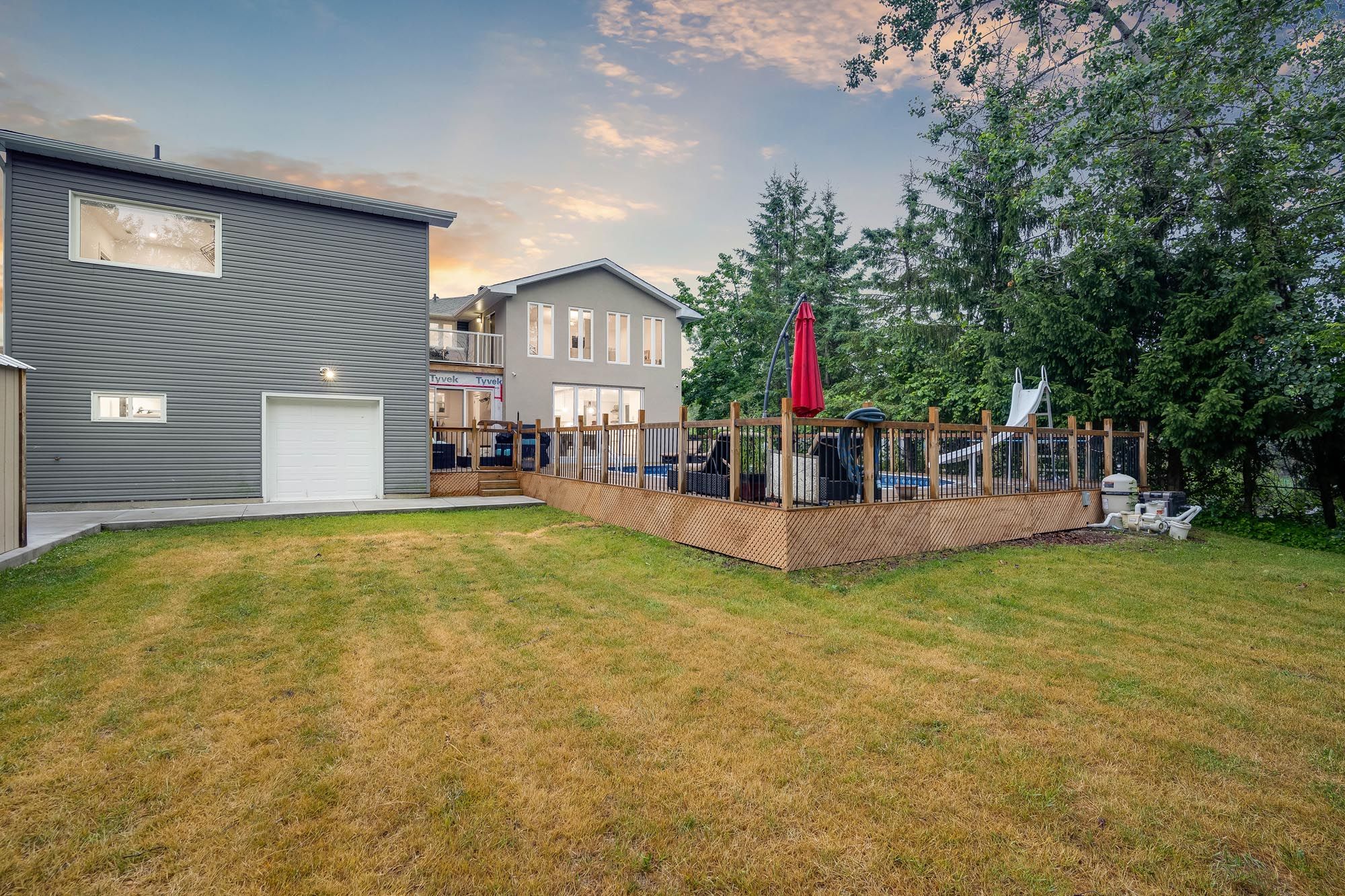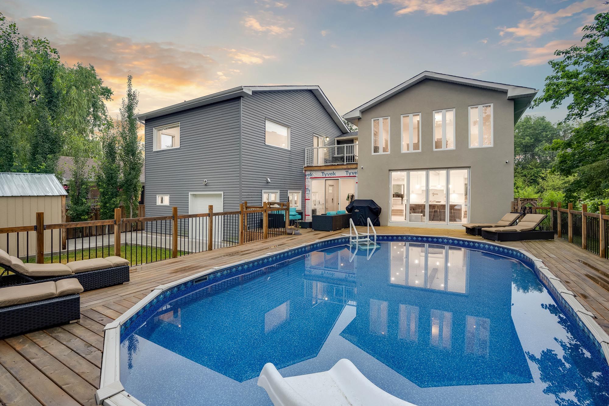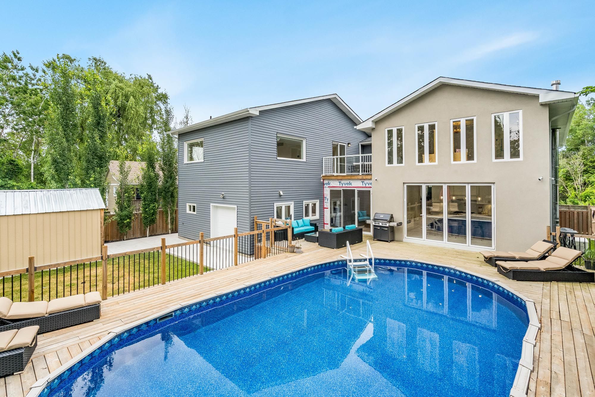 Top 5 reasons you will love this home: 1) experience the top-to-bottom renovation completed in 2023, including a brand-new gourmet kitchen, a luxurious primary suite, a spa-inspired ensuite, and cutting-edge heating and cooling systems; every inch of this home has been enhanced with premium finishes and expert craftsmanship 2) indulge in your own private sanctuary within the expansive primary suite, boasting an inviting electric fireplace, a private balcony that offers serene views, and an ensuite featuring a double walk-in shower, a freestanding soaking tub perfect for unwinding, and a custom walk-in closet with built-in cabinetry 3) the heart of the home, this chef-inspired kitchen is nothing short of spectacular, with gleaming quartz countertops, top-of-the-line appliances, including a double fridge, double wall ovens, and a 6-burner gas range with a pot filler for ultimate convenience, along with an oversized island with a breakfast bar ideal for casual dining or entertaining guests, this space is designed to impress 4) the expansive, open-concept main level is a masterpiece of design, offering an effortless flow between the family room, dining area, and living room, with a convenient servery enhancing the space 5) step into the backyard and discover your very own outdoor paradise, whether you're relaxing by the sparkling pool, hosting a barbeque on the expansive deck, or enjoying the lush greenspace, coupled with a brand-new 10'x16' shed and an oversized fully insulated garage perfect for car enthusiasts or hobbyists and can comfortably house up to 5 vehicles and includes a lift and a gas heater. 3,887 above grade sq. Ft. Plus a finished basement.
