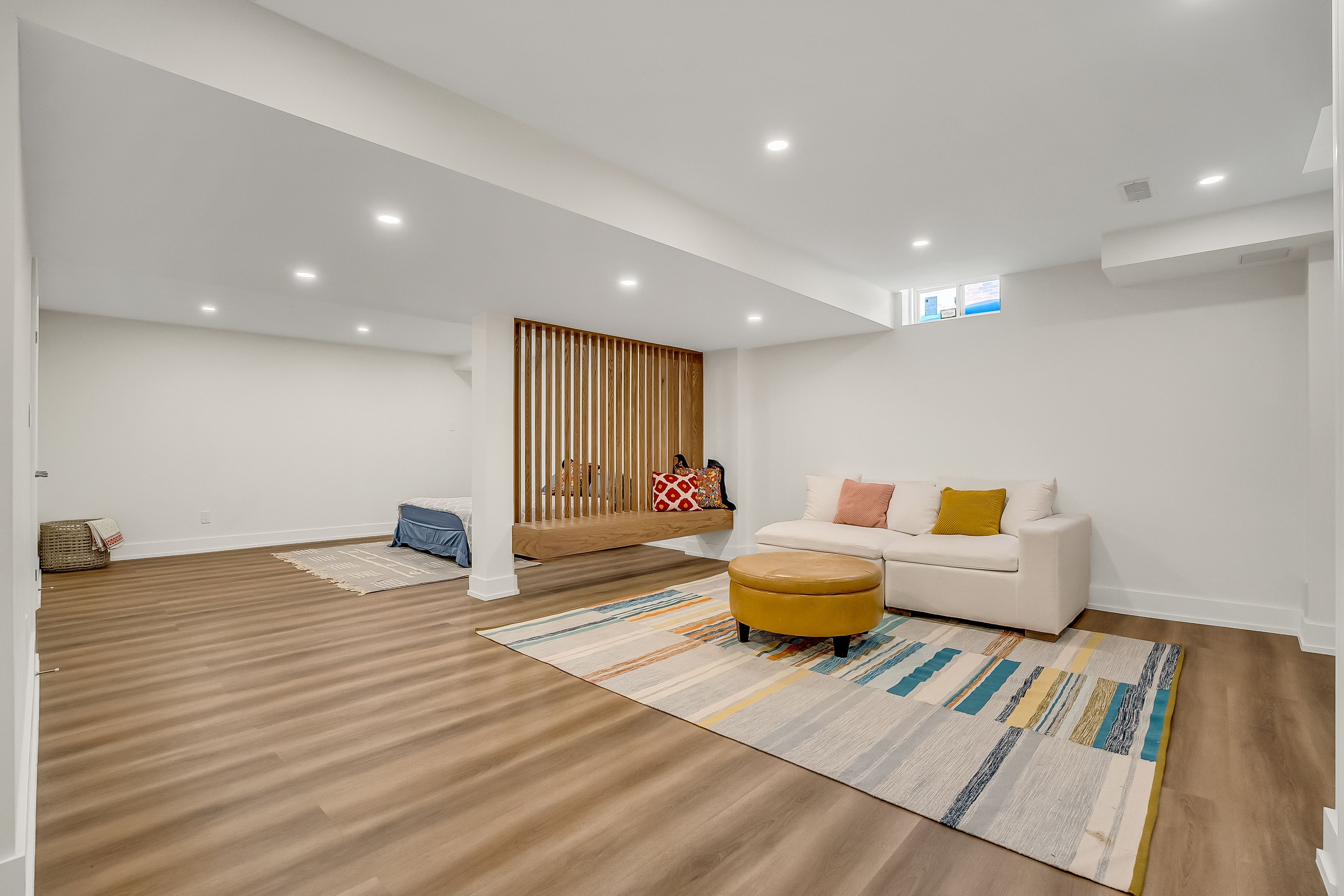 • Finished basement adds extra living space for family activities.