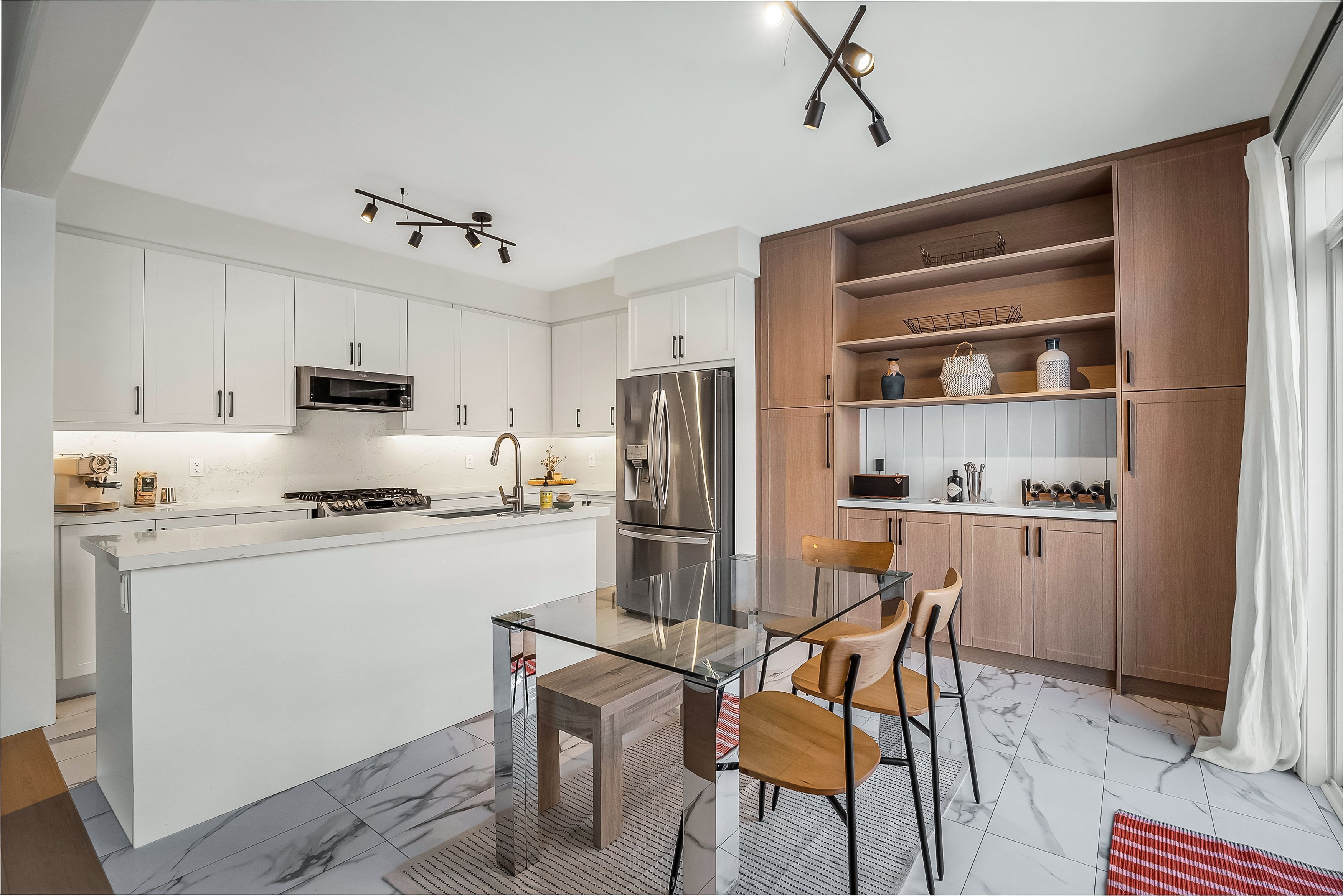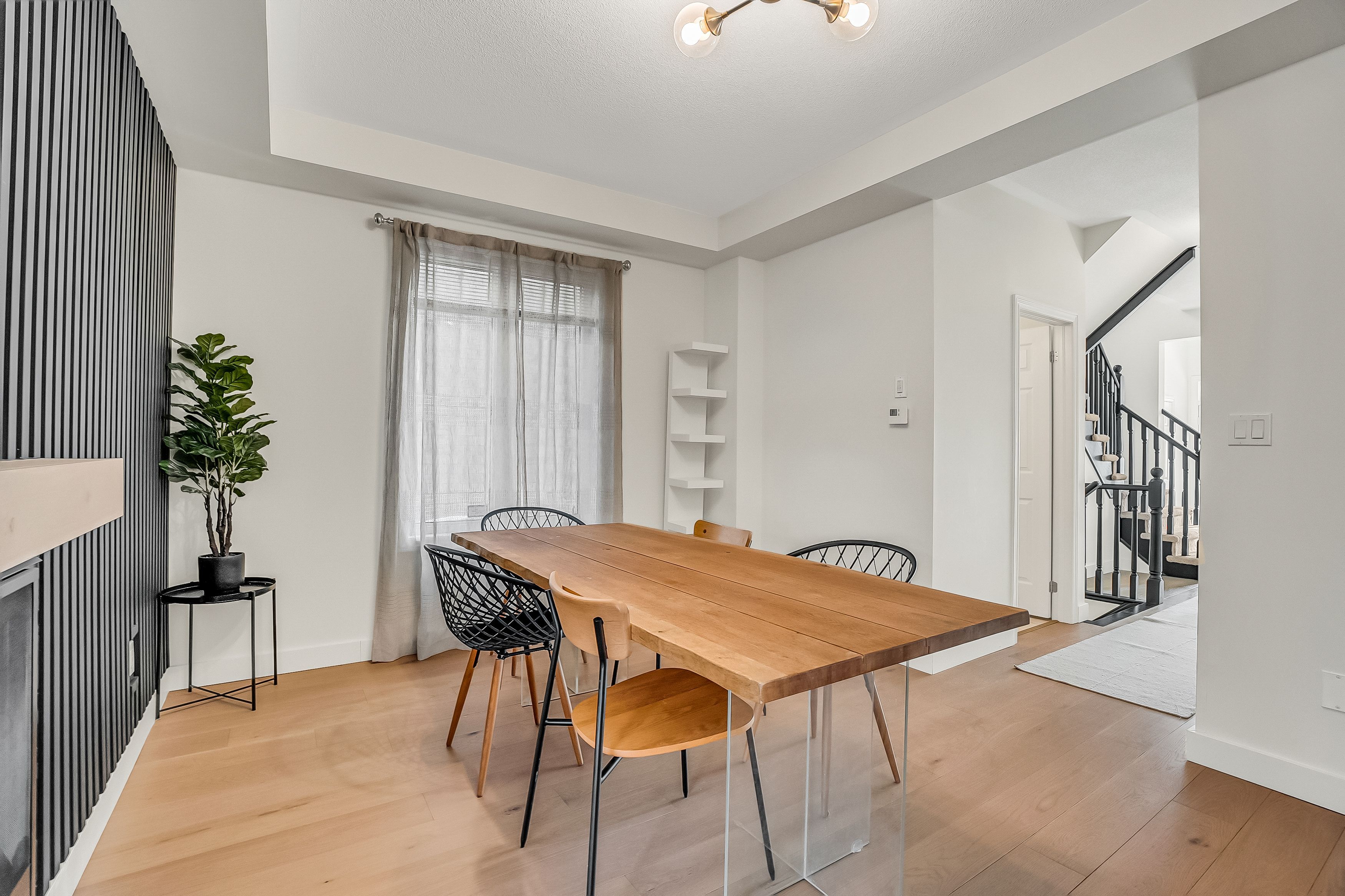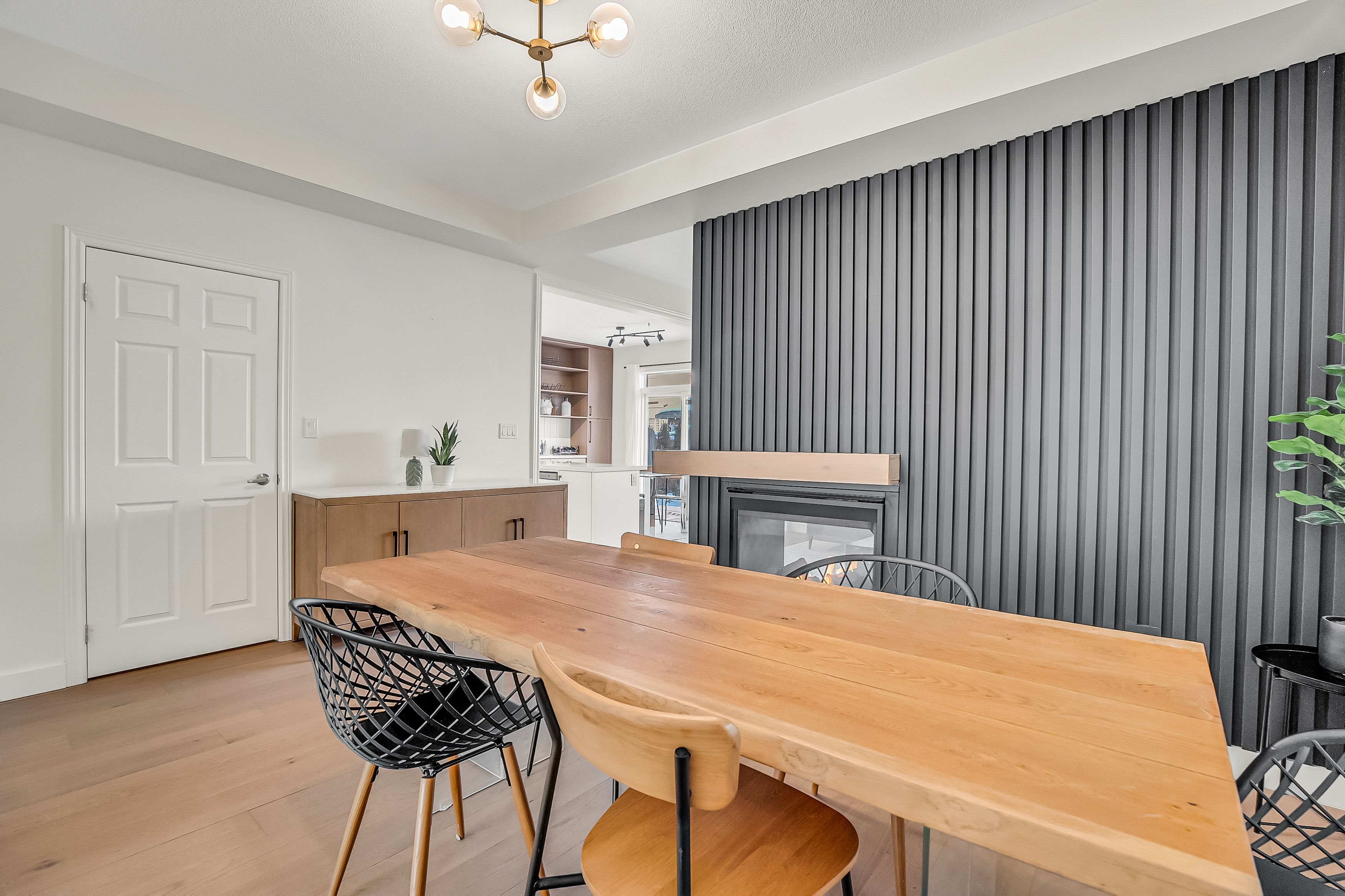 • Double-sided gas fireplace connecting living and dining areas for easy hosting.