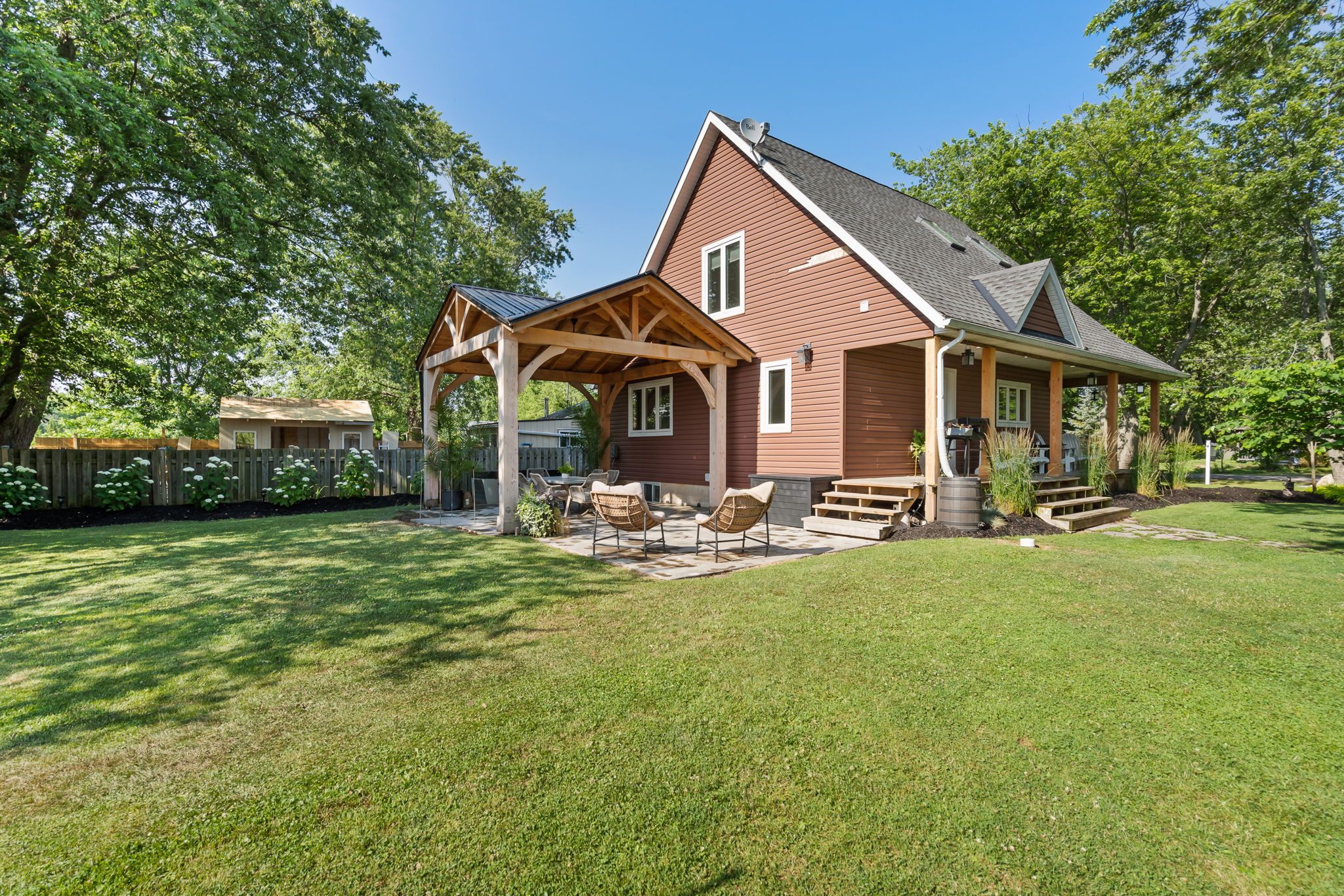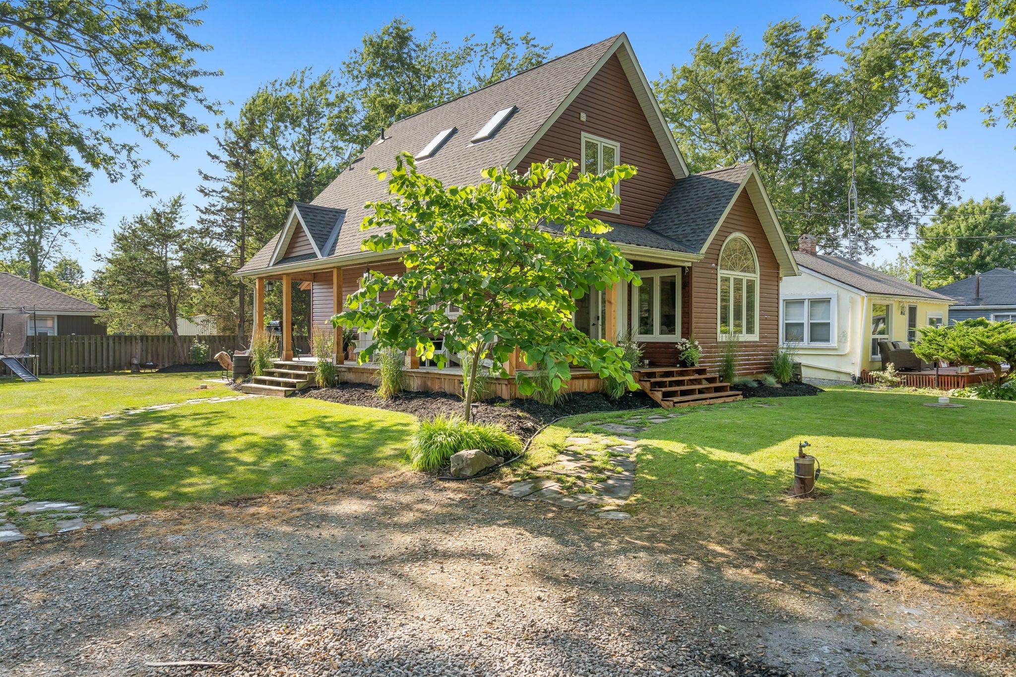 Immediate possession is available on this adorable 3 bedroom home just a short stroll to a gorgeous sand beach. Open concept design with soaring vaulted ceilings, gorgeous kitchen with high-end built in appliances. Upper level with master bedroom, 2nd bedroom with skylight and 4 piece bath. Stunning main floor living area with gas fireplace, gourmet kitchen and 3 piece bath. Fully finished lower level with lots of room for the kids to play or cozy family movie nights. Enjoy summer nights on your wrap around porch and back deck over looking your private fenced yard. Large 10' x 18'3" shed offers all the conveniences of a garage-all on a municipal dead end road. Enjoy all that niagara has to offer including multiple golf courses, amazing trails, delicious wineries, yummy craft breweries, international eateries and unique shopping boutiques.