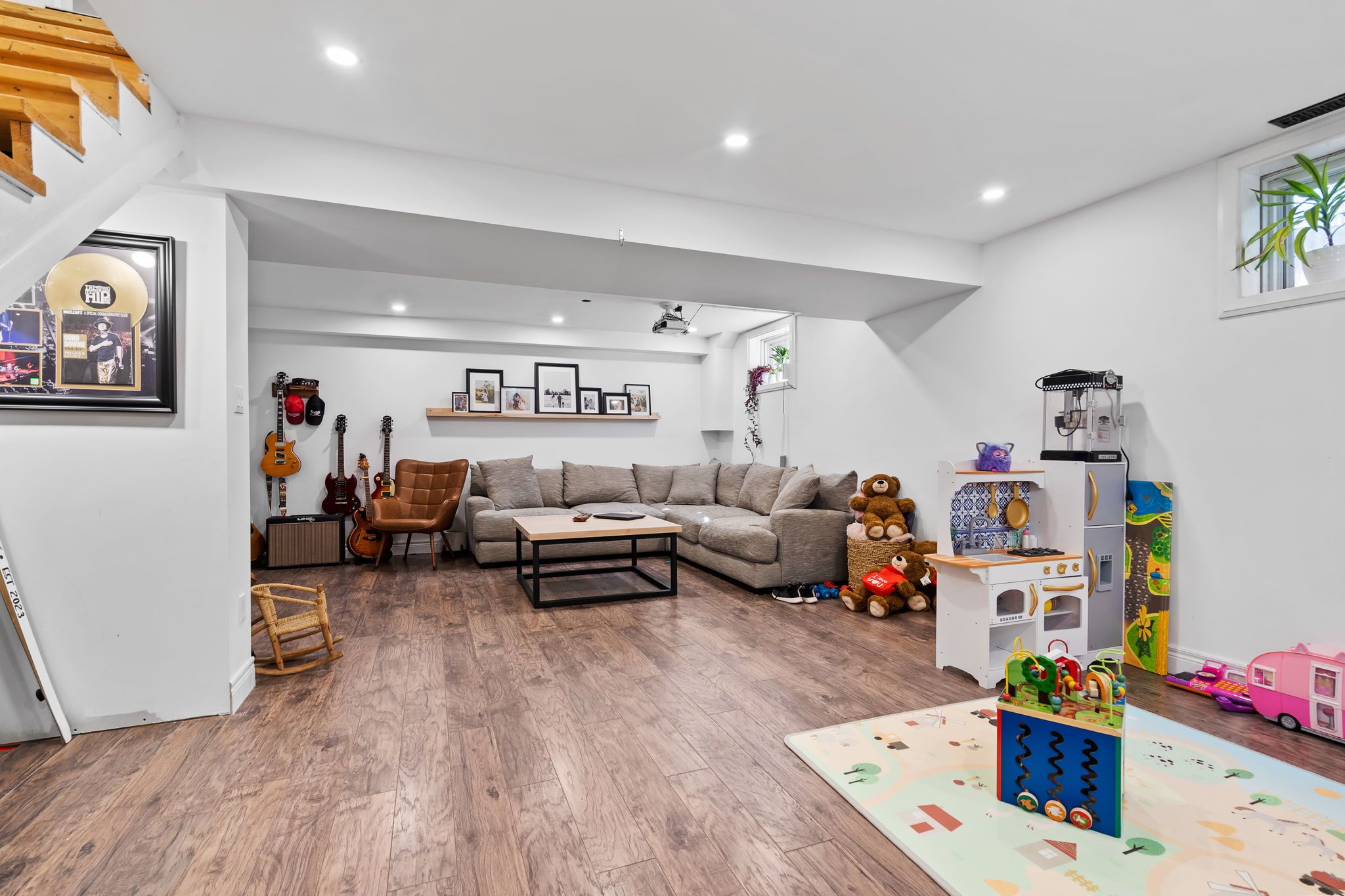 • Spacious finished lower level perfect for kids or family movie nights.