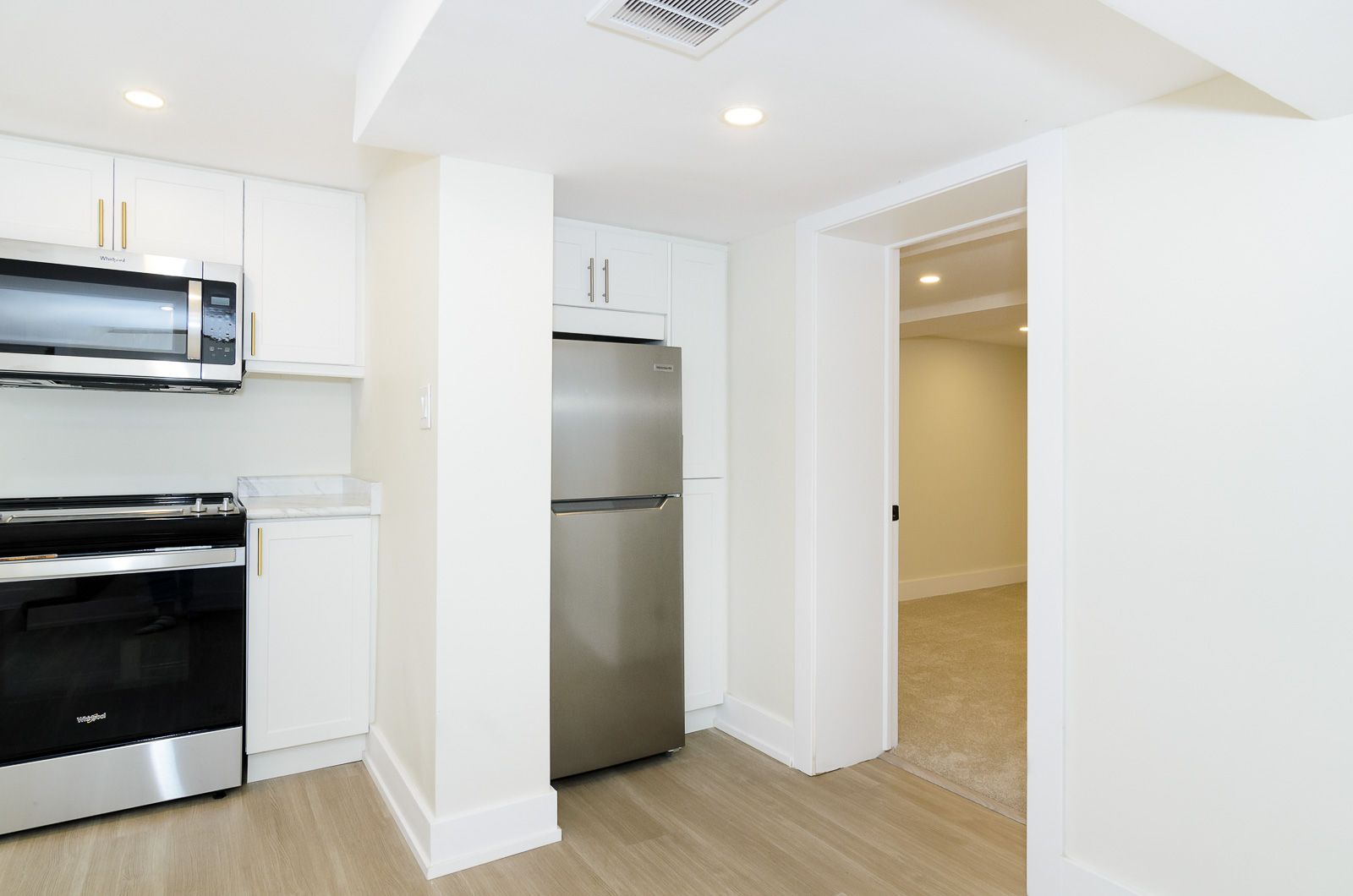 • Open kitchen featuring quartz countertops and stainless steel appliances.