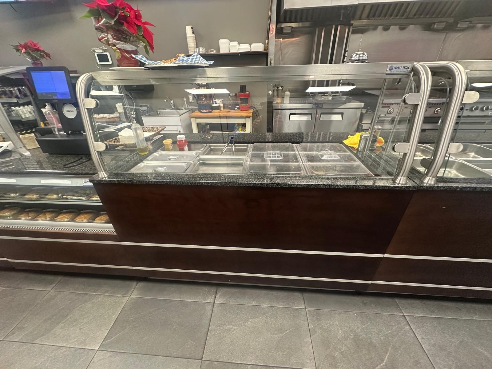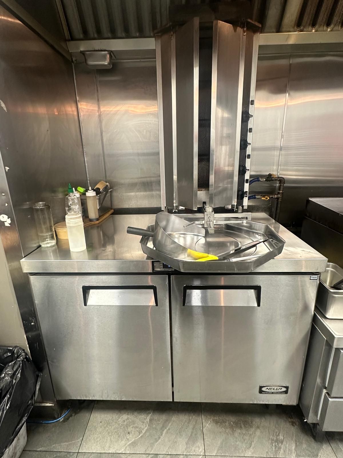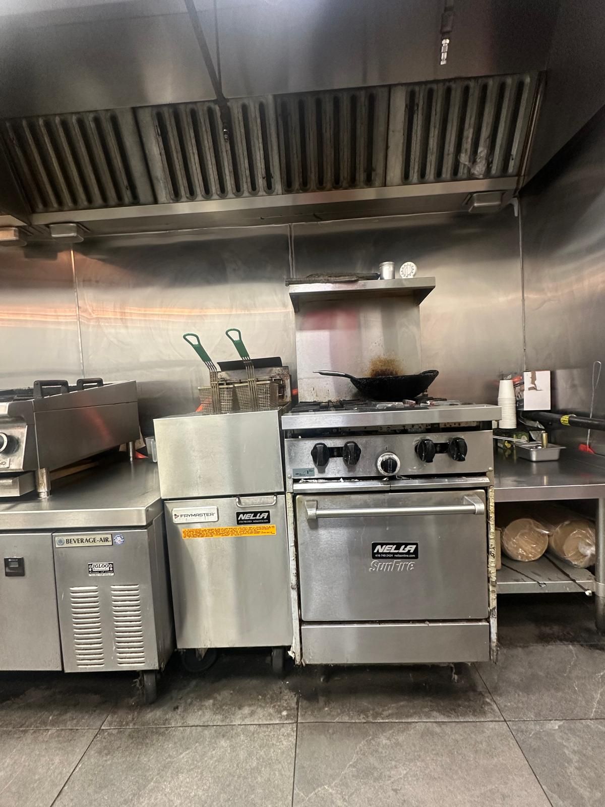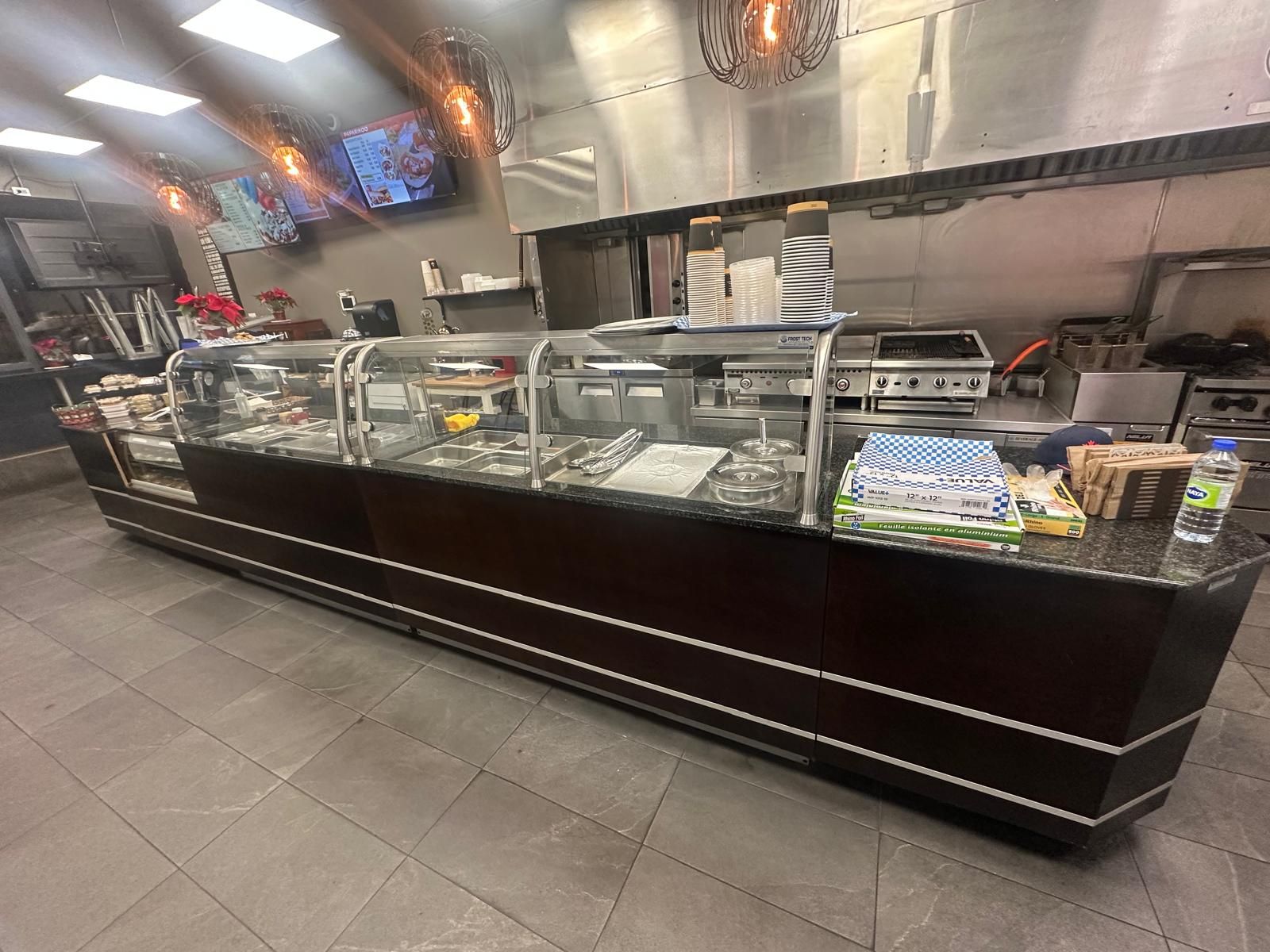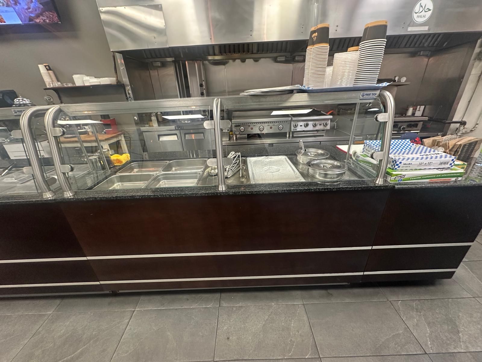 A prime turnkey restaurant opportunity in a fast-growing corridor. This beautifully set-up restaurant was fully renovated approximately four years ago and has been maintained in excellent condition ever since. The space offers a modern, efficient layout featuring a rare 16-foot commercial hood, shawarma grills, and many more well-kept kitchen components, all in immaculate clean condition, along with a large walk-in fridge and generous prep and storage areas. This provides a turnkey-ready setup that allows a new owner to begin operating immediately. Surround yourself with an established, vibrant food strip featuring burrito boyz, k&b sushi, scotty bon's caribbean grill, and north of brooklyn pizzeria, in a rapidly growing corridor supported by strong surrounding businesses, new high-rise residential developments, and a major longo's opening directly across the street. This combination drives consistent foot traffic and offers exceptional exposure for fast-food and quick-service restaurant concepts, as well as takeout and delivery operations through uber eats and such. The new owners have the flexibility to introduce an entirely new menu and brand, or to continue the existing concept with complete a-to-z training for a seamless takeover. The infrastructure and equipment support a wide range of culinary operations, making this an adaptable and practical choice for both established operators and those looking to expand.