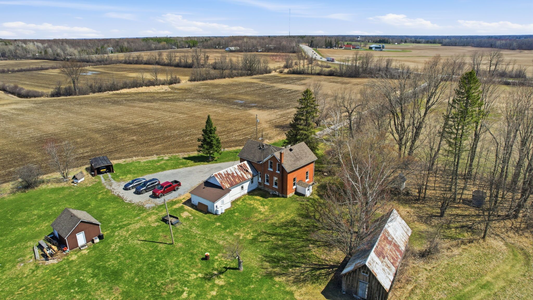 Spacious brick farmhouse set on 95 acres, with primary entrance on hwy 7 and secondary access off concession 5a, is located less than 5 mins from carleton place. This house features large windows throughout. Front verandah overlooking patio, and walk-out unfinished stone basement/utility room with forced propane furnace (2017), owned water heater (2020)and sump pump (2017). Large country kitchen includes an island with seating, cupboards, and new stove top (2025), lots of cabinets with a wall oven (2025) and pantry cabinets. Attached to the kitchen is the former summer kitchen, although rustic, has hydro and acts as a mudroom during summer and a great place to store wood during winter. Main floor has 10 ft high ceilings, living room with woodstove(2022 wett certified) and an adjacent formal dining room. On the upper level 3 bedrooms with walk-in closets, a nook at the top of the stairs currently used for office space, 4 piece bathroom, and a 4th room (no closet) could be used as a den, extra storage, office, playroom, or nursery. Property has a mix of soft/hard wood, forest, meadows, some wetlands, including 5 hay and 3 tillable pastures farmed by a local farmer not the current owners. 3 large outbuildings for atv or equipment storage, separate workshop with hydro, carport with hydro, 3 acres inground dog fence, and 3 separate wells on property if needed. Additional updates include septic tank (2019). 200 amp service. Zoned both residential and farmland, lowering property taxes but all municipal services included(garbage/recycling/mail/door-to-door school transportation to all local schools). High speed satellite avail. 25 mins to ottawa, 20 mins to perth, 4hrs to toronto and 2. 5hrs to montreal.