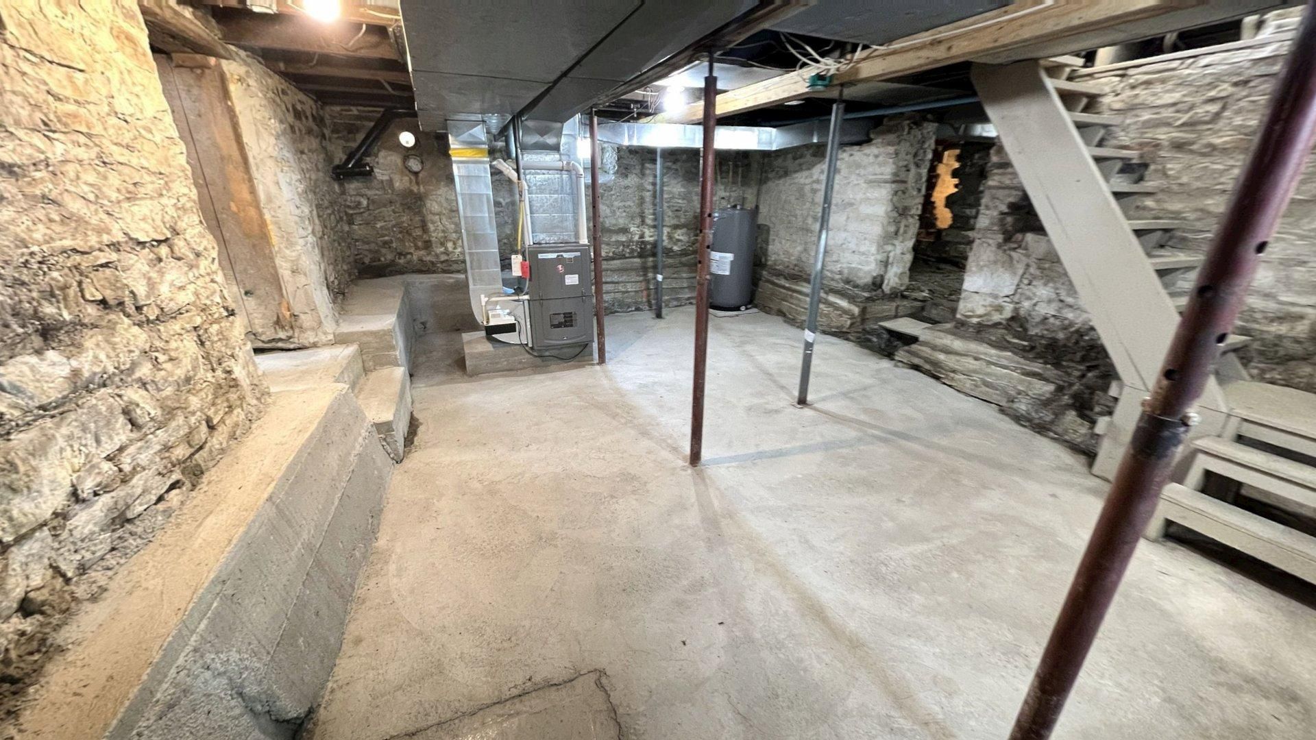 • Main floor features high ceilings, living room with woodstove, and a formal dining room.