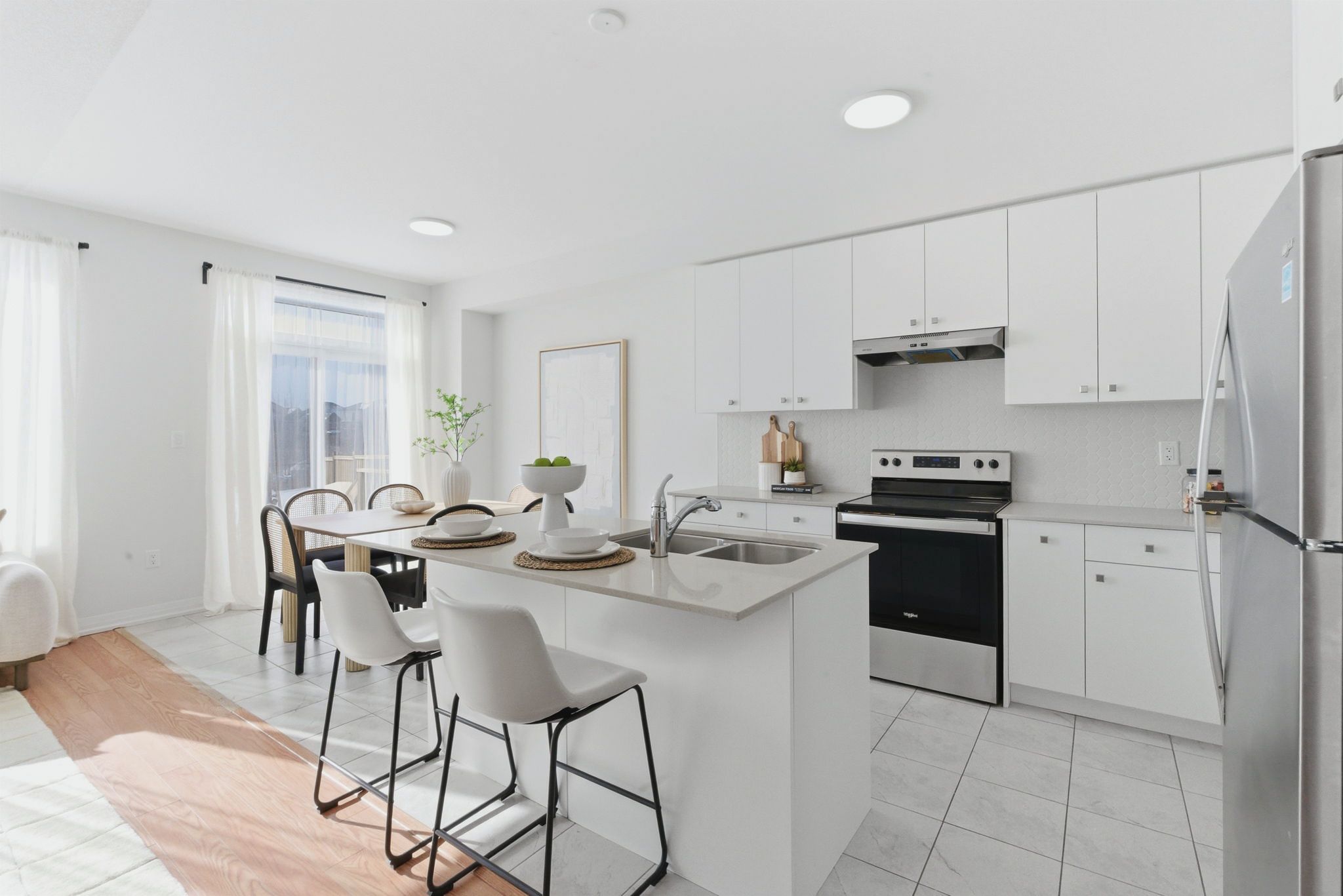 Welcome to seaton south! This 3-year new freehold *no silly potl/maintenance fees* townhome is the perfect place to call home! This beautifully designed & functional townhome offers a bright & airy open concept main floor with 9ft ceilings & large windows that bathe this home in natural light. *deep premium lot* and *no neighbours behind* for added privacy! The kitchen is fully equipped with s/s appliances, quartz counters, stylish hexagon patterned backsplash, deeper cabinets, and a centre island for additional storage & breakfast bar for casual dining. The dining room comfortably fits 6, perfect for hosting friends & family & walks out to your backyard. The master bedroom boasts a 5pc ensuite and large walk-in closet. The 2nd and 3rd bedroom are generously sized, both with oversized windows and b/i closets. Laundry is conveniently located on the 2/f. Upgraded 200amp panel, unspoilt basement awaiting your personal design & finishing touches. Direct access to your garage, newly painted, upgraded led light fixtures, move-in ready! This is one of the most attainable opportunities to own in a fast-growing pickering community, just minutes to parks, schools, go station, and hwy 401/407. Ideal for first-time buyers looking for space, style, long-term value at an affordable price & tarion warranty for peace of mind!