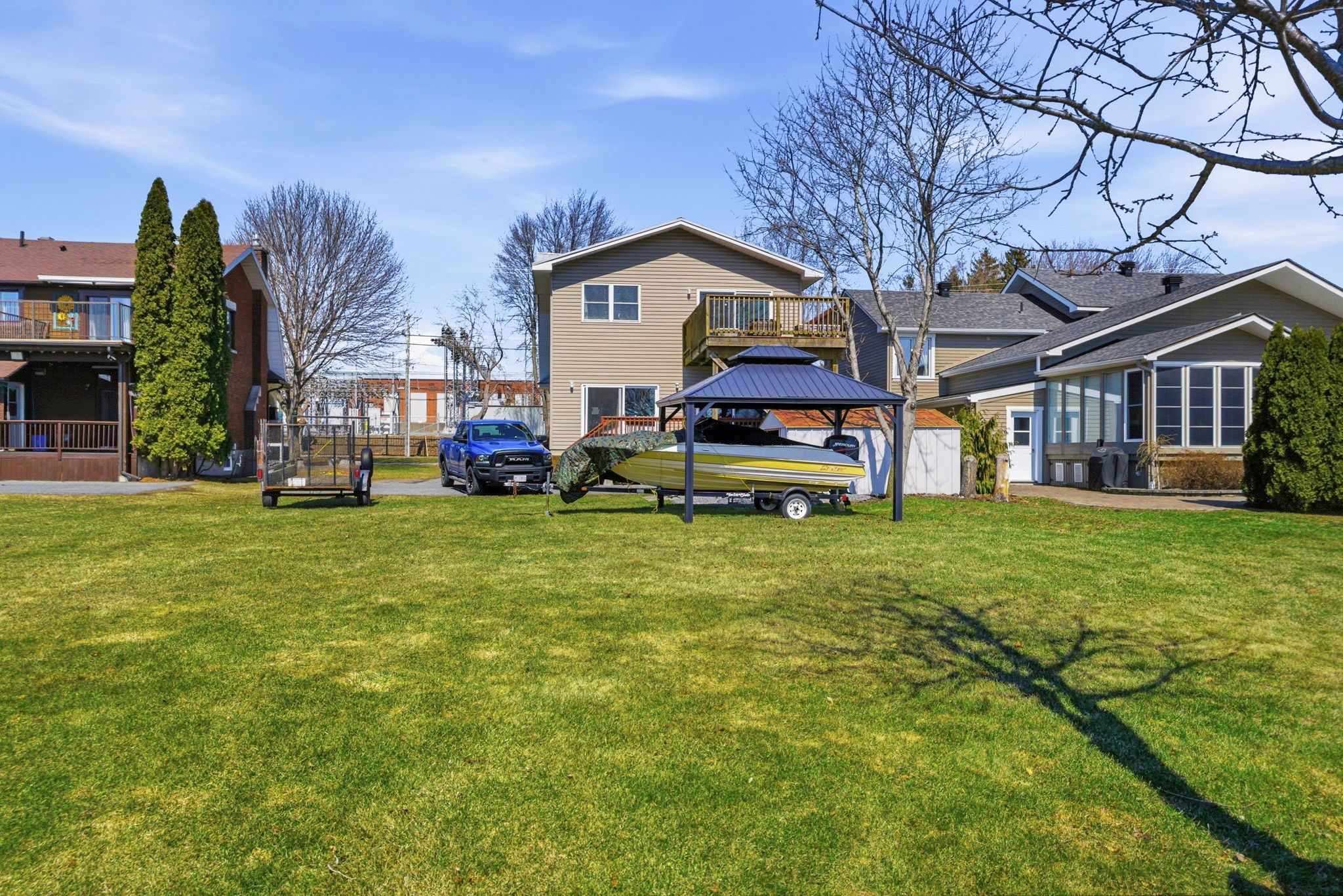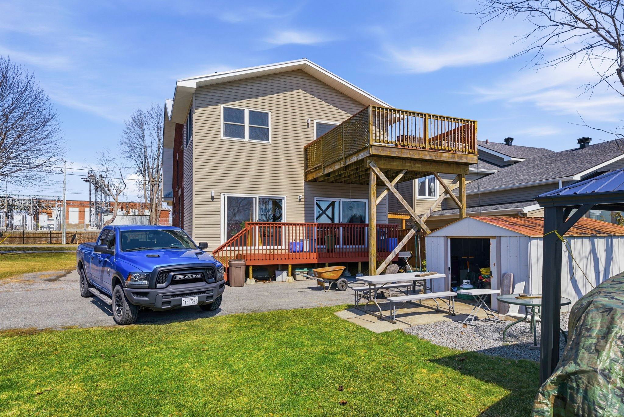Step into a place where time slows down and the river tells the stories. This charming 2-storey waterfront home is rich in character and warmth, offering a nostalgic feel with all the comforts of everyday living. Nestled along the breathtaking st. Lawrence river, this property delivers the kind of lifestyle most people only dream about. Inside, you'll find a bright open-concept kitchen and dining area that flows effortlessly, perfect for hosting family dinners or quiet mornings with coffee and river views. The inviting living room is anchored by a cozy gas fireplace, creating the perfect setting to unwind after a day on the water. Upstairs features three comfortable bedrooms. The primary bedroom boasts a spacious private balcony with stunning views, along with space to add a future ensuite-an ideal opportunity to customize and add value. Outside, the magic continues. The recently installed interlocking stone front steps offer classy curb appeal. Relax in the backyard under the gazebo, or spend your days casting a line from your private dock. With direct access to the river, this truly is a fisherman's playground right in your backyard. A storage shed adds convenience, while municipal services ensure easy, reliable living. Set in a great location with prime water frontage, this property offers a rare blend of charm, lifestyle, and opportunity. Whether you're looking for a year-round home or the ultimate waterfront escape, this is where memories are made and sunsets steal the show. *some photos have been virtually staged. As per seller direction allow 48 hour irrevocable on offers